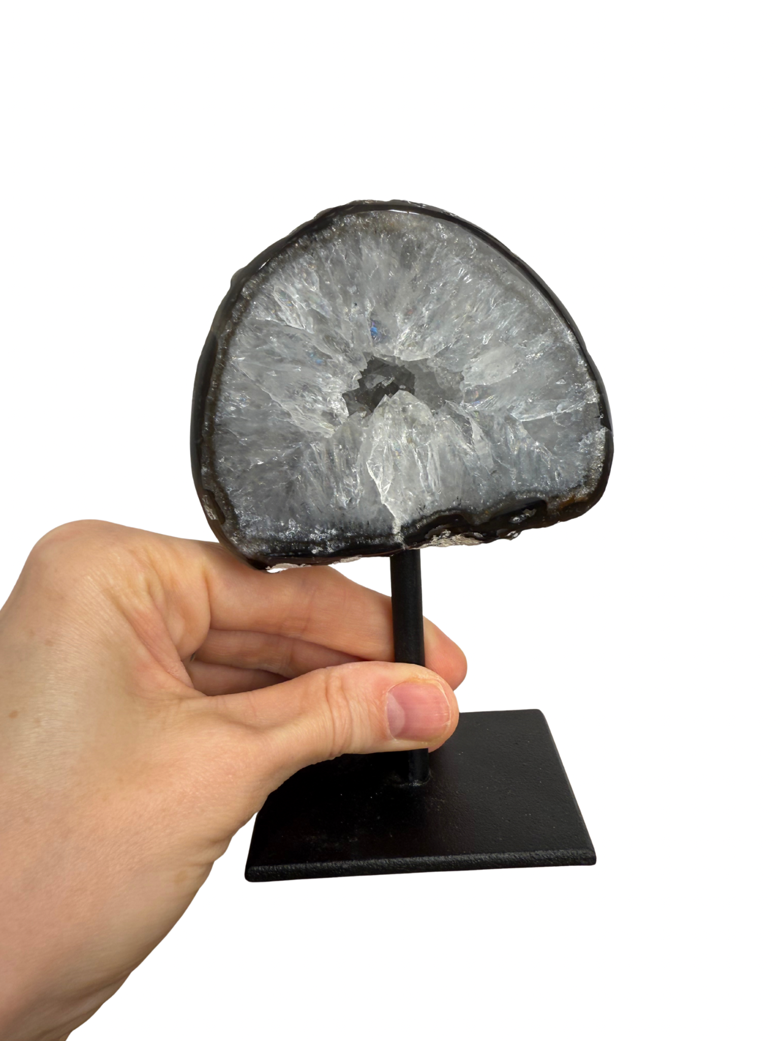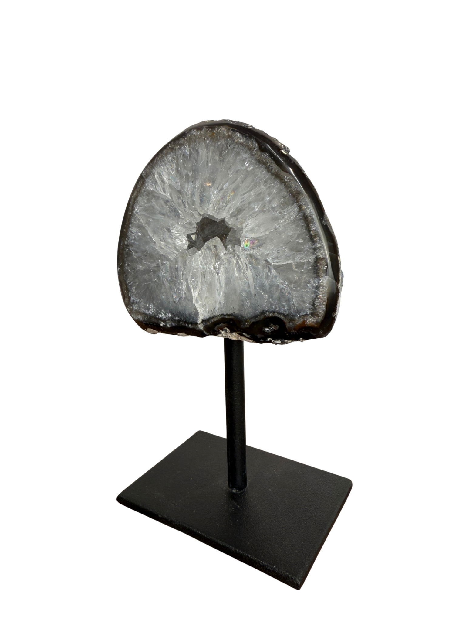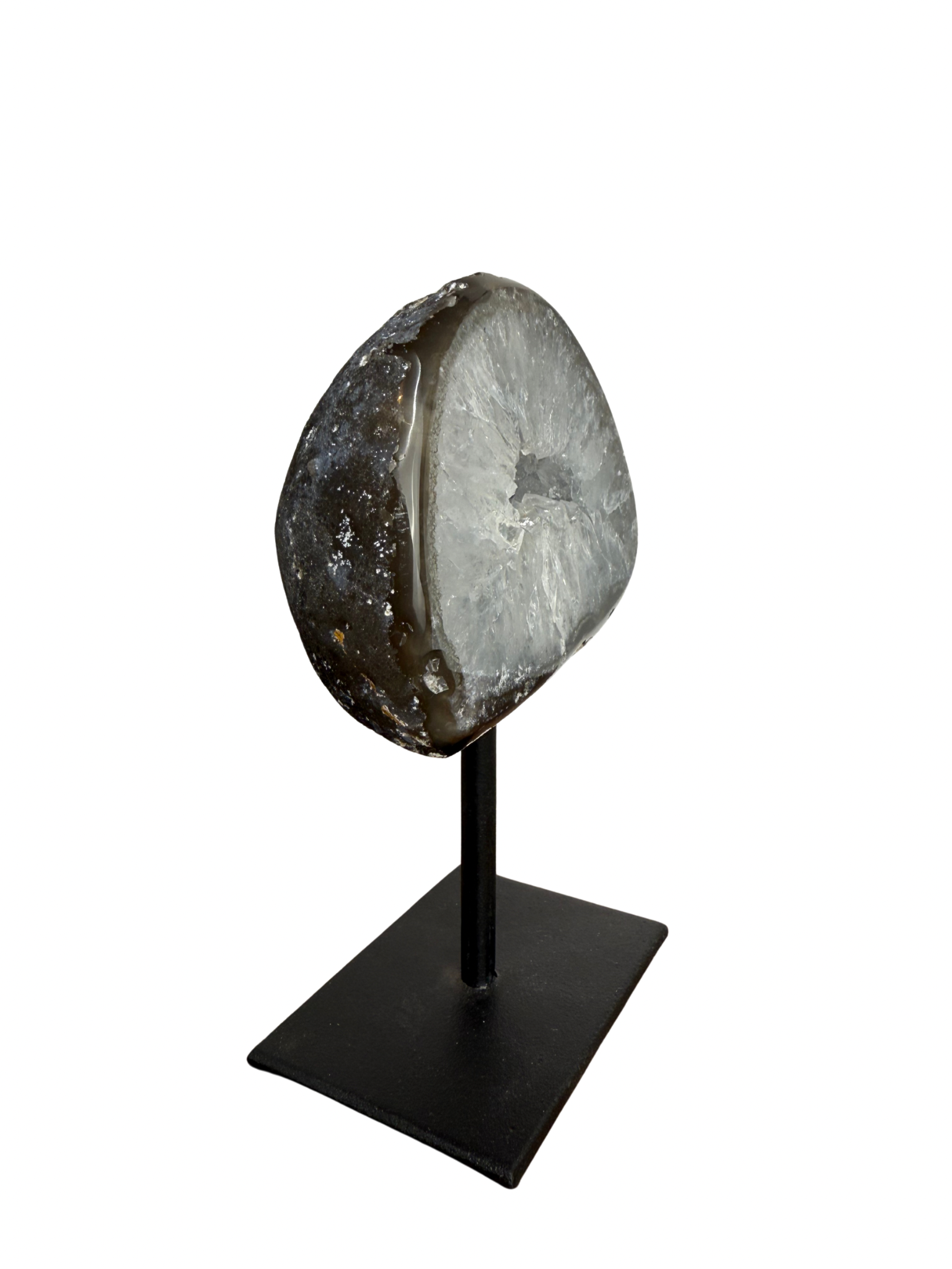 Super mooie Agaat op standaard, met druzy binnenkant.