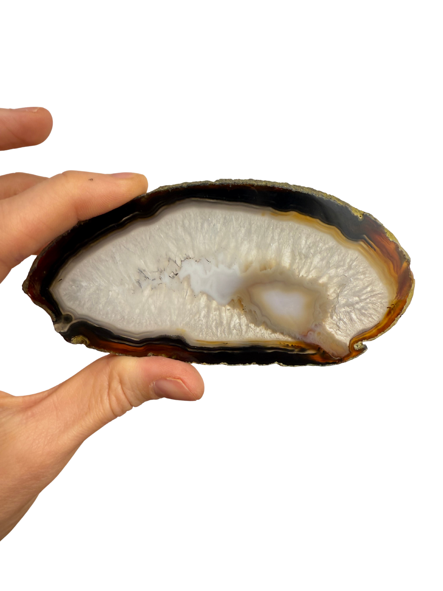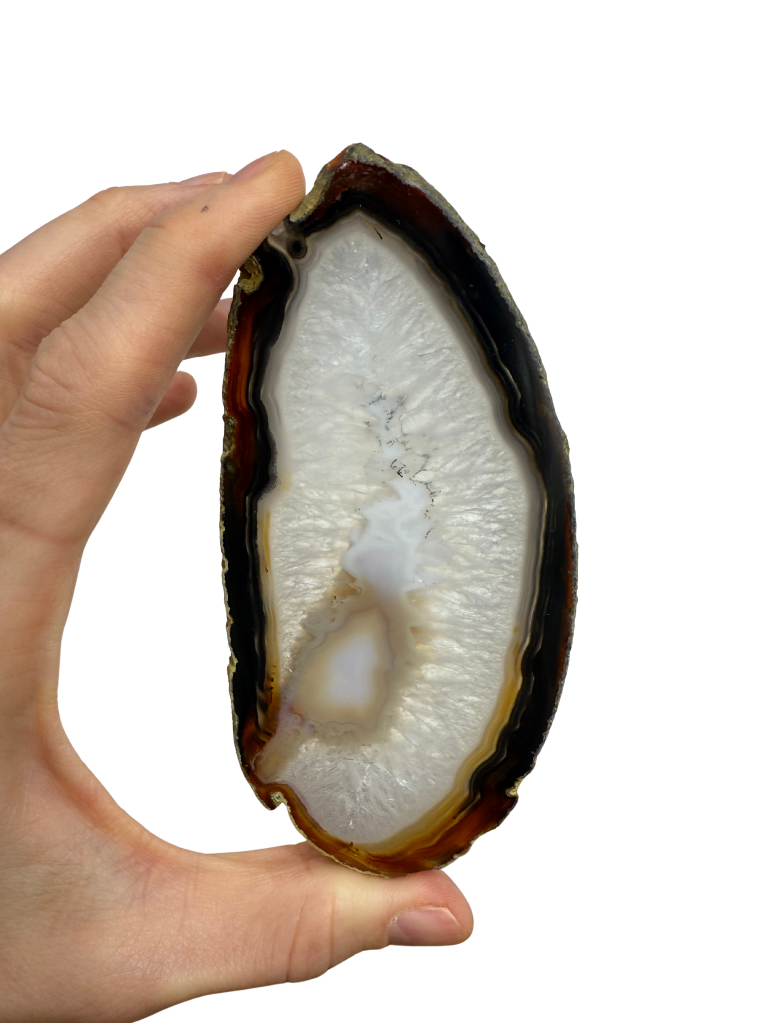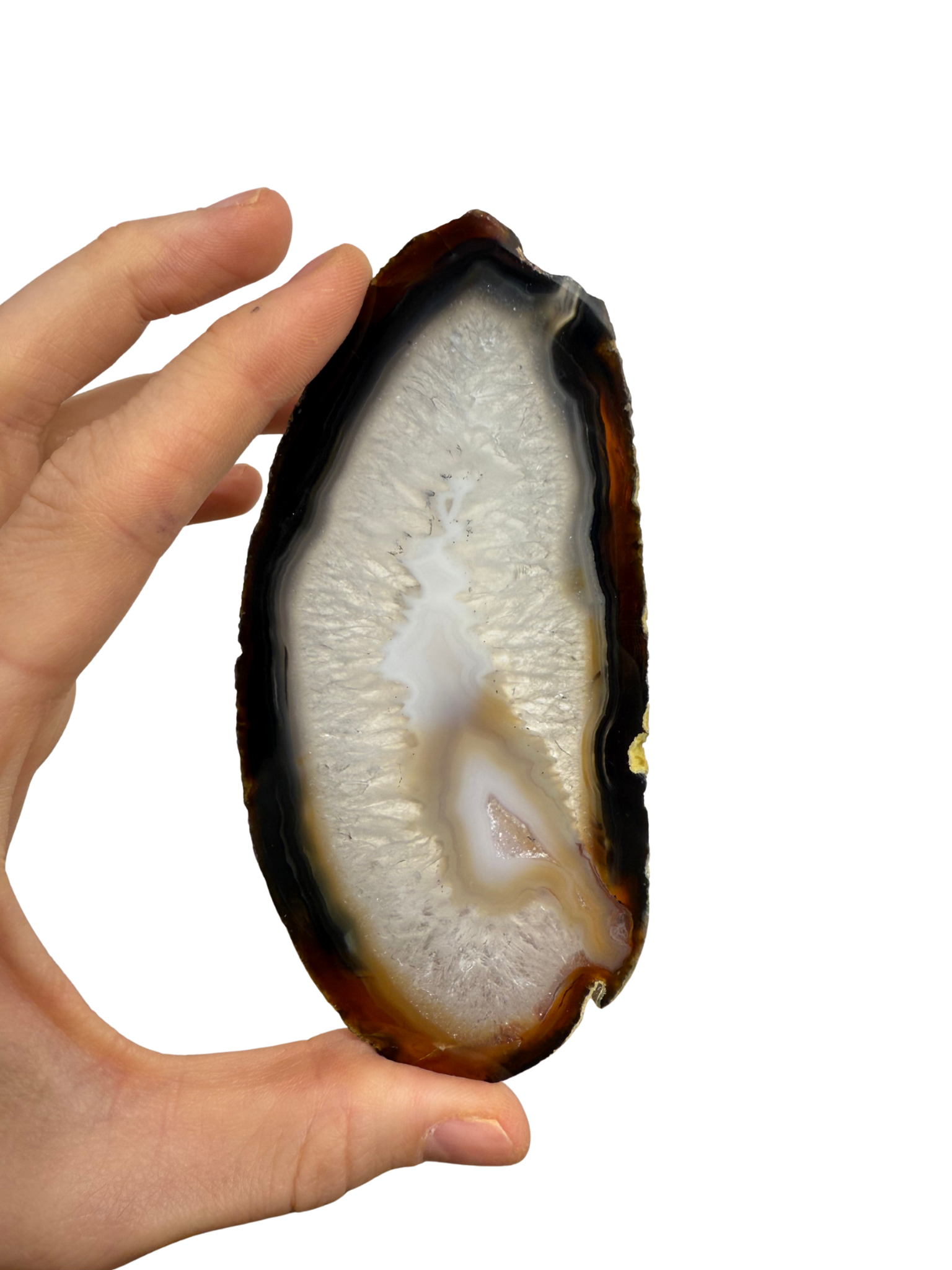 Super mooie Agaat schijf van natuurlijke kleuren. Elk stuk is uniek, met vloeiende patronen en zachte aardetinten die een gevoel van harmonie en rust uitstralen. Agaat is een steen van stabiliteit en balans, perfect om energie te gronden en een kalme sfeer in huis te creëren.