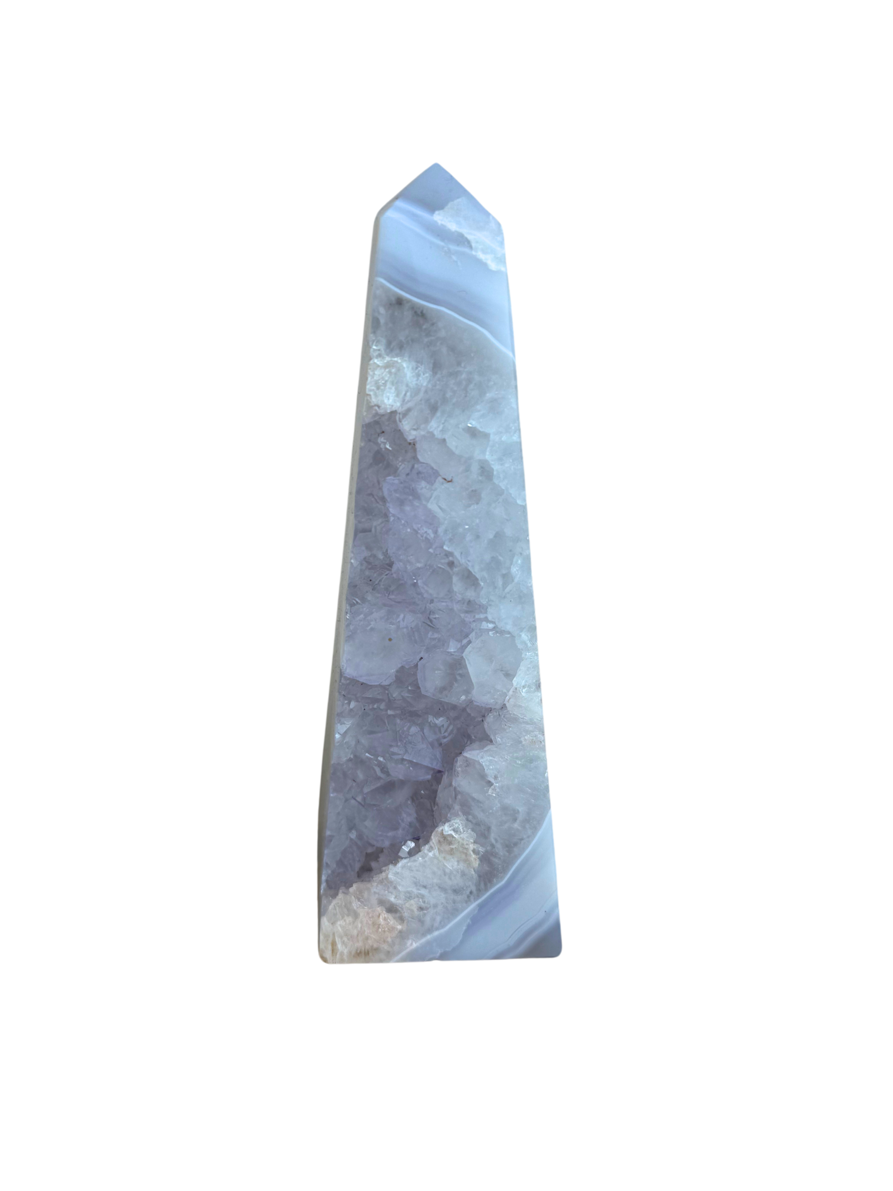 Deze Agaat toren met druzy Amethist aan de binnenkant is een echte beauty!
