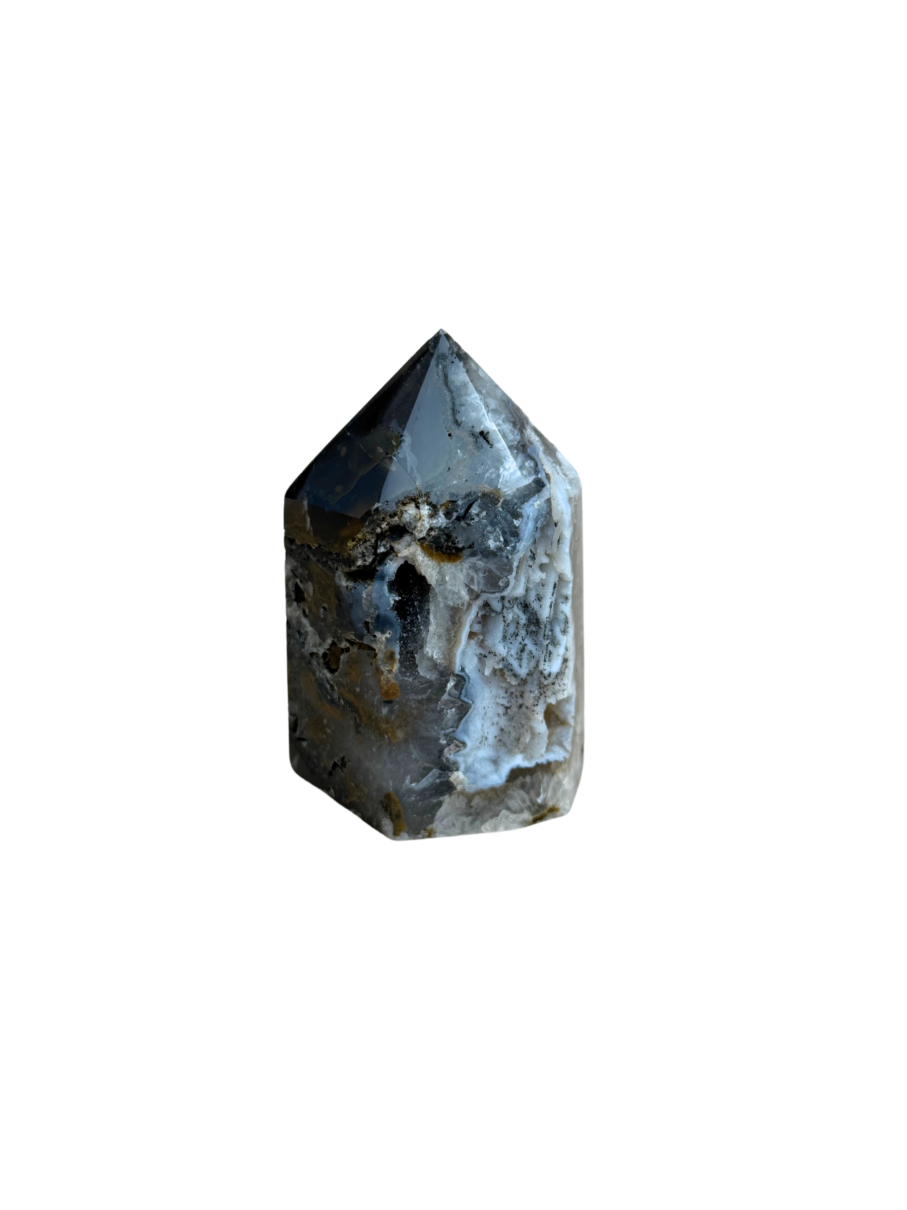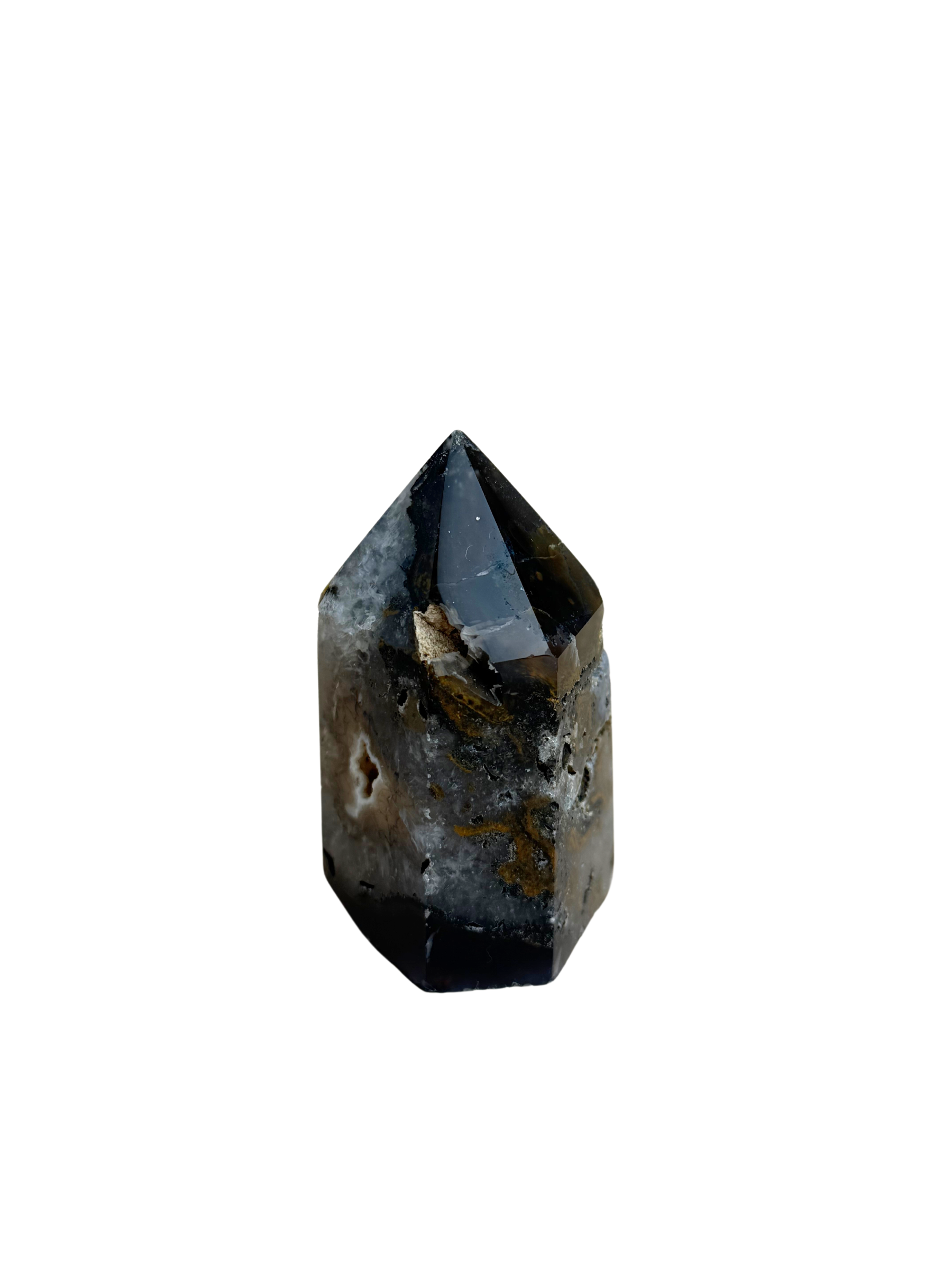 Agaat toren met druzy donkergrijs