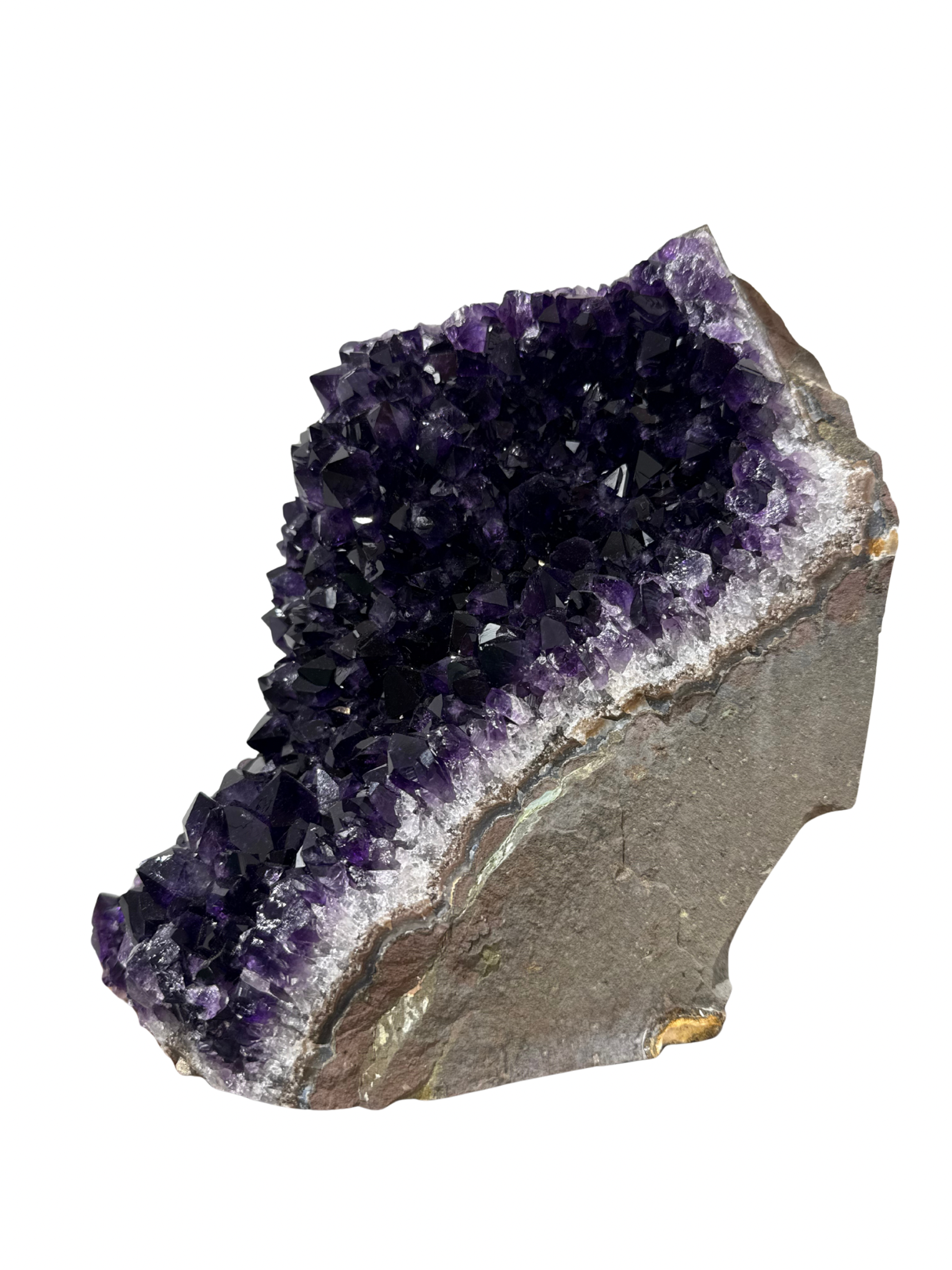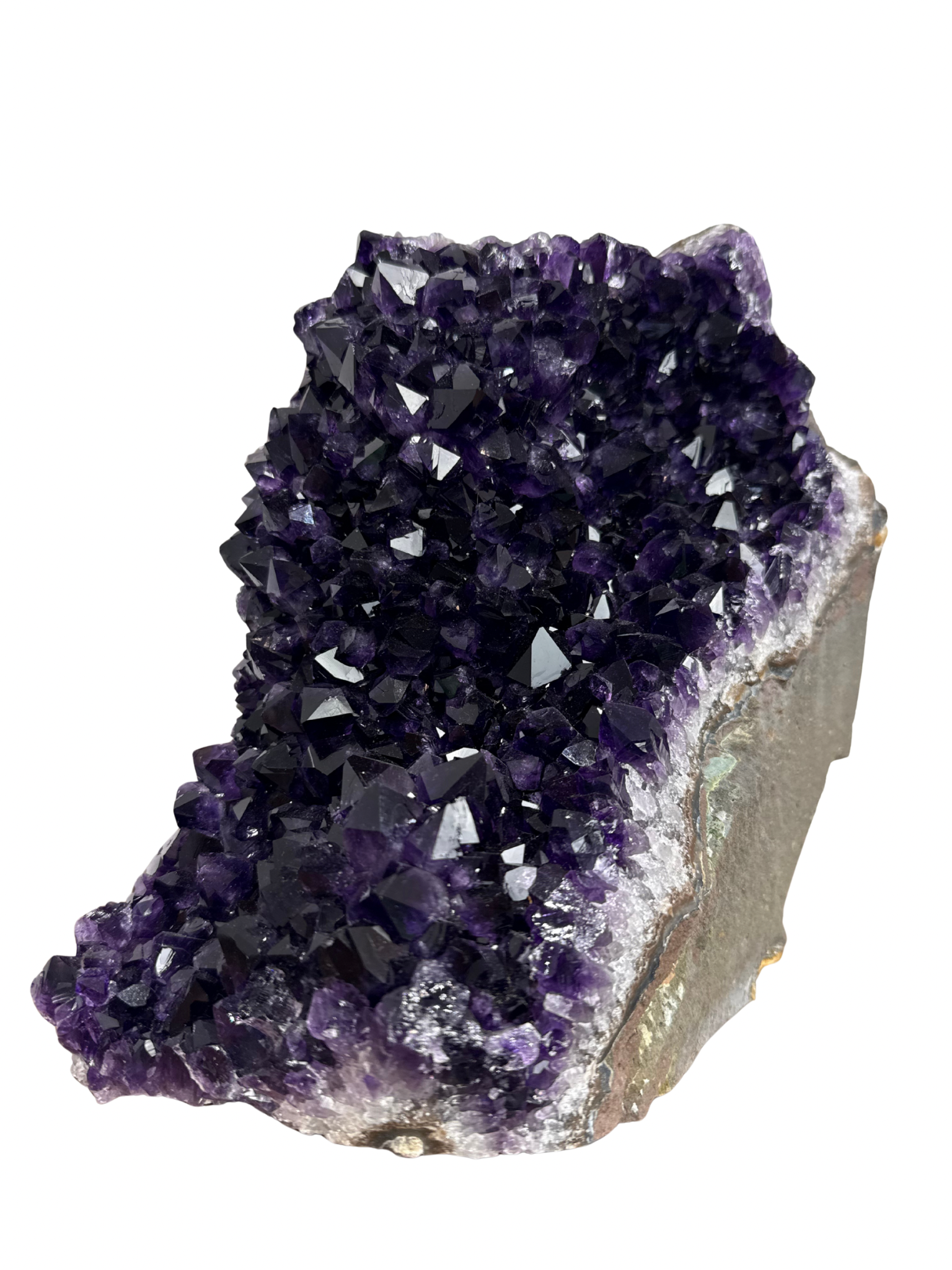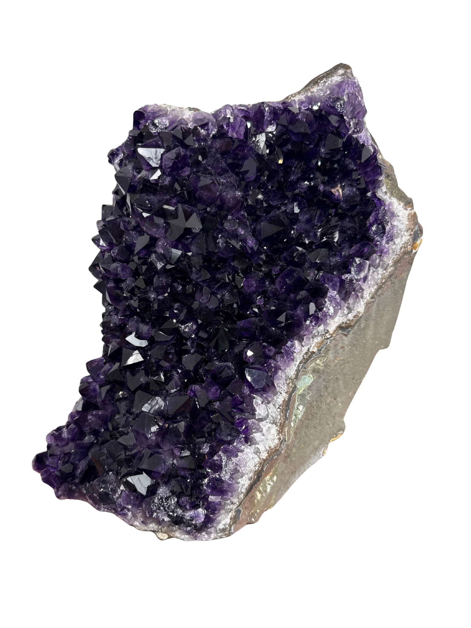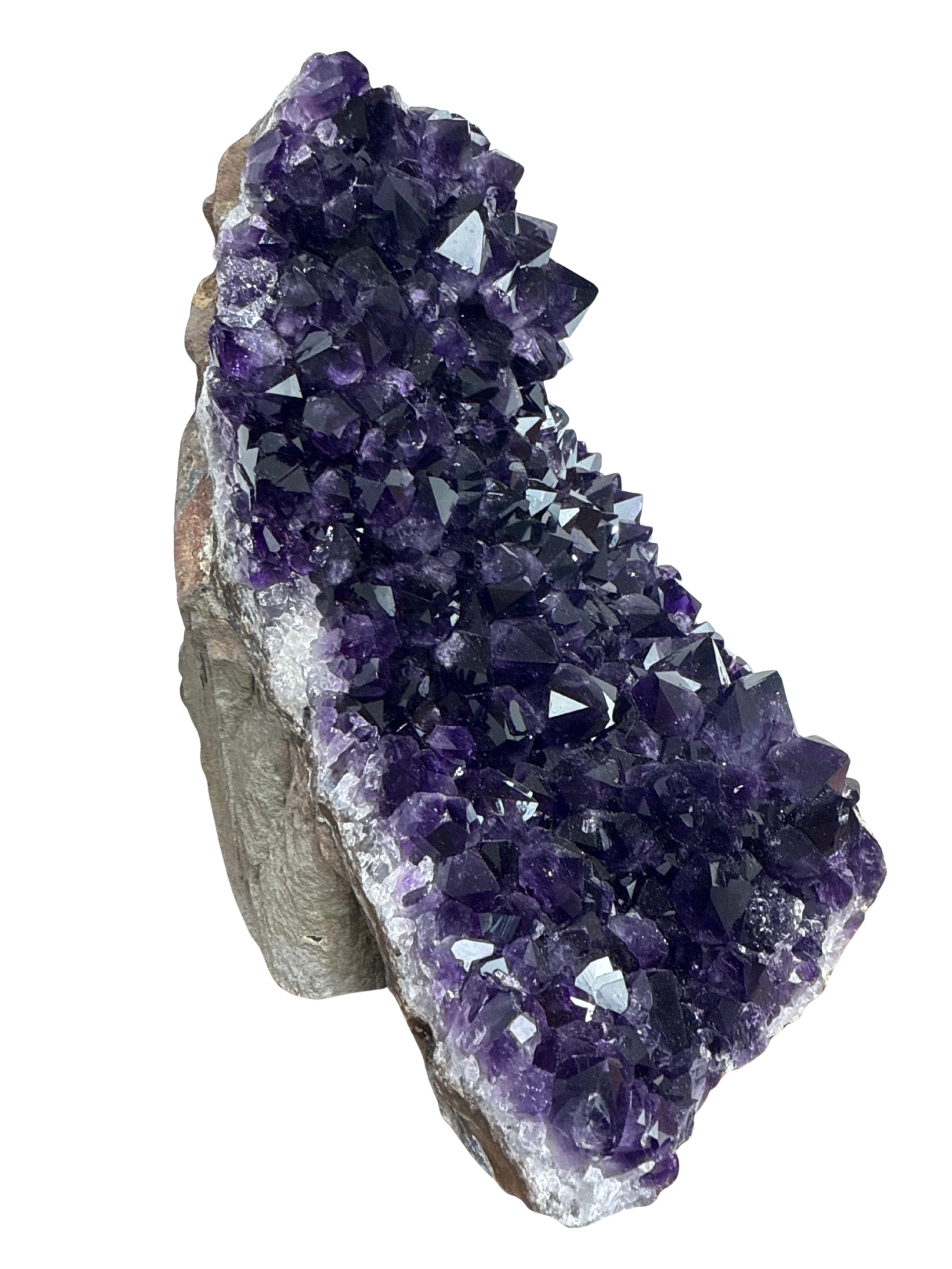 Deze prachtige A-kwaliteit Amethist op standvlak van 6,5 kg is donker paars met schitterende gave kristalpunten. Amethist staat bekend als een steen van rust, helderheid en spirituele bescherming.Â