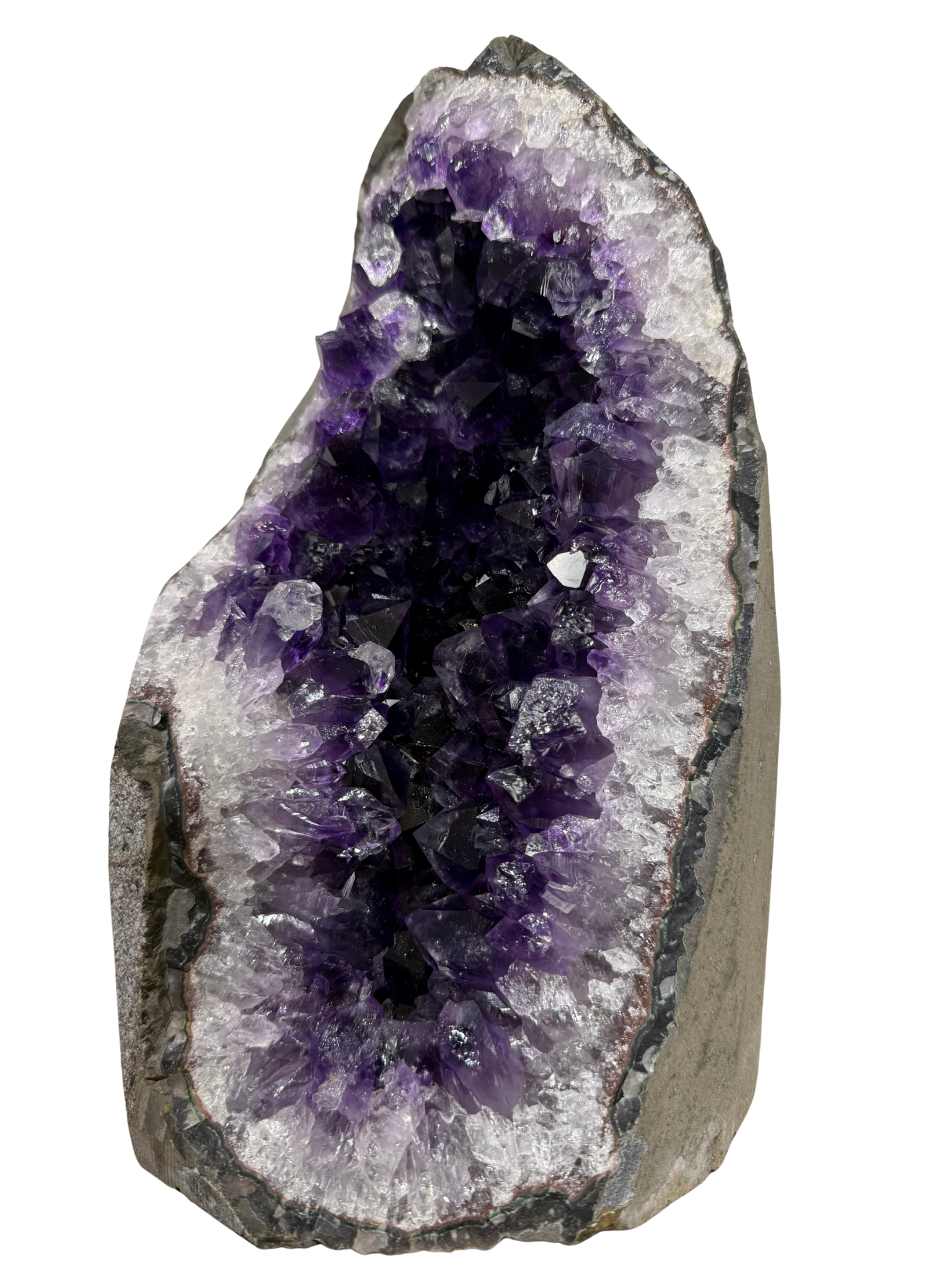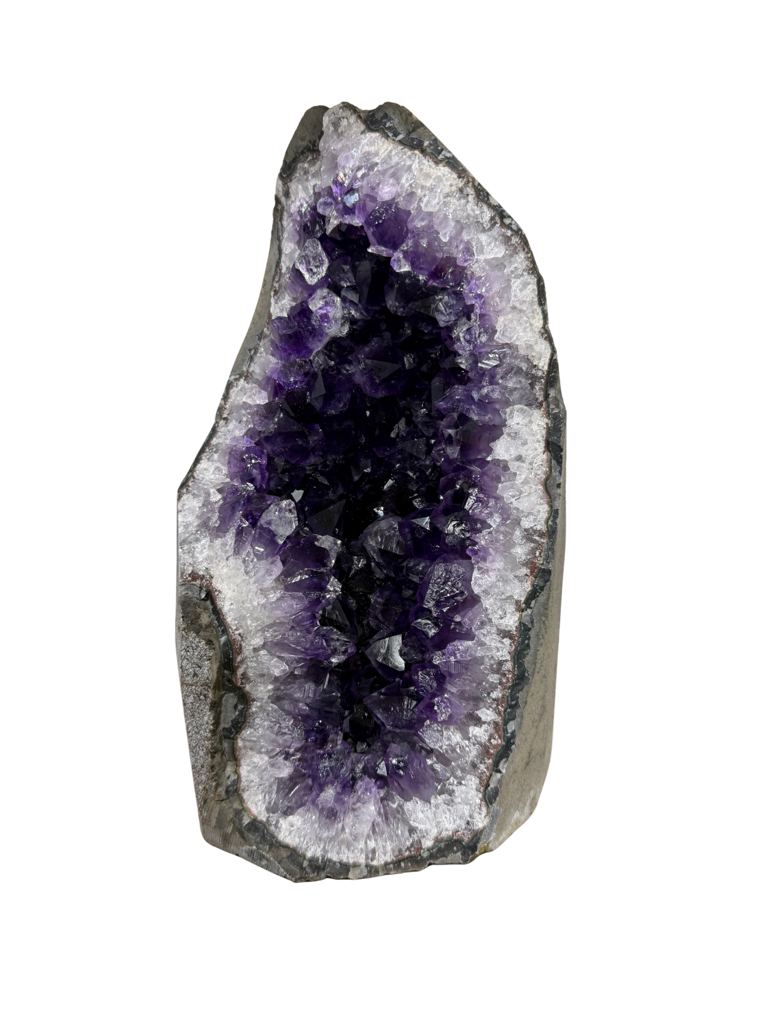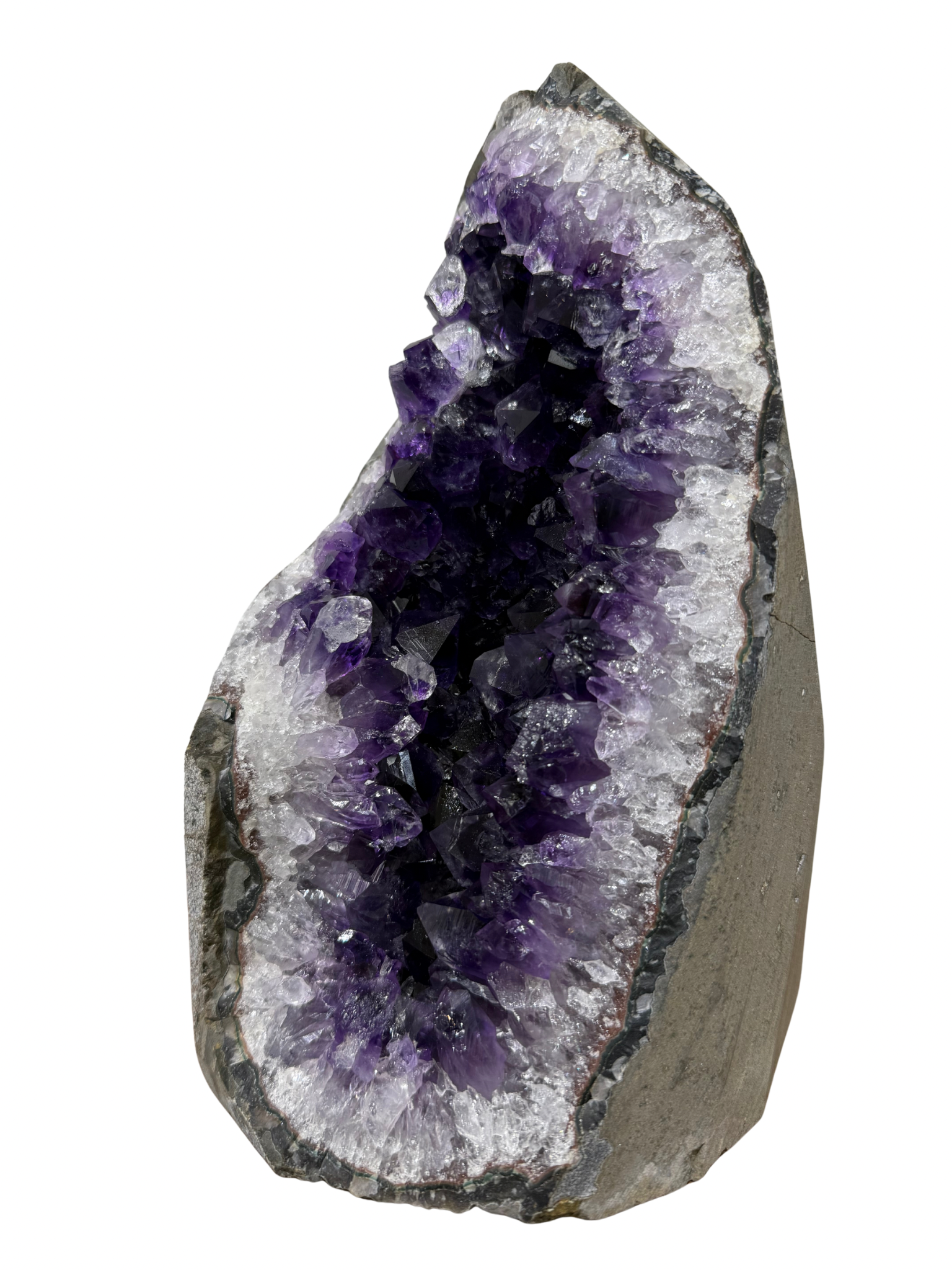 Deze prachtige A-kwaliteit Amethist op standvlak van 6 kg is donker paars met schitterende gave kristalpunten. Amethist staat bekend als een steen van rust, helderheid en spirituele bescherming.Â