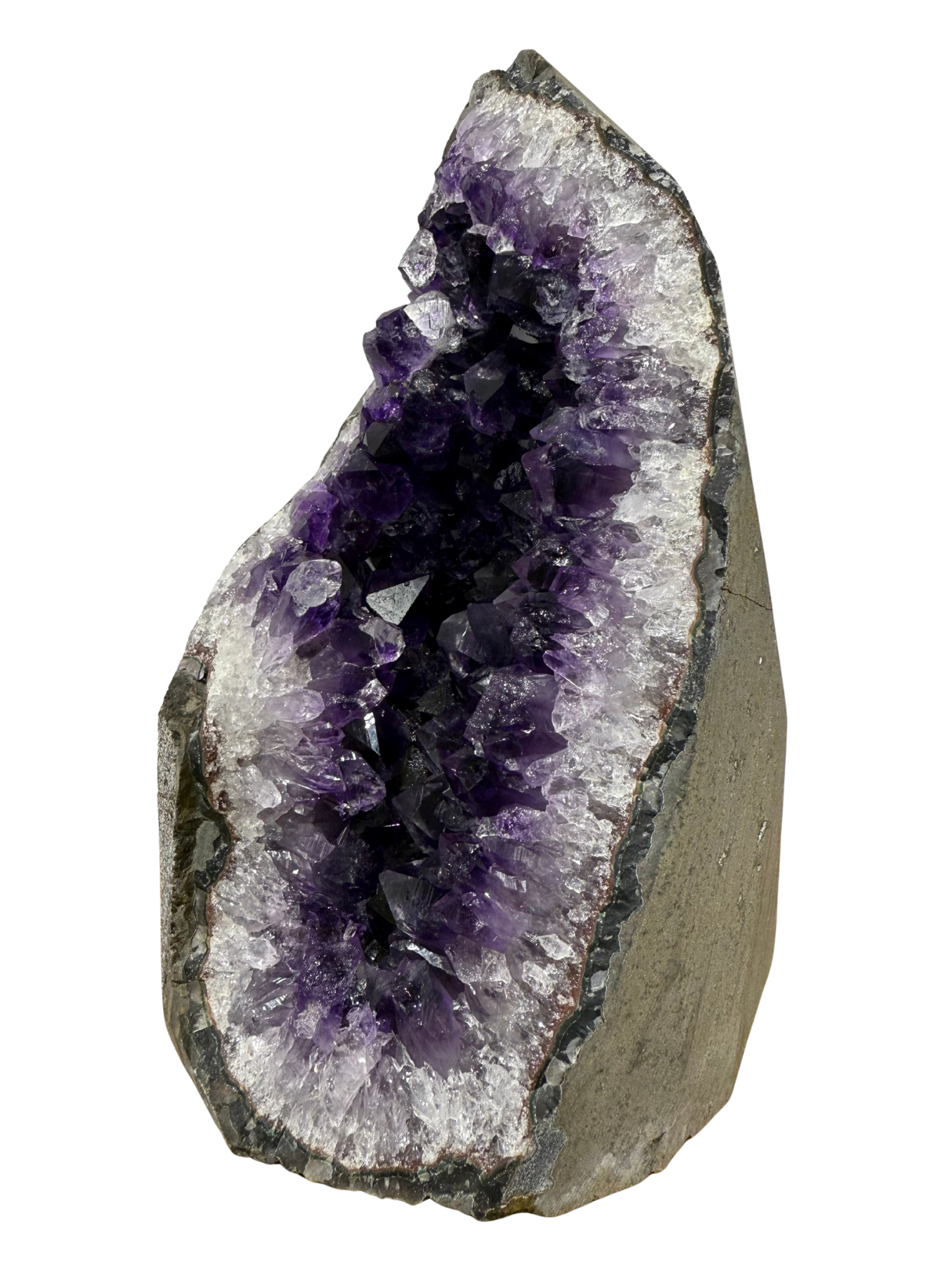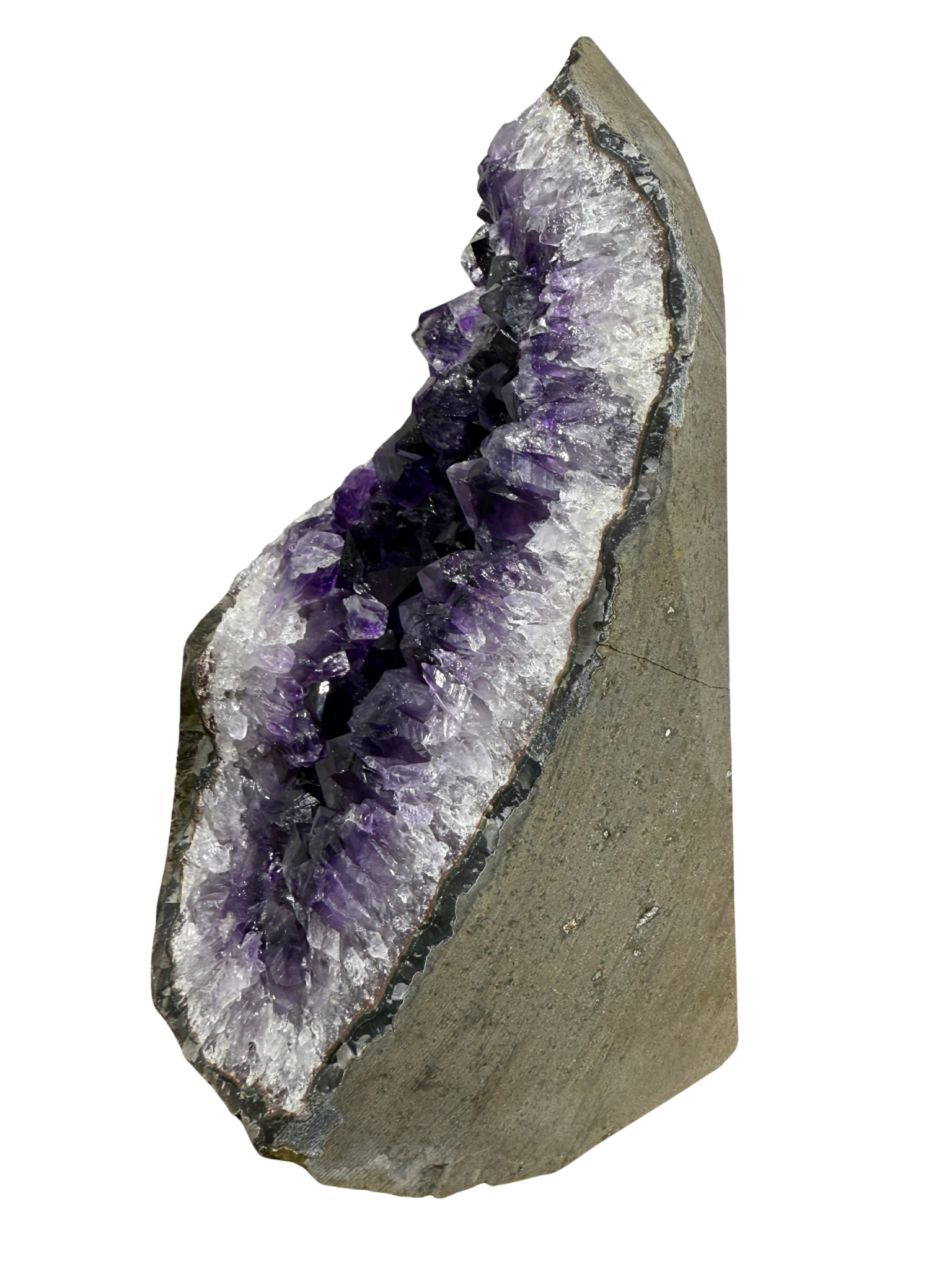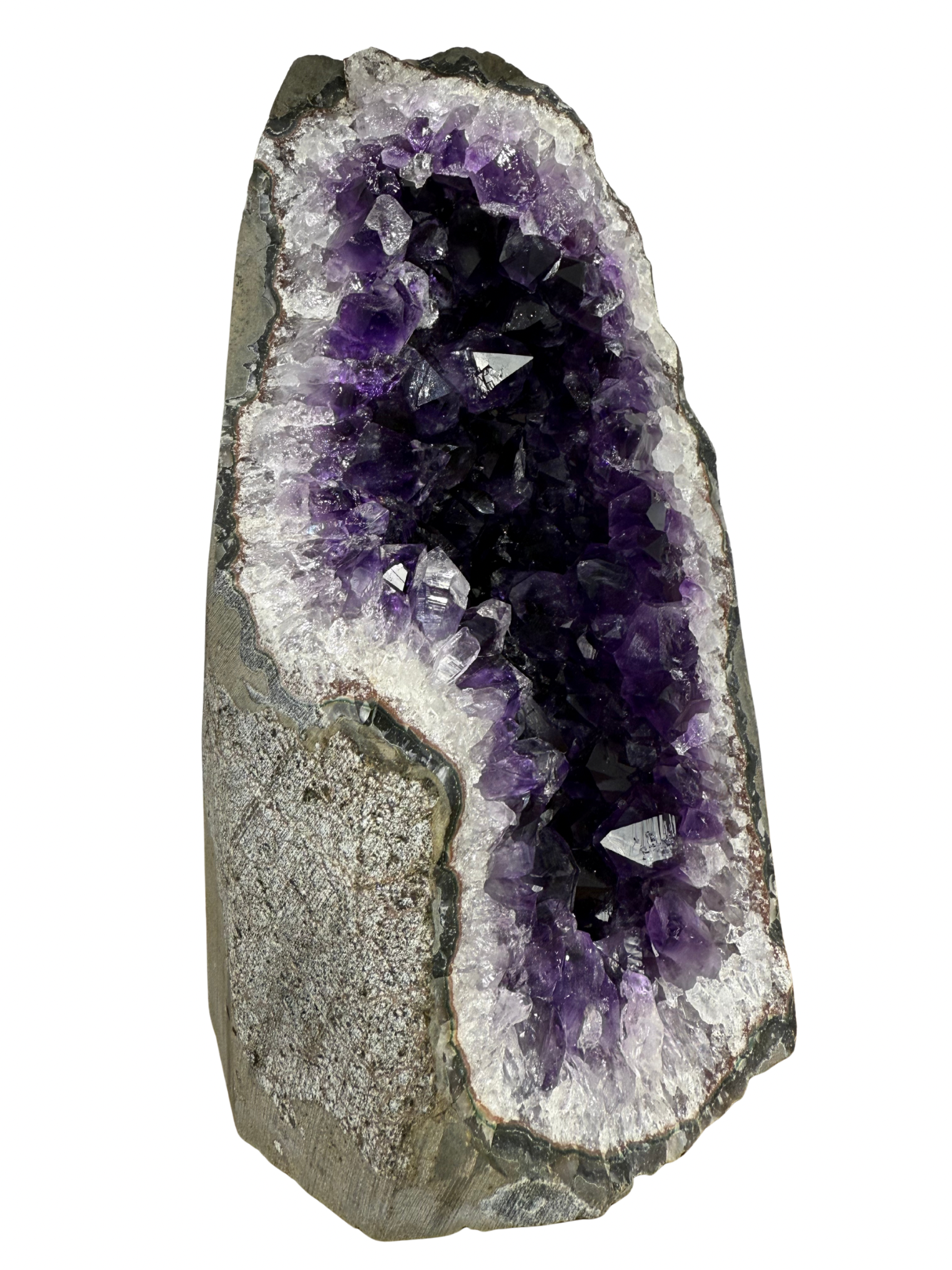 Deze prachtige A-kwaliteit Amethist op standvlak van 6 kg is donker paars met schitterende gave kristalpunten. Amethist staat bekend als een steen van rust, helderheid en spirituele bescherming.Â