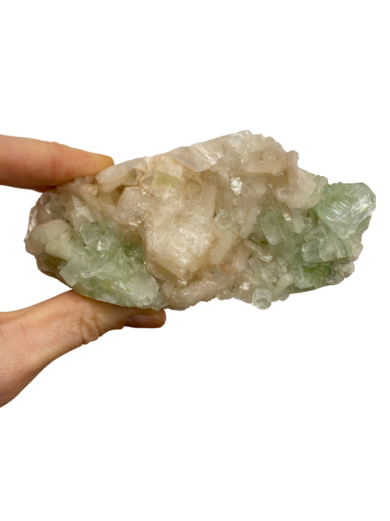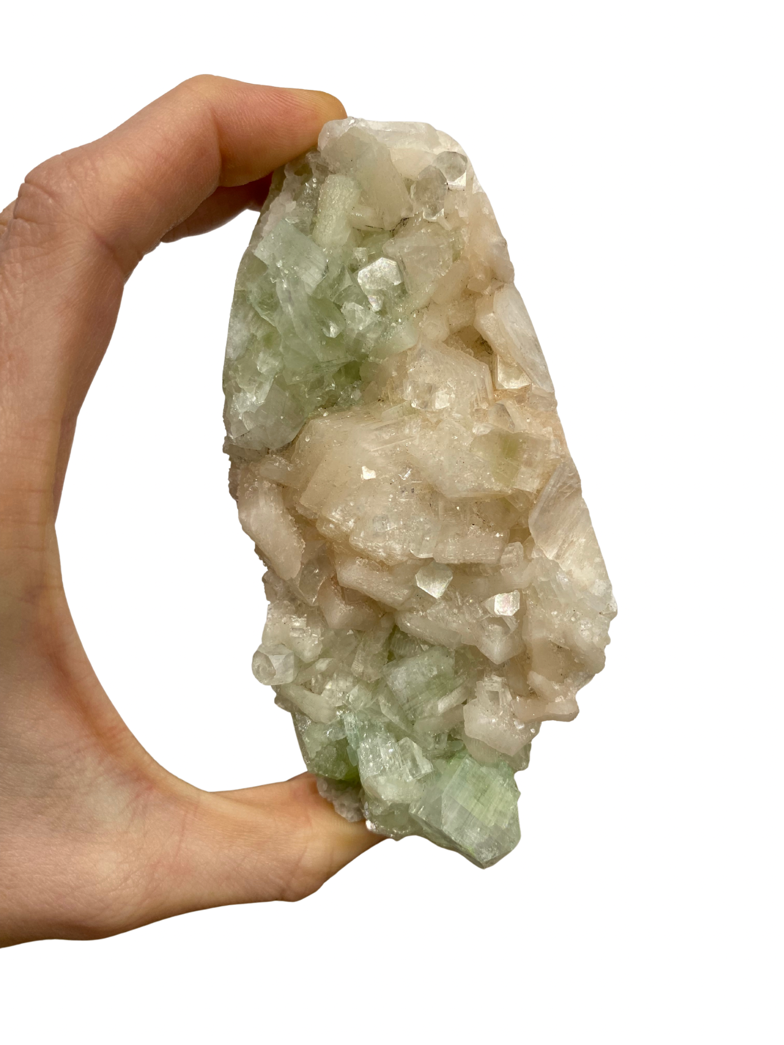 Dit mooie Apofyliet Cluster straalt een zuivere, lichtgevende energie uit die rust en helderheid brengt in zowel je ruimte als je innerlijke wereld.