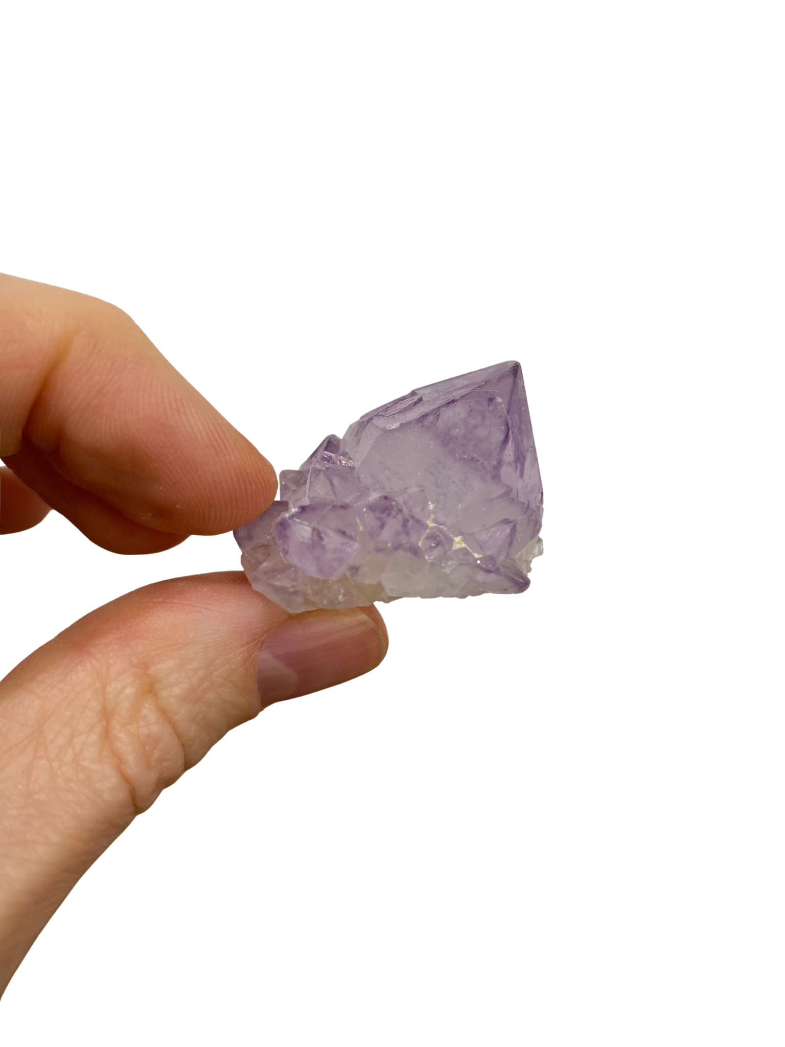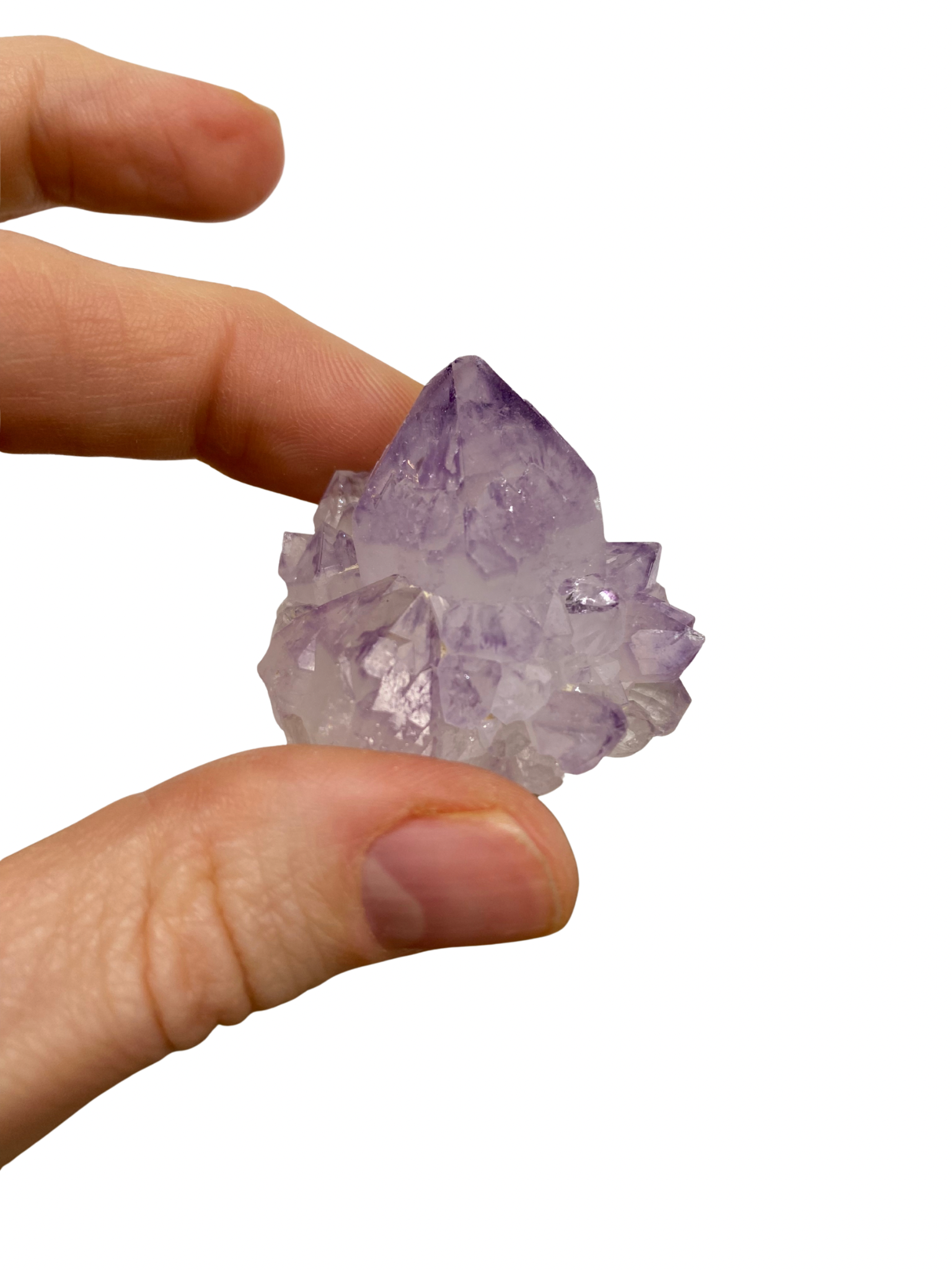 De Cactus Spirit Amethist is een krachtige en bijzondere kristalvorm die bekend staat om een beschermende en harmoniserende energie. Met een unieke kristalstructuur – waarbij meerdere kleine punten uit één basis groeien – verspreidt deze steen energie zacht maar krachtig in alle richtingen.