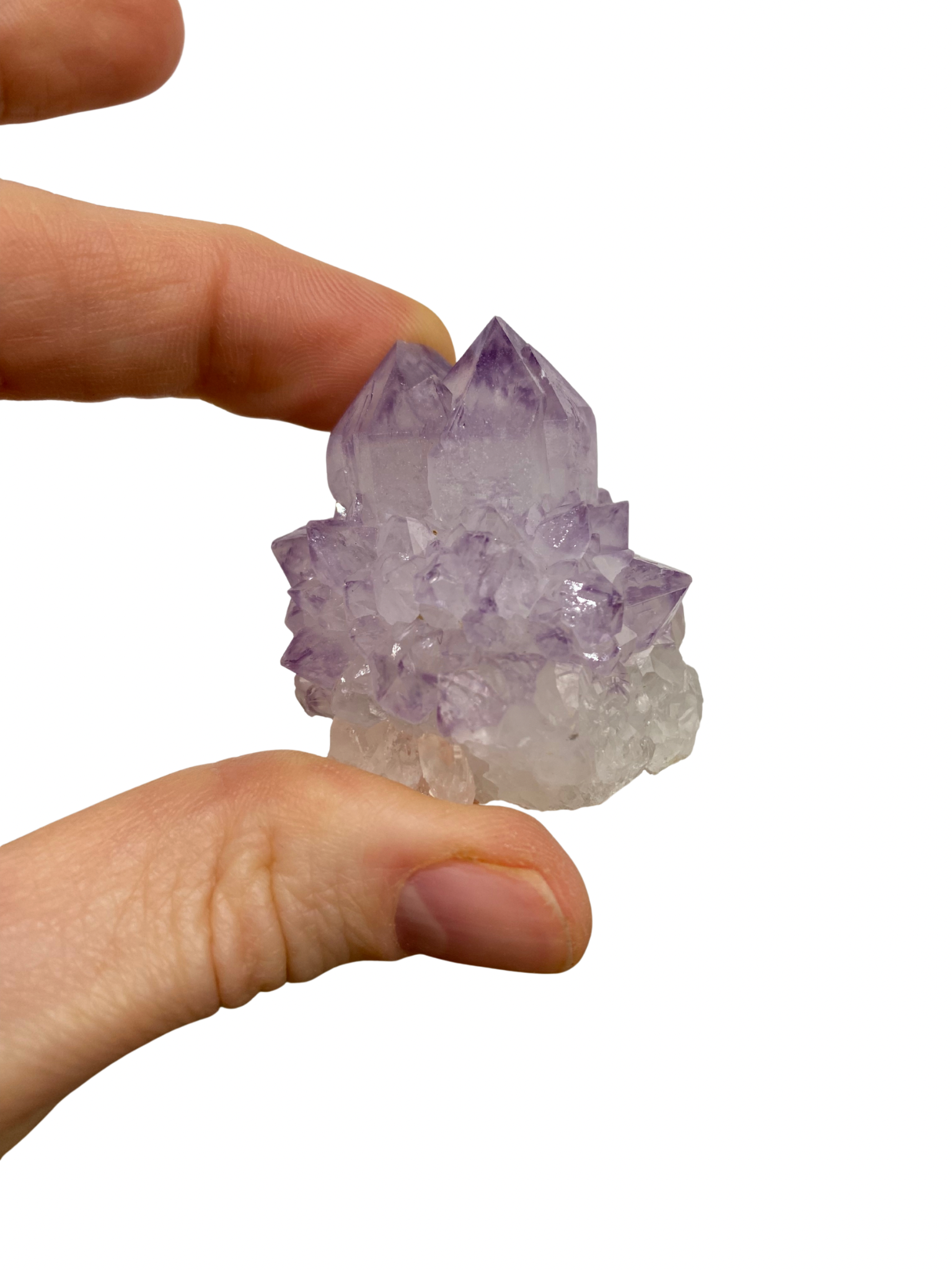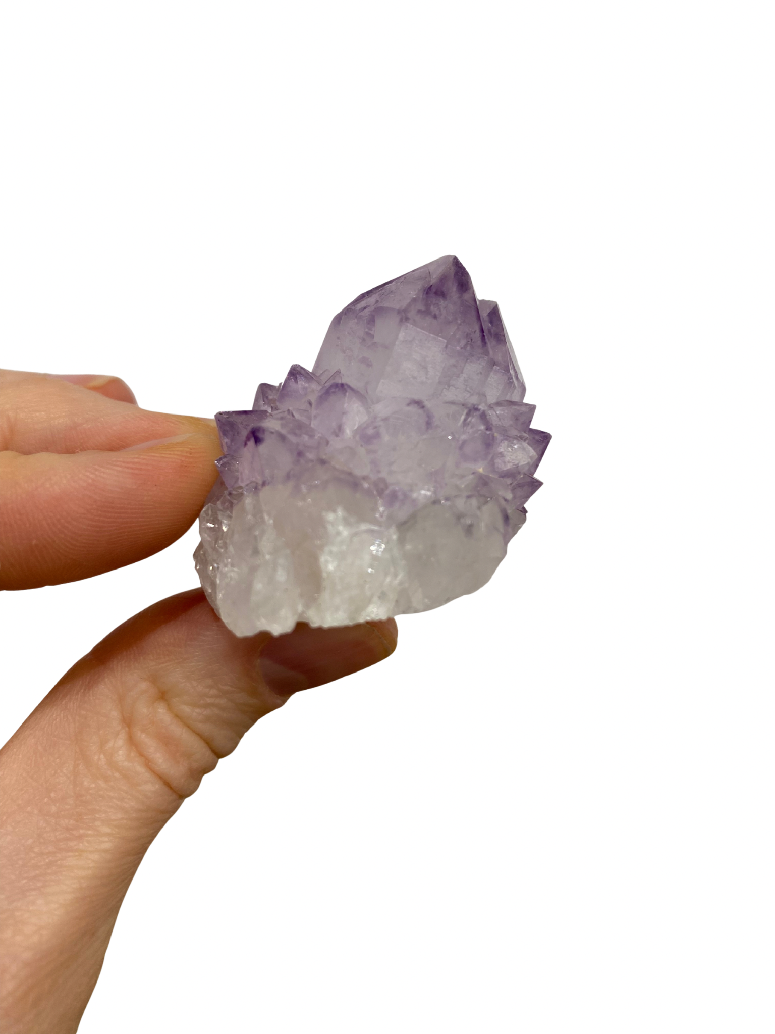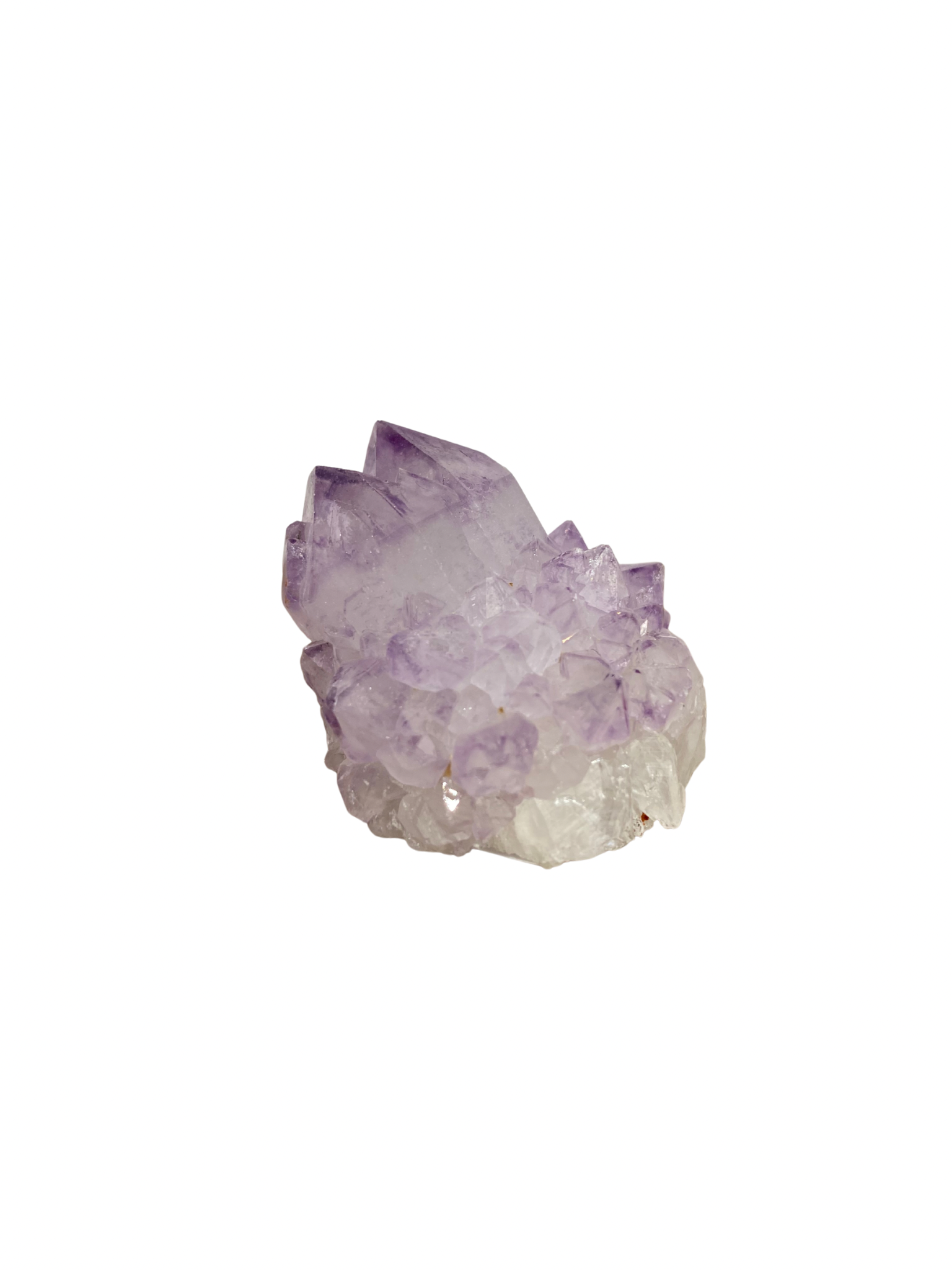 De Cactus Spirit Amethist is een krachtige en bijzondere kristalvorm die bekend staat om een beschermende en harmoniserende energie. Met een unieke kristalstructuur – waarbij meerdere kleine punten uit één basis groeien – verspreidt deze steen energie zacht maar krachtig in alle richtingen.