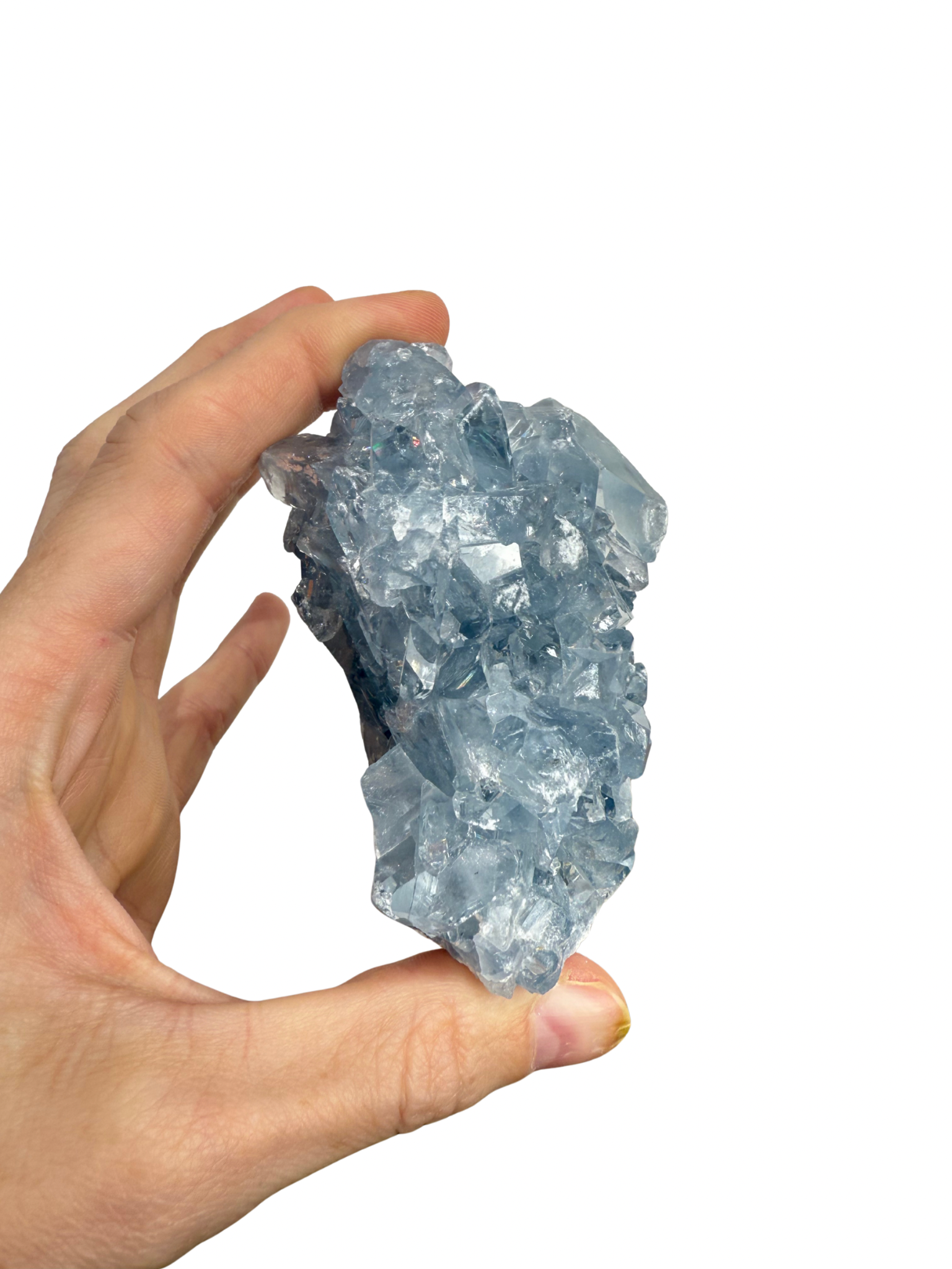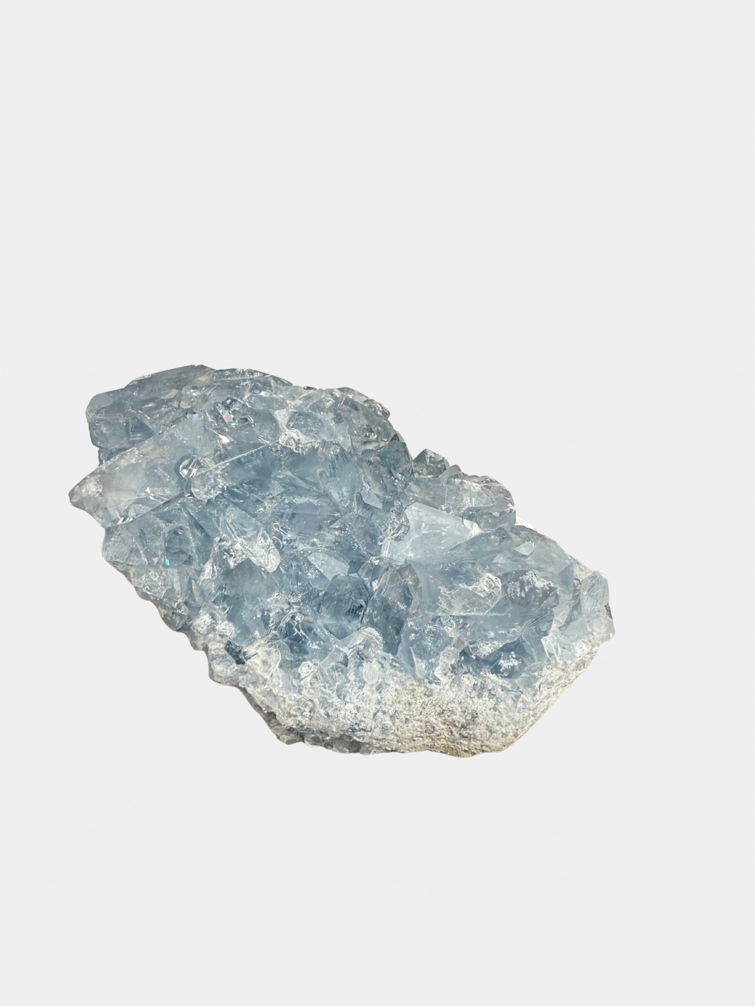 Prachtig Celestien cluster van A-kwaliteit met heldere kristallen. Bekend als de engelensteen, ondersteunt Celestien innerlijke kalmte, helderheid en intuïtieve openingen.