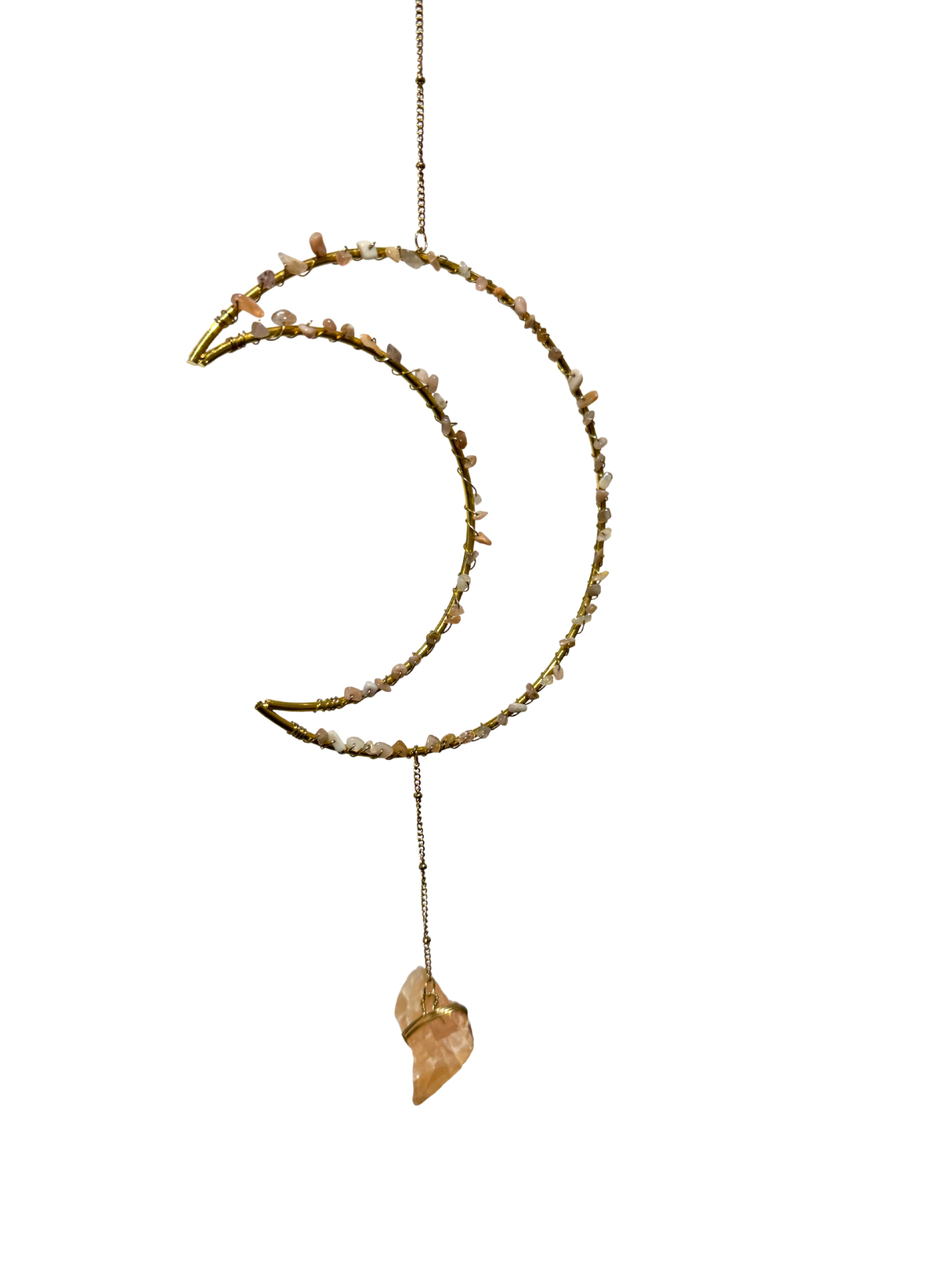 Deze leuke edelsteen maan hanger van Maansteen splitkralen en ook een ruwe brok Maansteen, zijn ontzettend populair voor op de slaapkamer en als cadeau voor bijvoorbeeld op de kinderkamer.