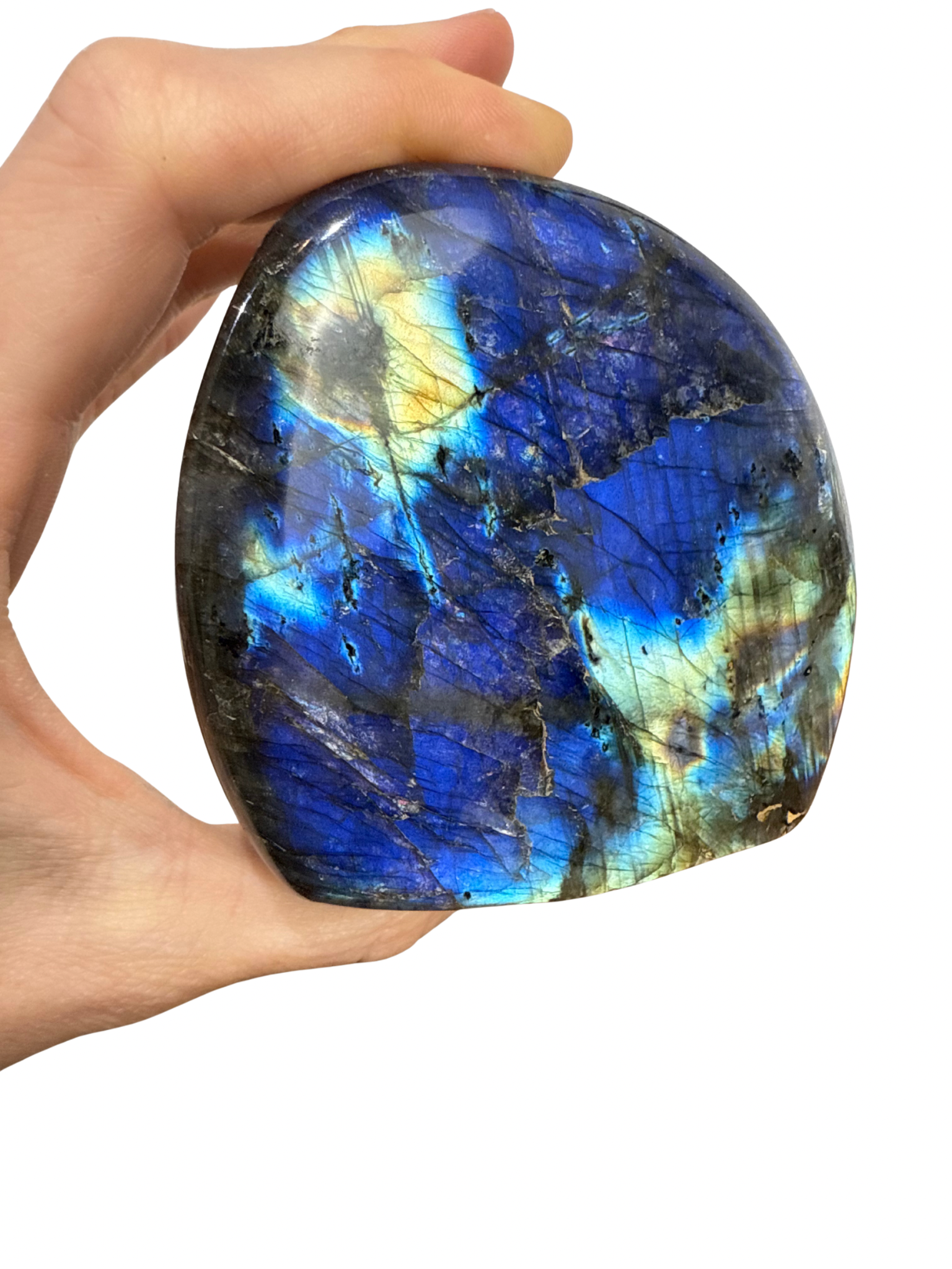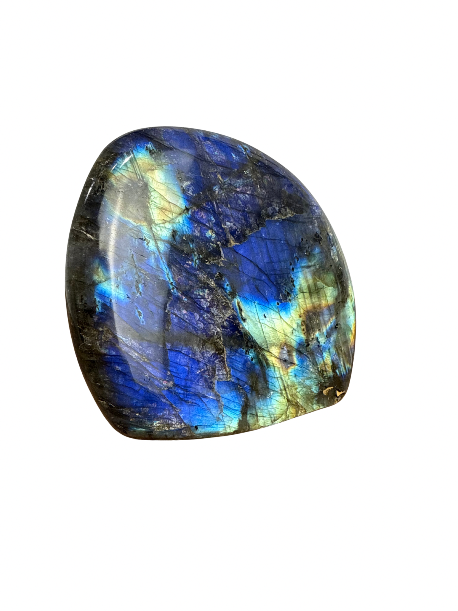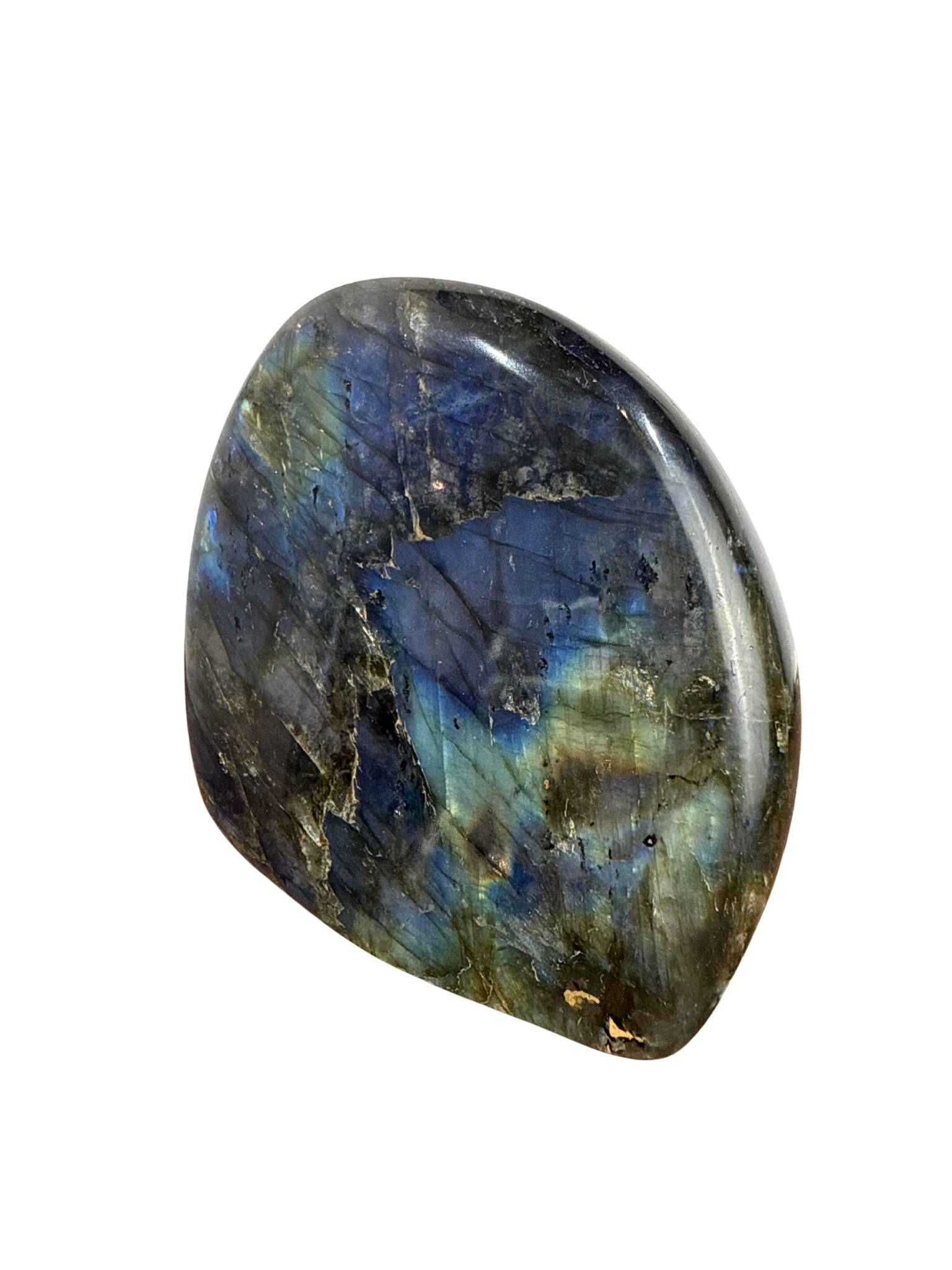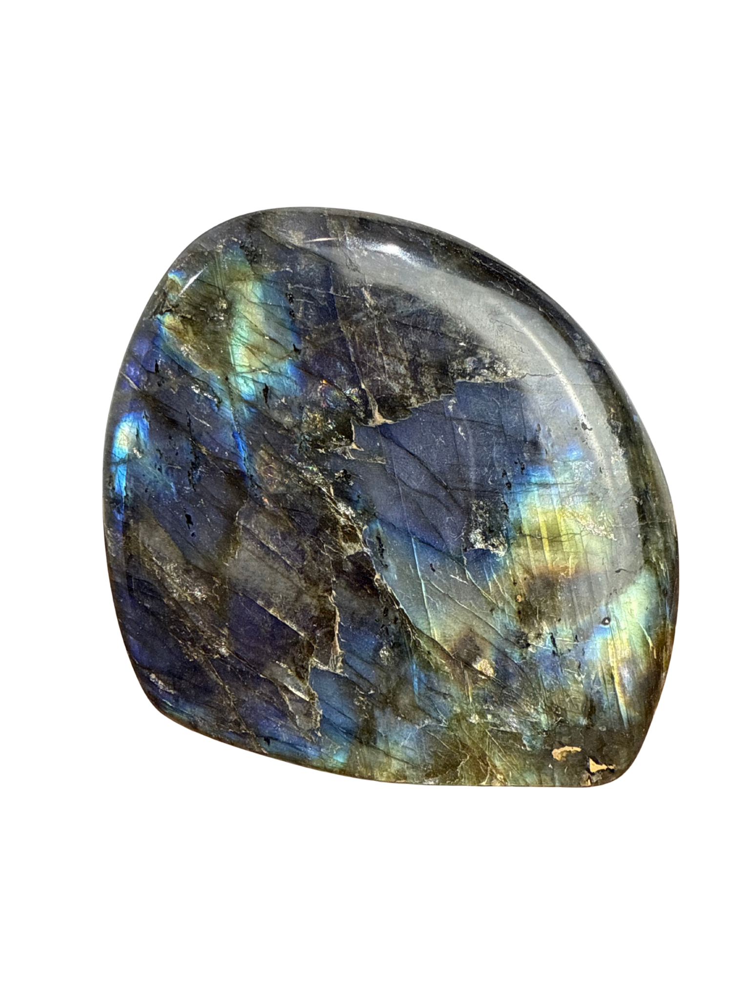 Laat je verrassen door de magie van deze geslepen Labradoriet sculptuur!Â