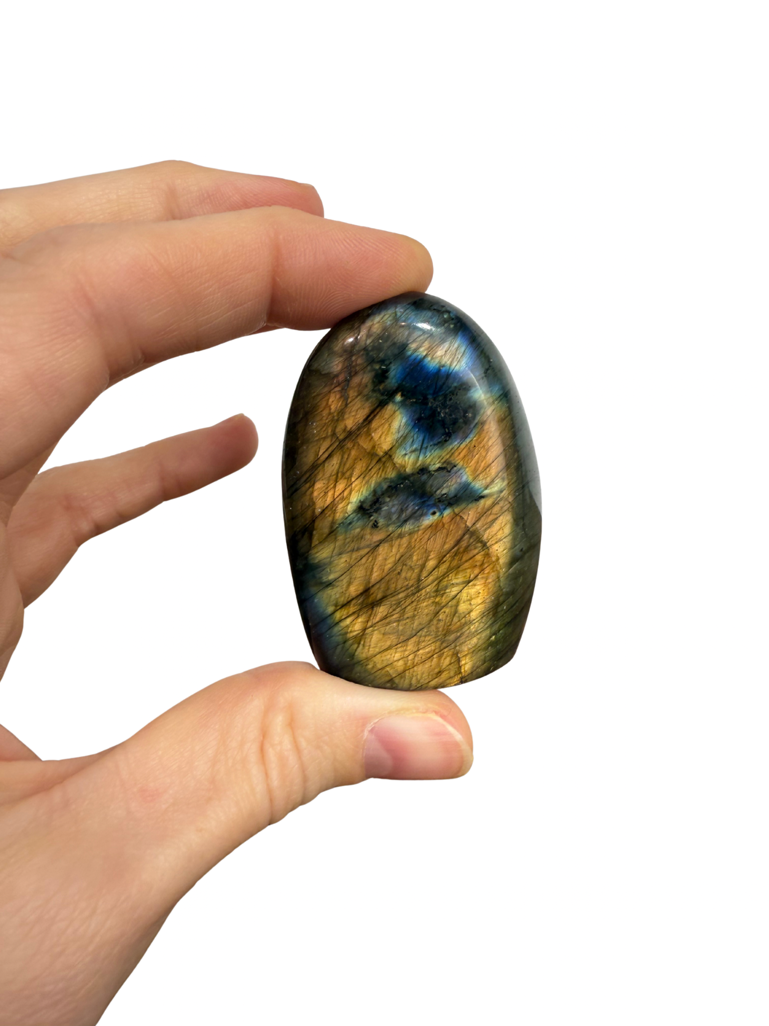 Laat je verrassen door de magie van deze geslepen Labradoriet sculptuur!Â
