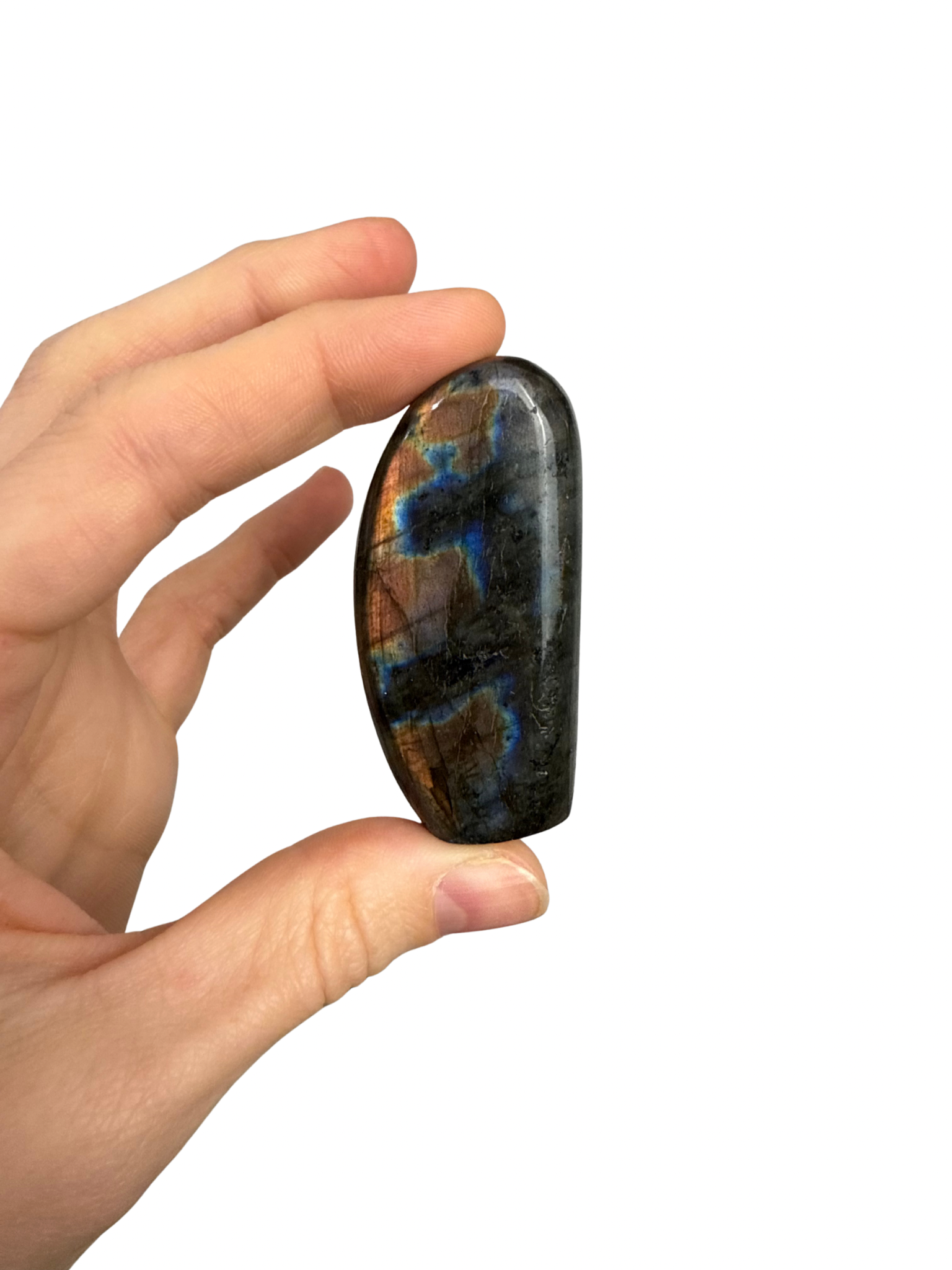Laat je verrassen door de magie van deze geslepen Labradoriet sculptuur!Â