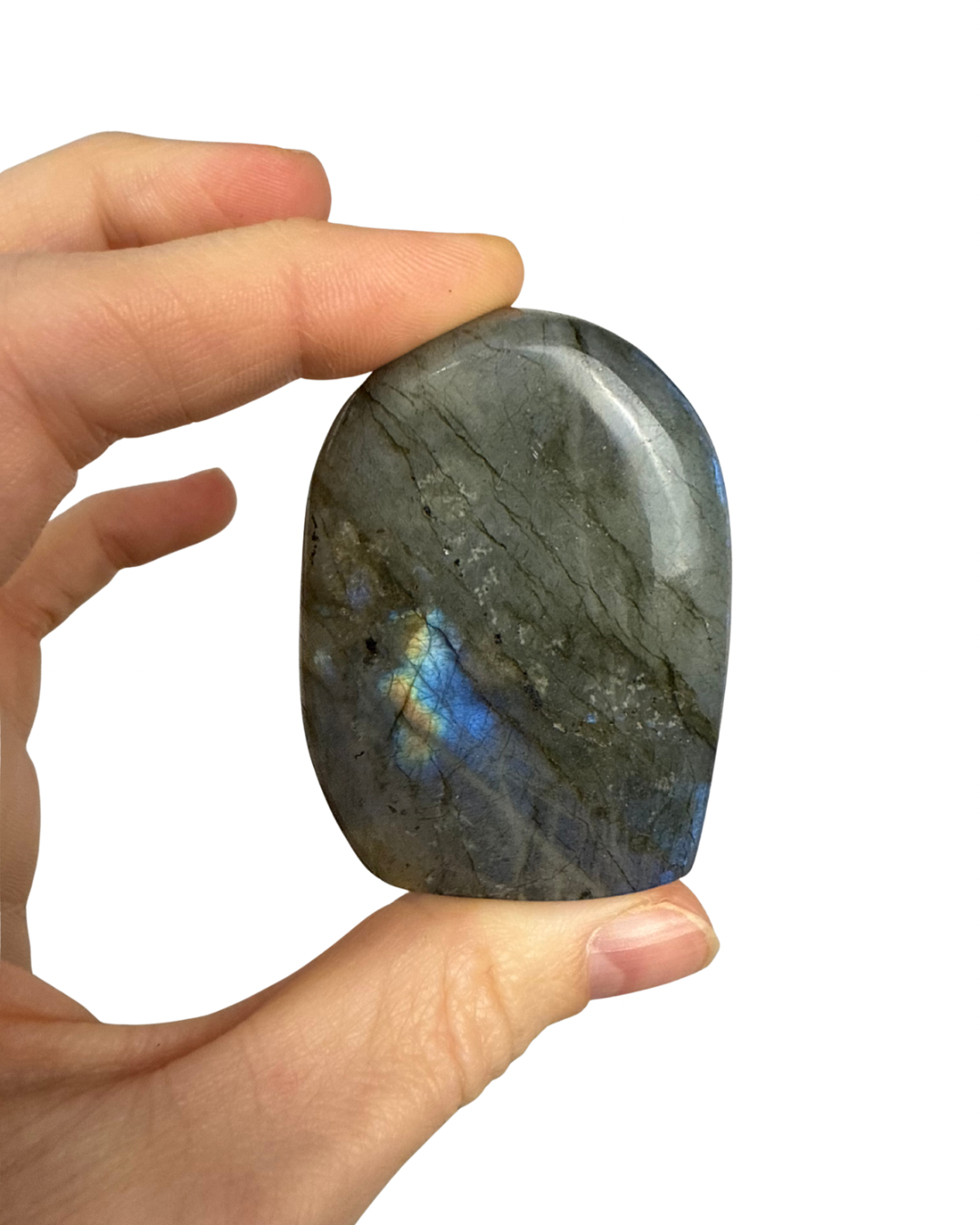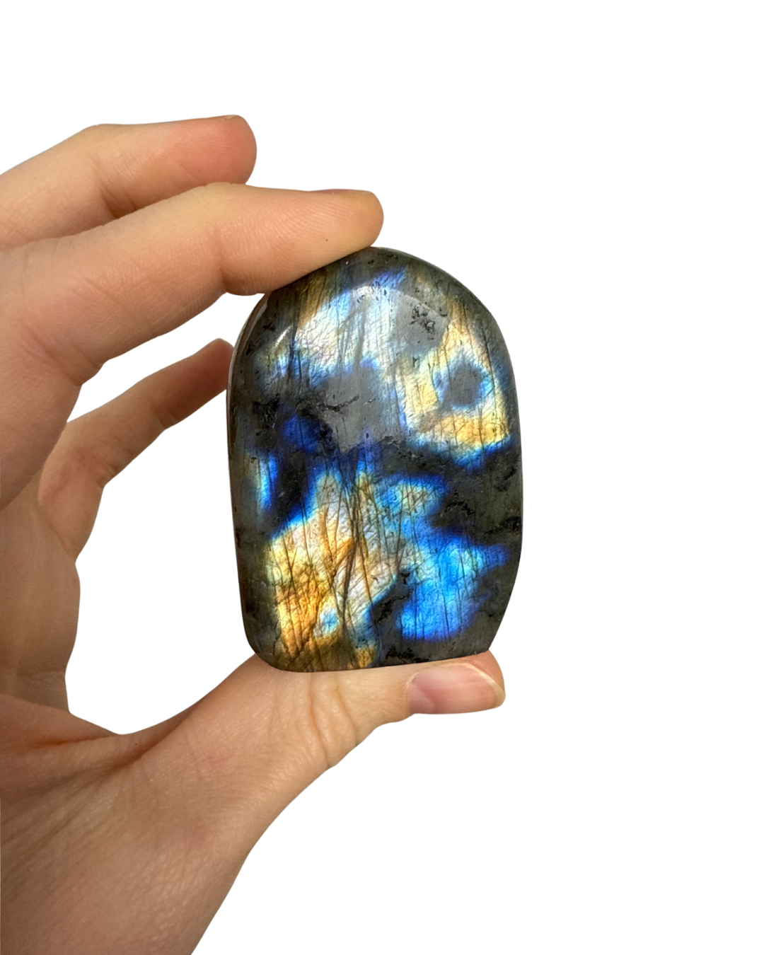Laat je verrassen door de magie van deze geslepen Labradoriet sculptuur!Â