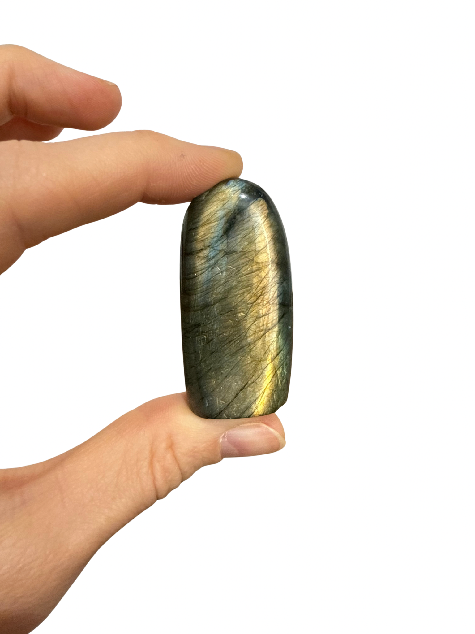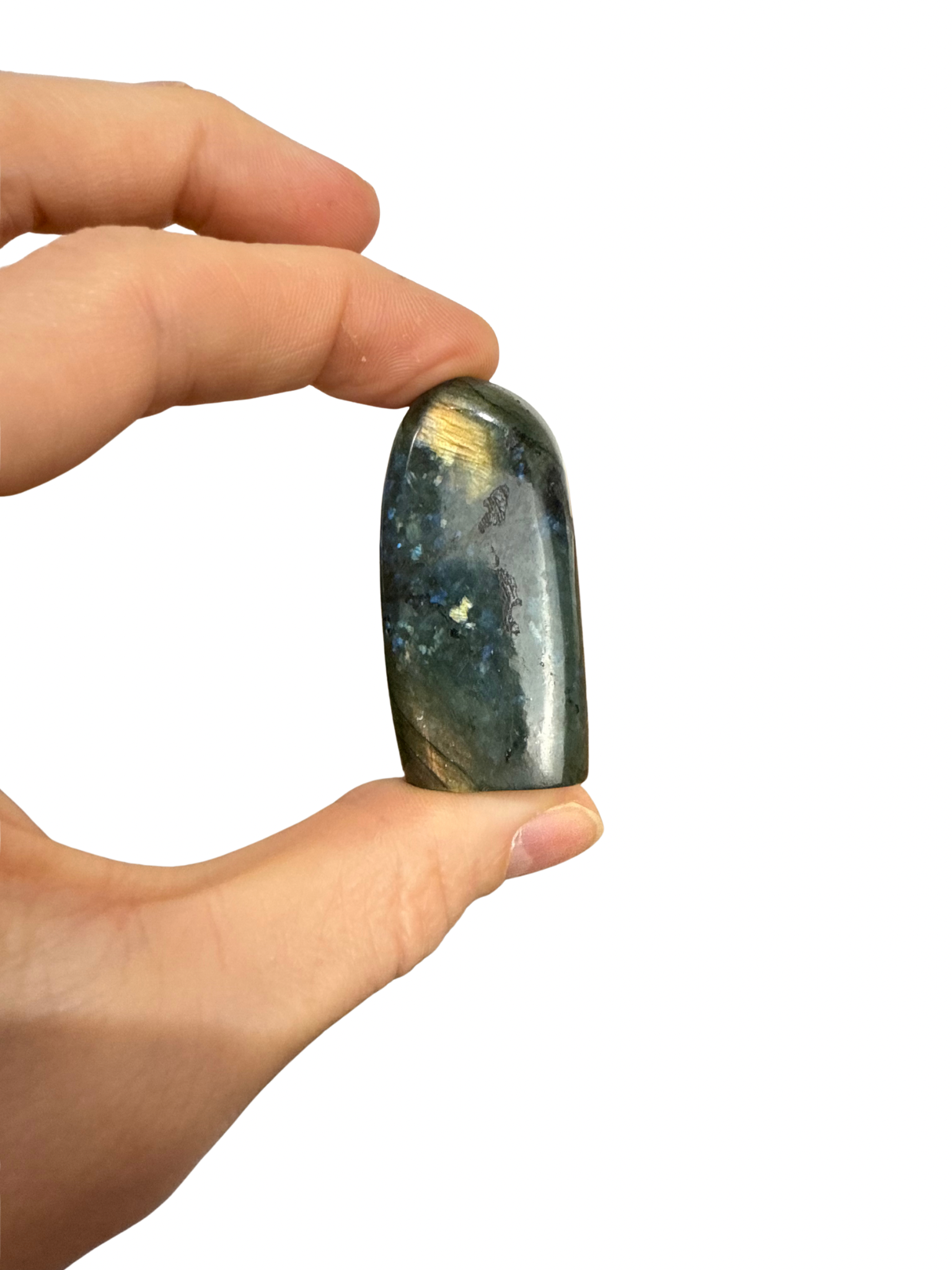 Laat je verrassen door de magie van deze geslepen Labradoriet sculptuur!Â