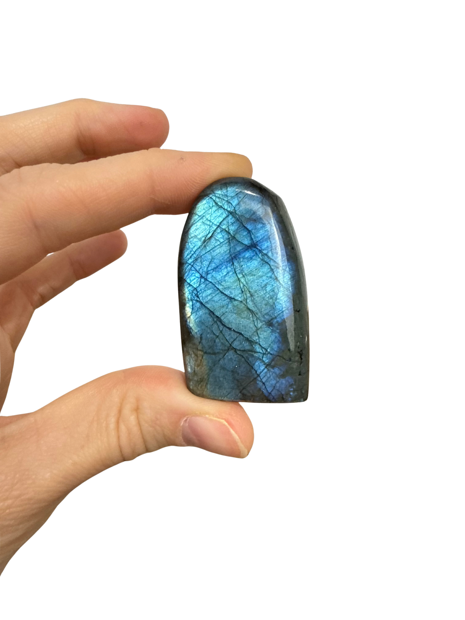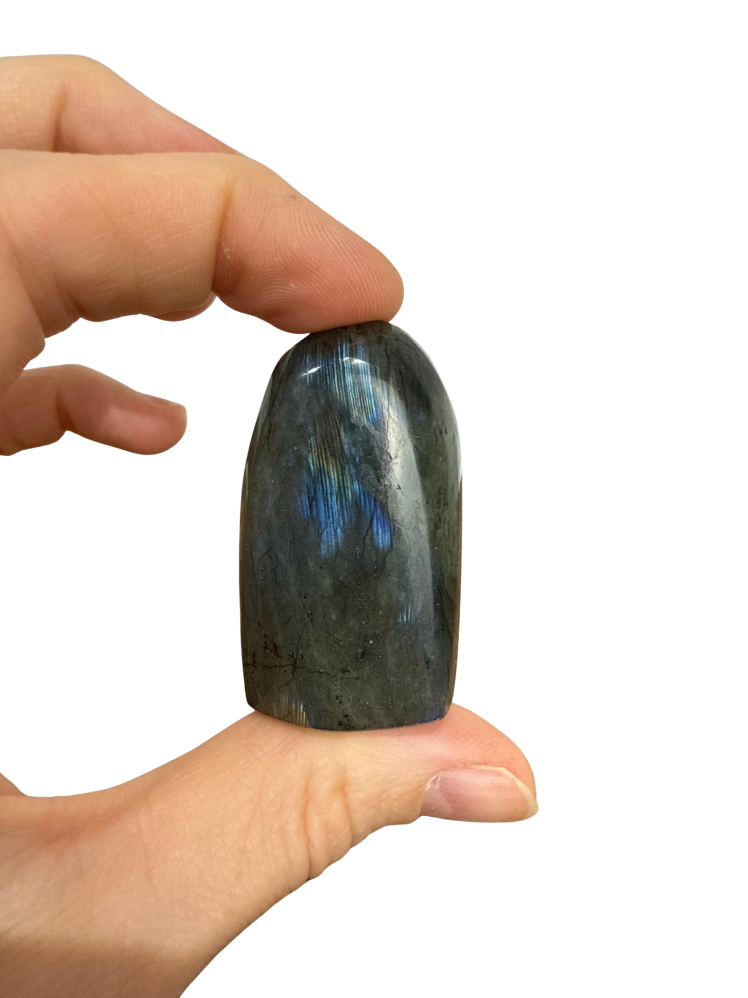 Laat je verrassen door de magie van deze geslepen Labradoriet sculptuur!Â