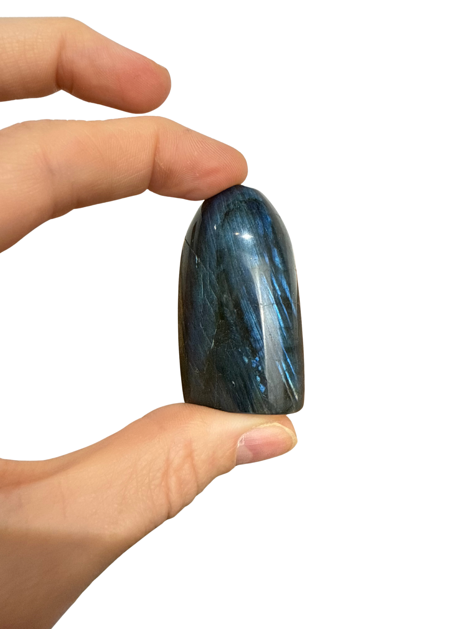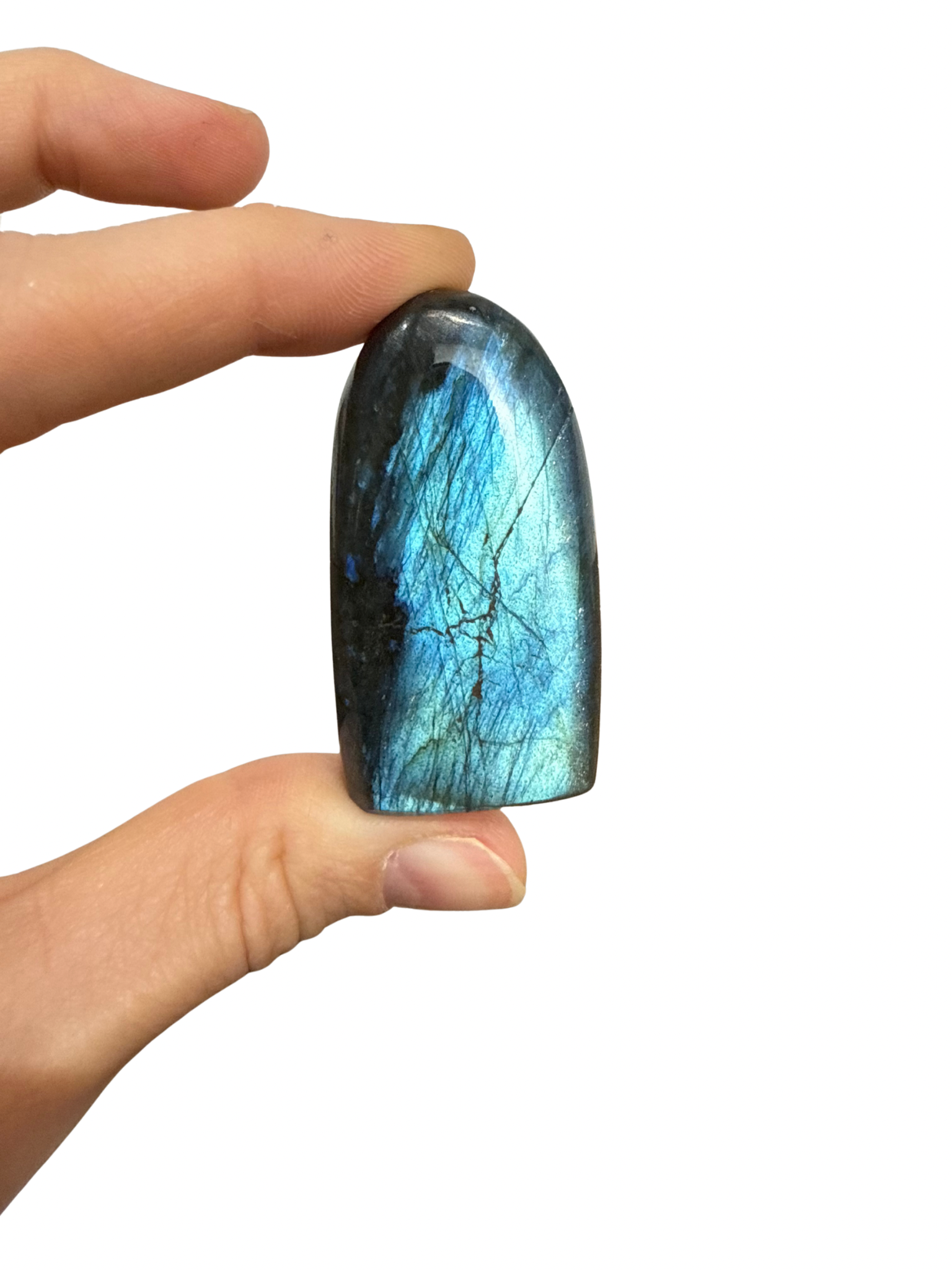Laat je verrassen door de magie van deze geslepen Labradoriet sculptuur!Â
