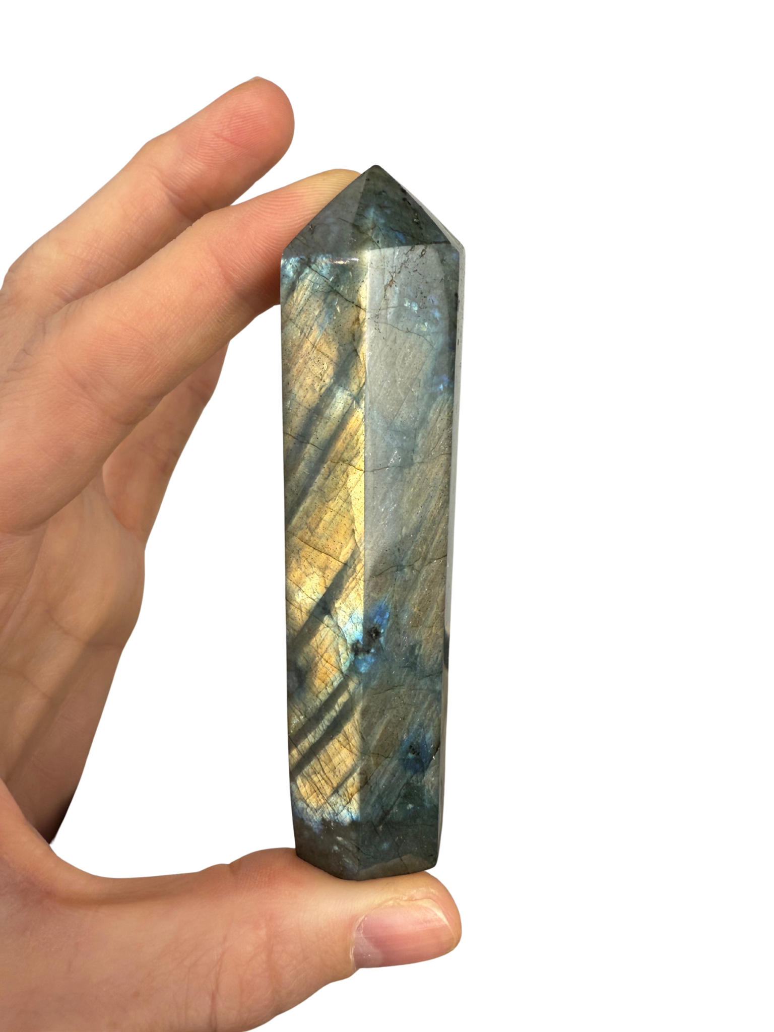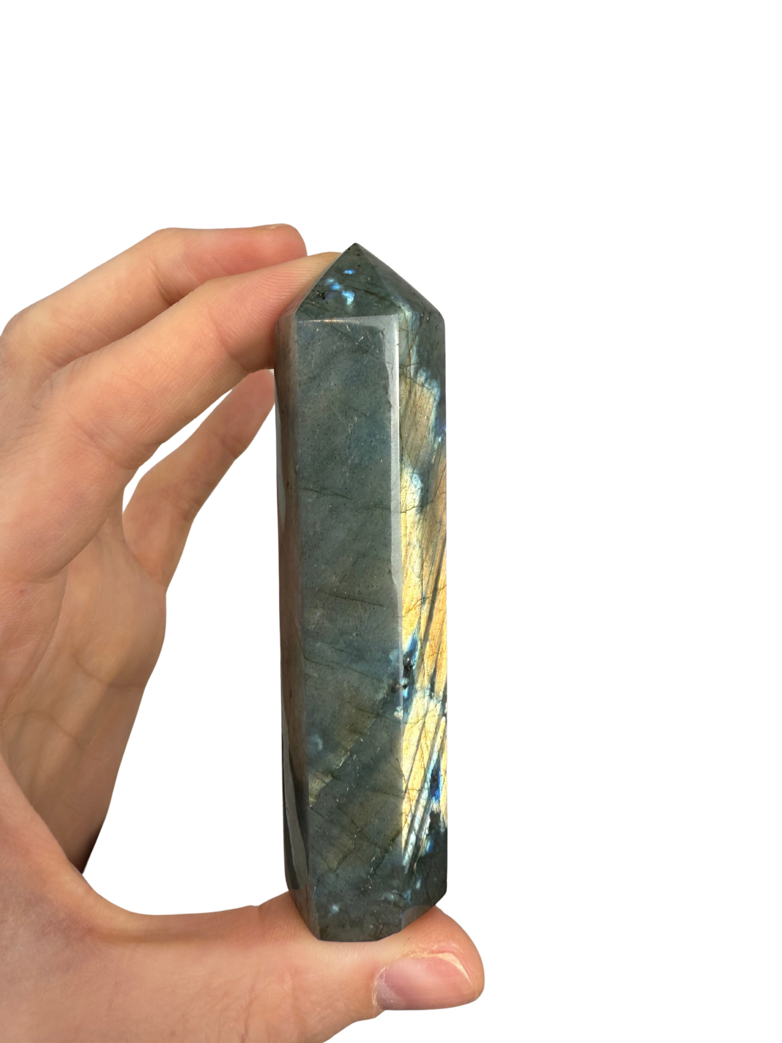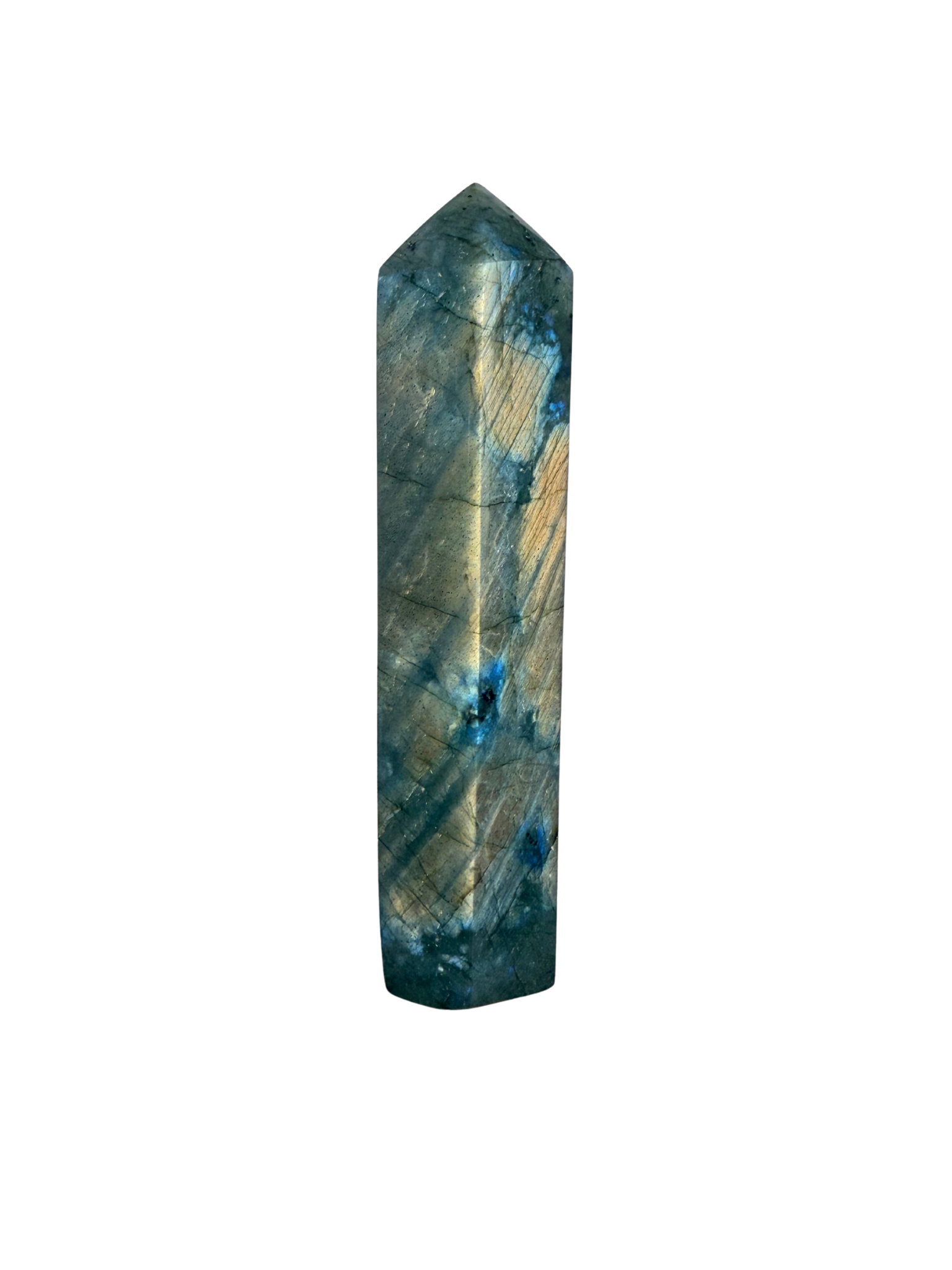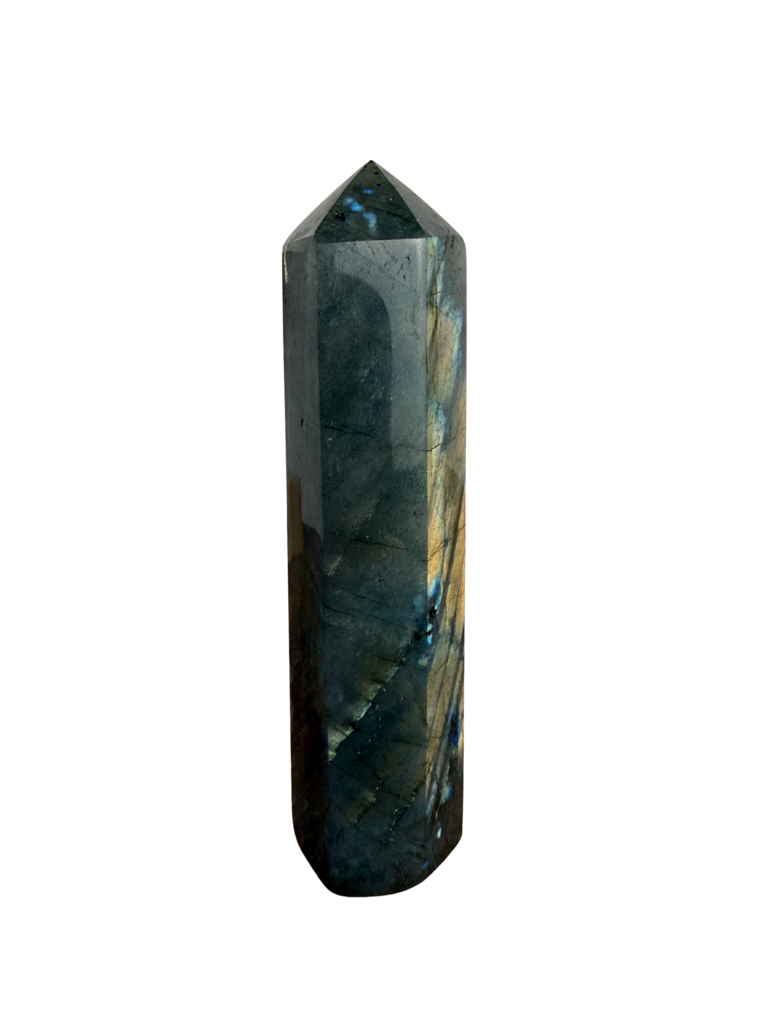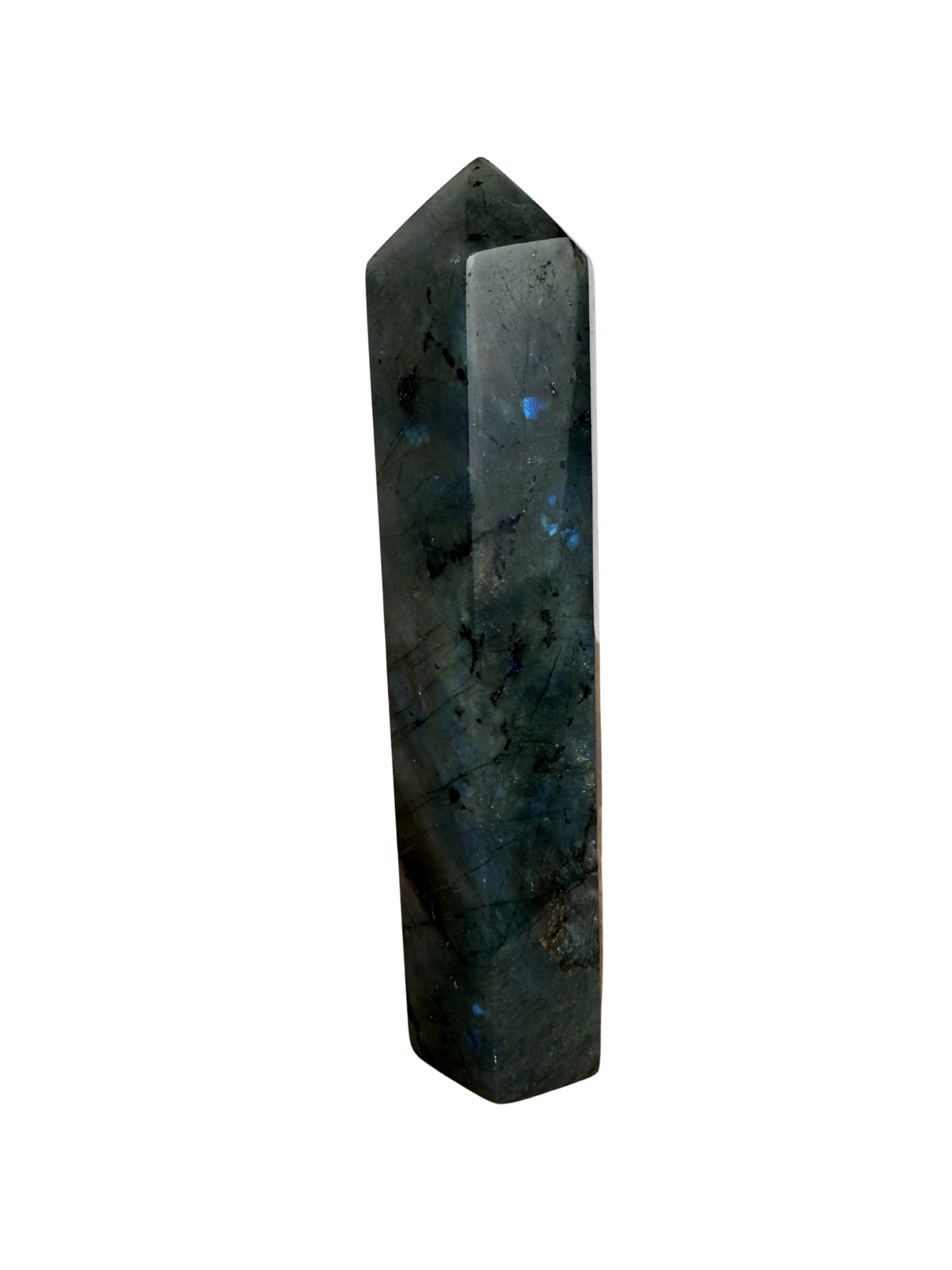 Laat je verrassen door de magie van deze geslepen Labradoriet toren!