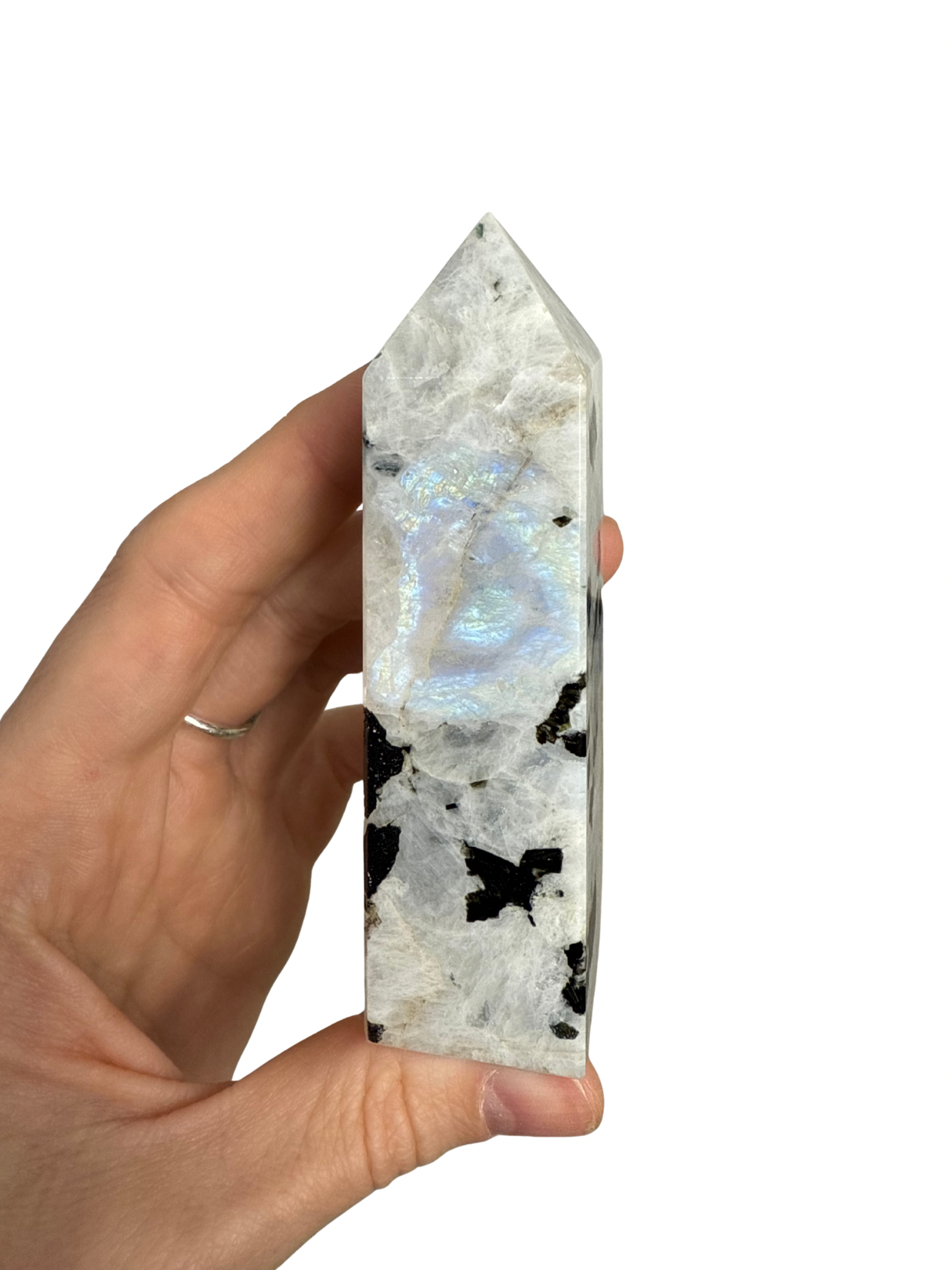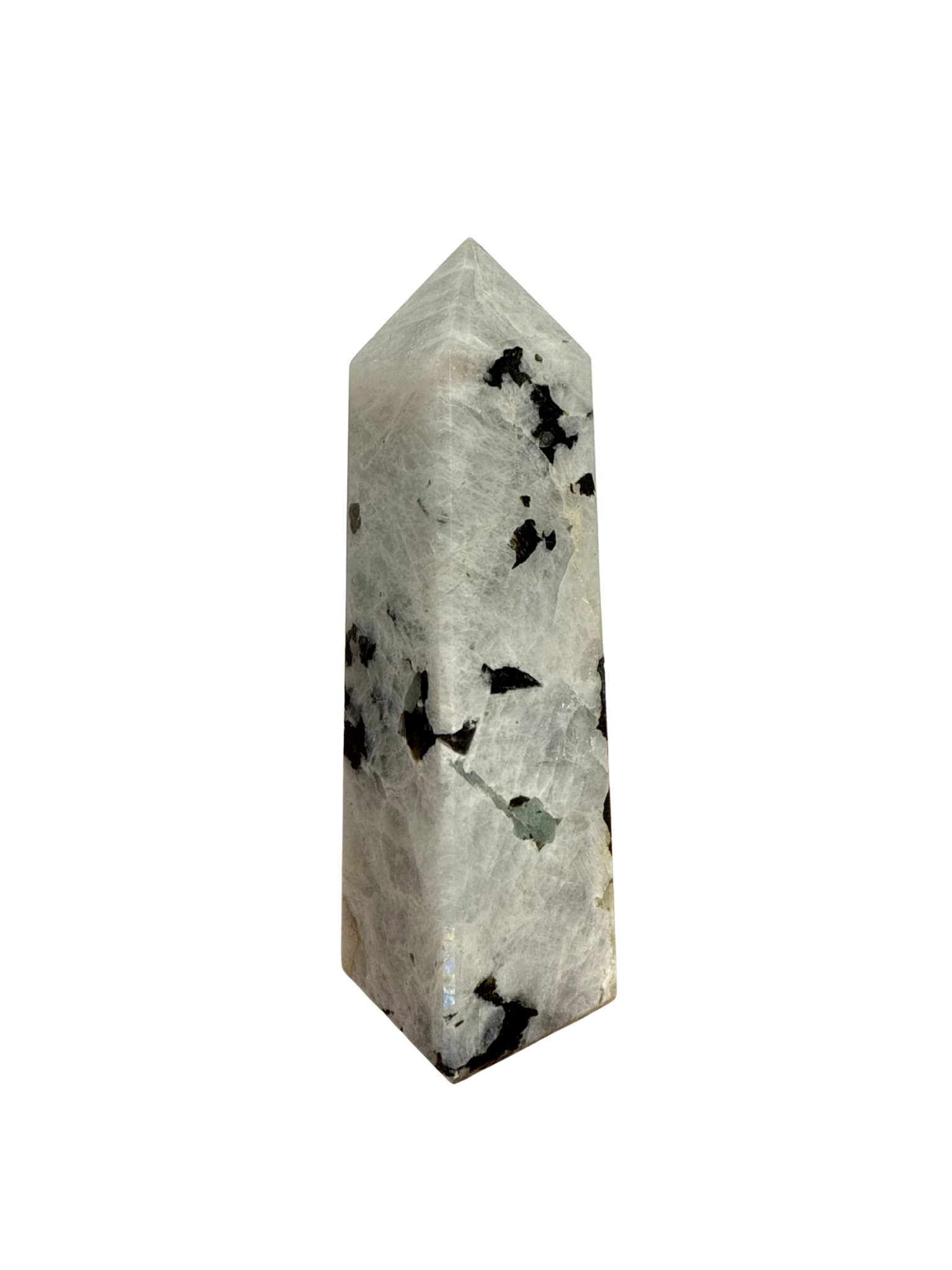 Deze Regenboog Maansteen toren(witte Labradoriet) is een steen die je verbindt met je intuïtie, innerlijke wijsheid en vrouwelijke energie.Â
