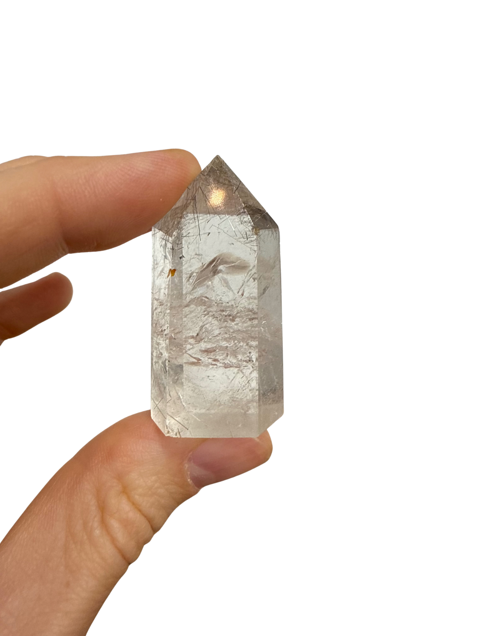 Heldere Rutielkwarts toren met gouden tot koperkleurige naaldjes die door het Kwarts heen lopen. Rutielkwarts wordt ook wel de steen van manifestatie genoemd – hij helpt je intenties te versterken en dromen om te zetten in realiteit.Â