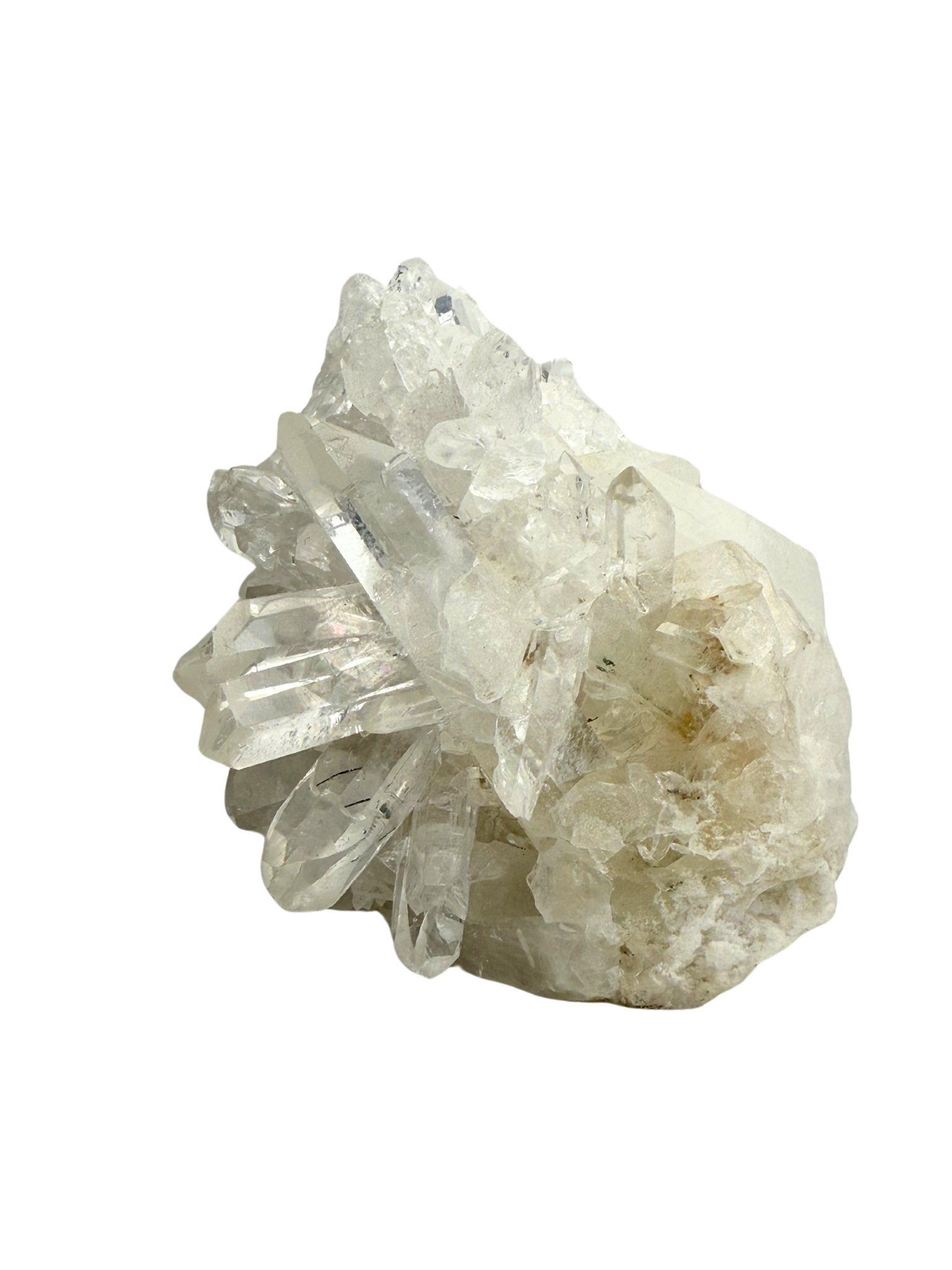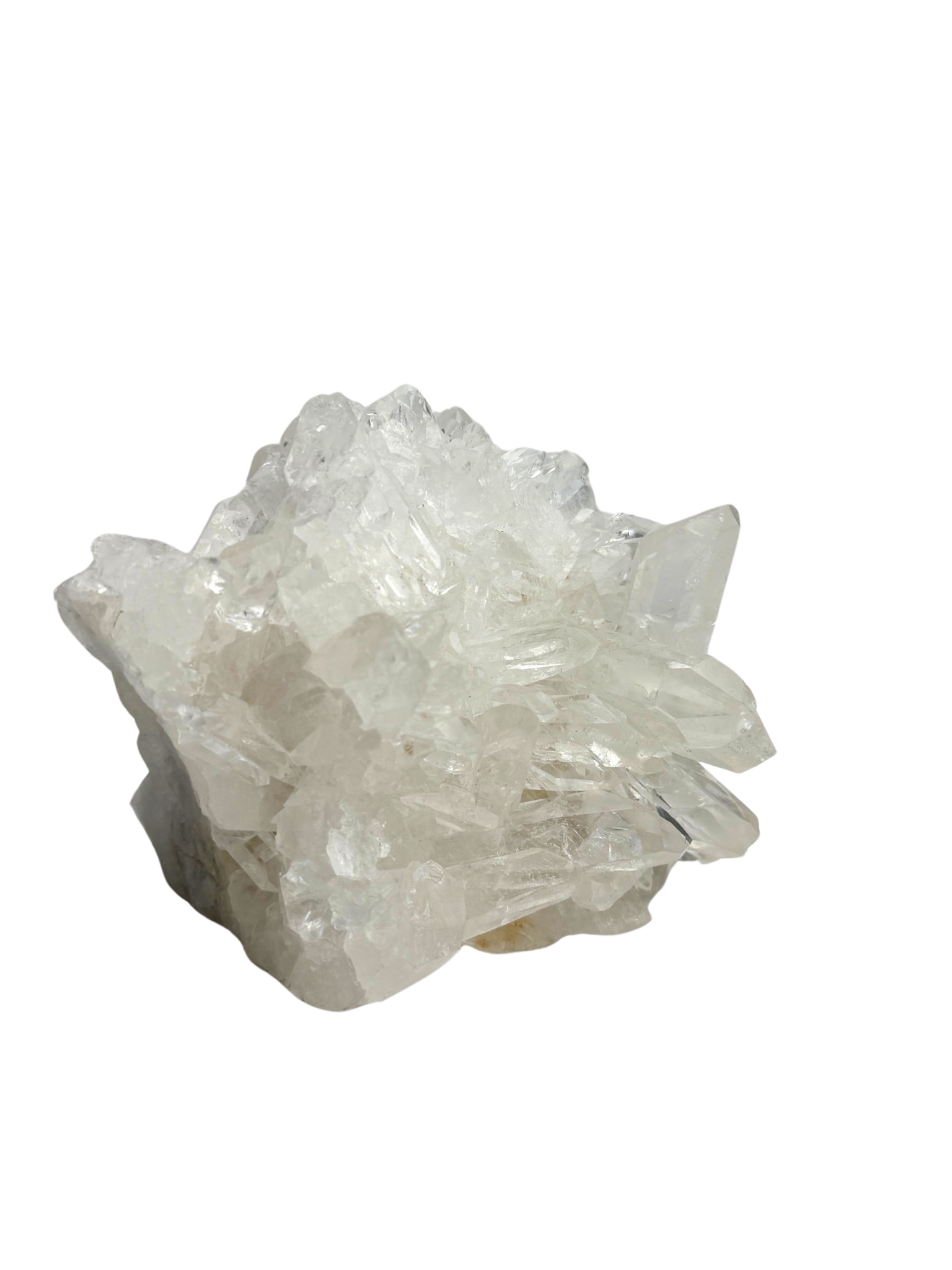 Een indrukwekkende Bergkristal cluster! De vele heldere kristalpunten stralen pure, zuiverende energie uit en versterken de sfeer in elke ruimte. Ideaal voor energetische reiniging, meditatie.
