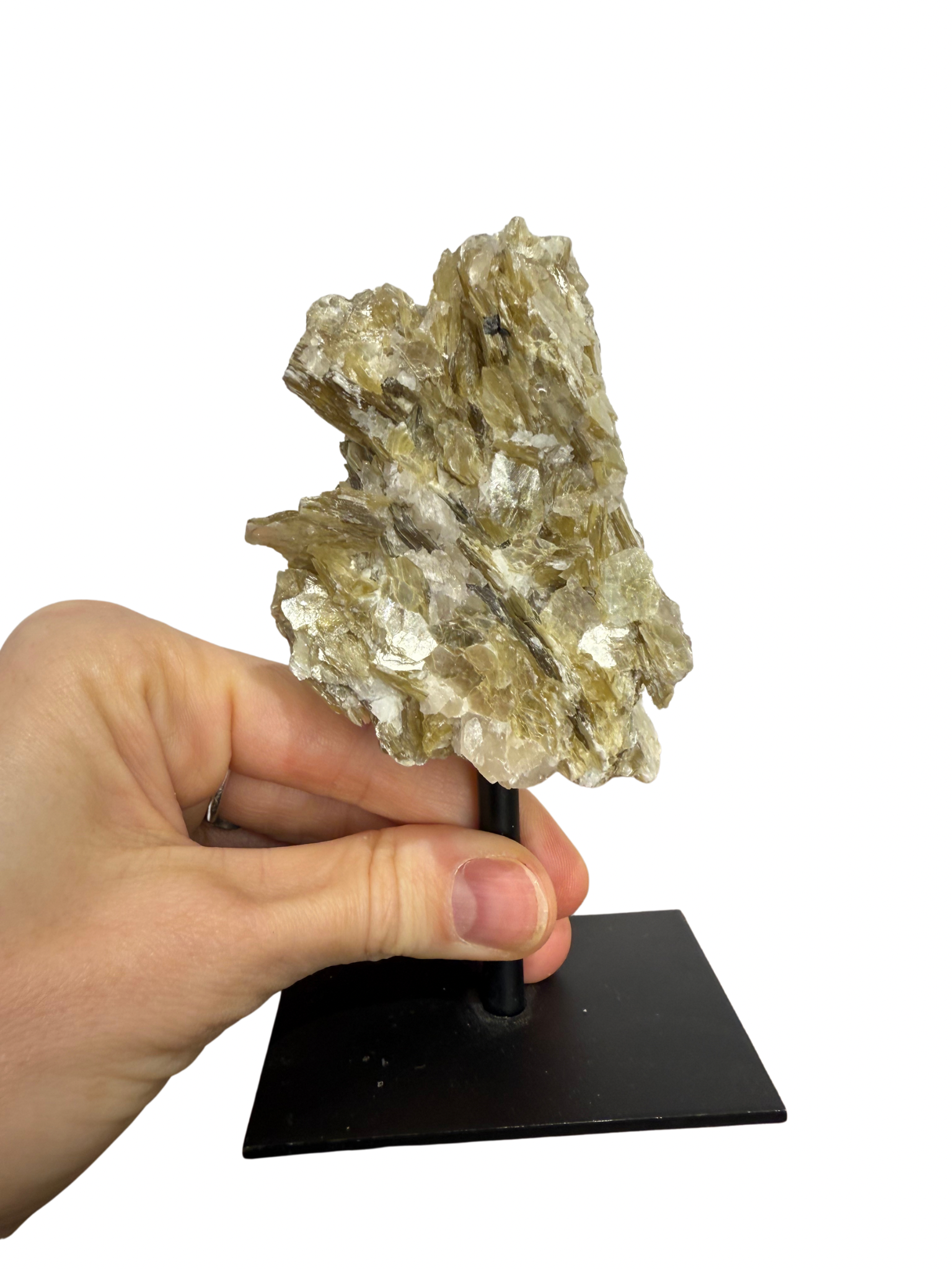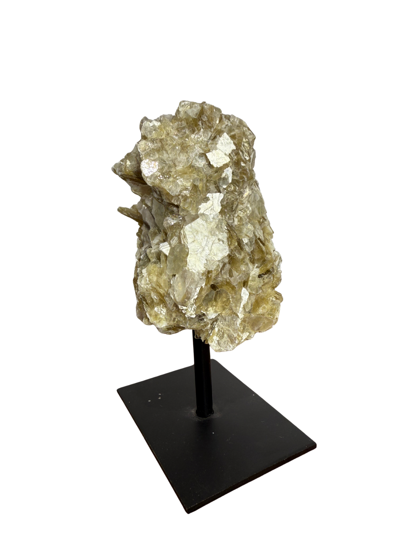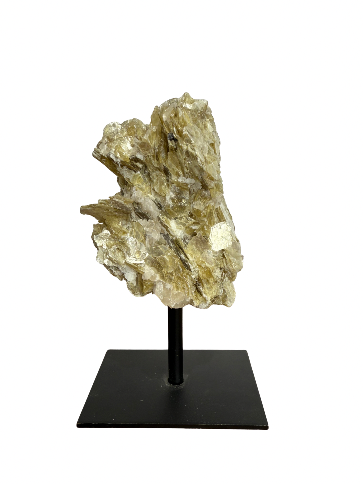 Deze glinsterende Gouden Mica op standaard straalt warmte, licht en kracht uit. De natuurlijke, goudkleurige lagen vangen prachtig het licht en symboliseren helderheid en optimisme. Gouden mica (ook wel Muscoviet genoemd) staat bekend als een steen van zelfvertrouwen, bescherming en mentale balans.