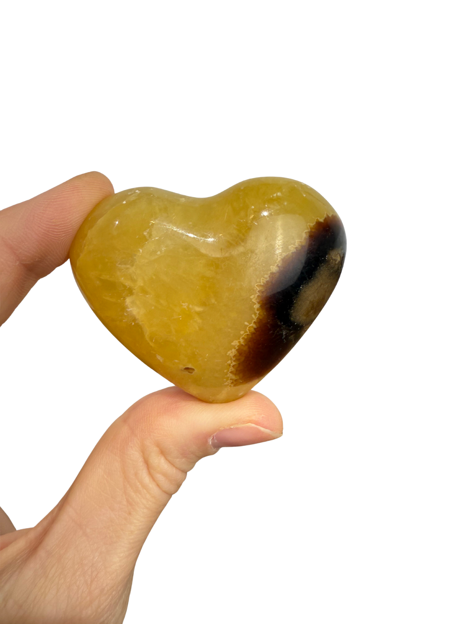 Dit prachtige Septarie hart is een natuurlijk kunstwerk gevormd uit een combinatie van calciet, aragoniet en klei. De aardse tinten en unieke patronen symboliseren verbinding met de natuur en innerlijke stabiliteit.Â