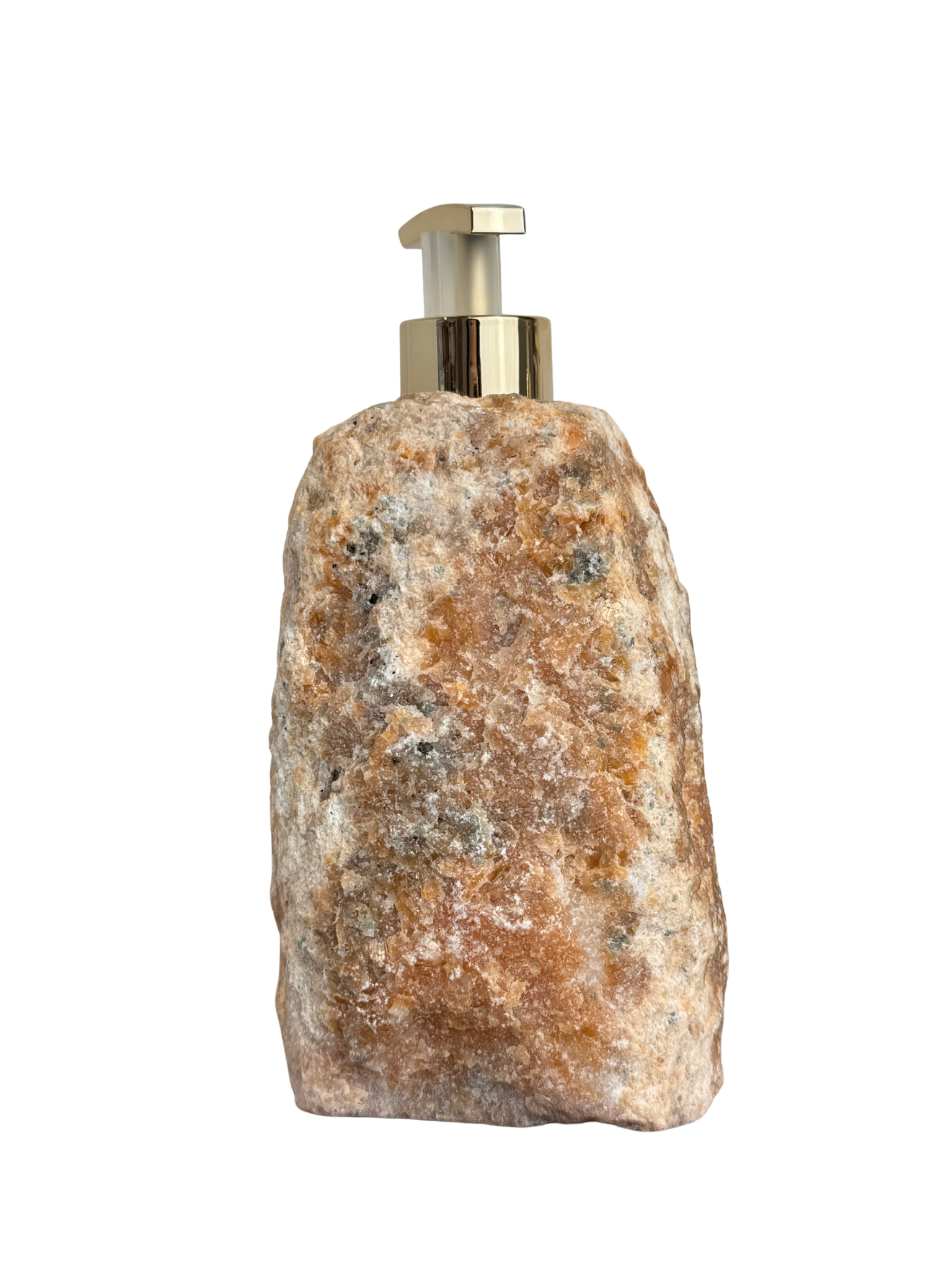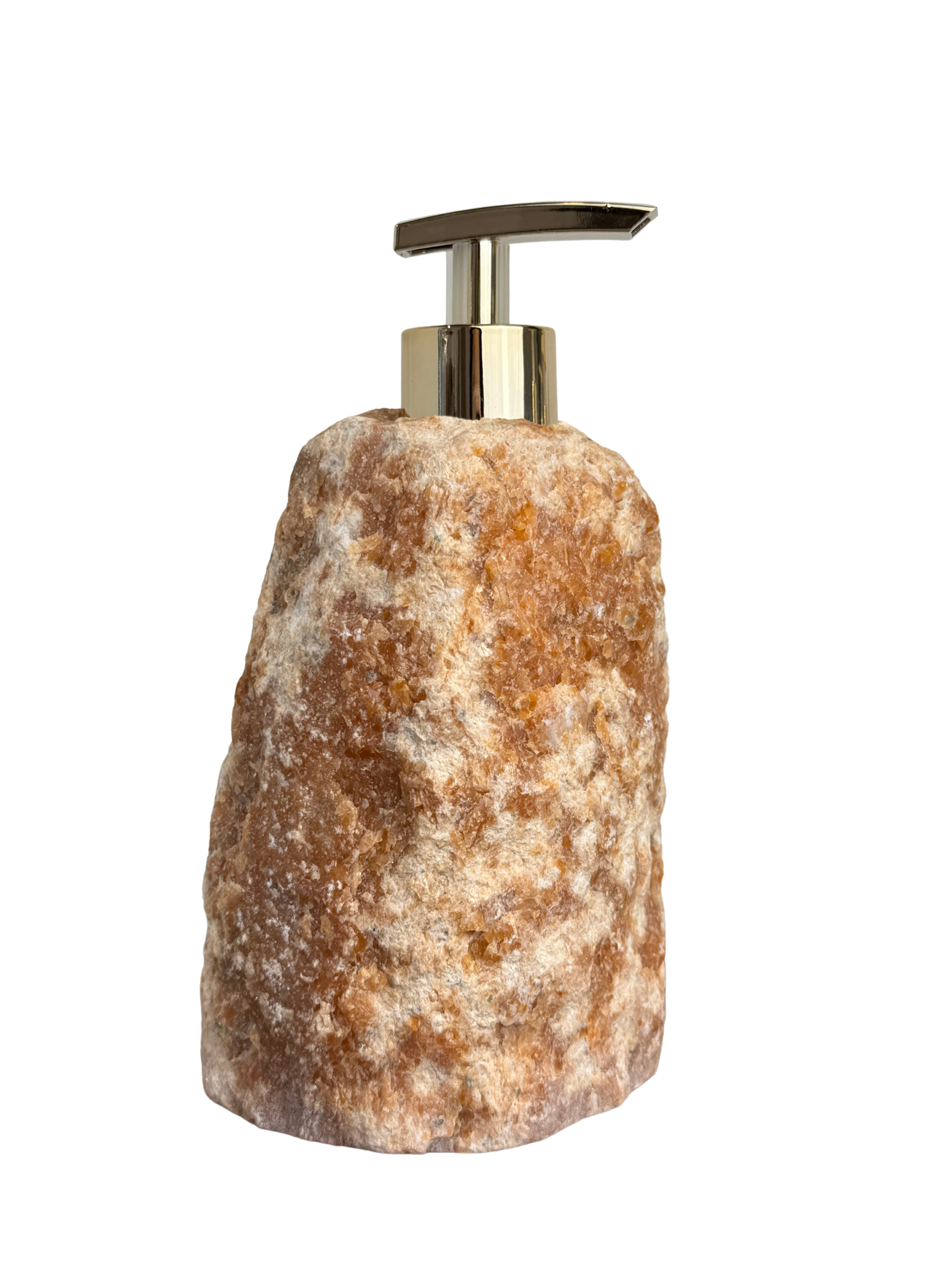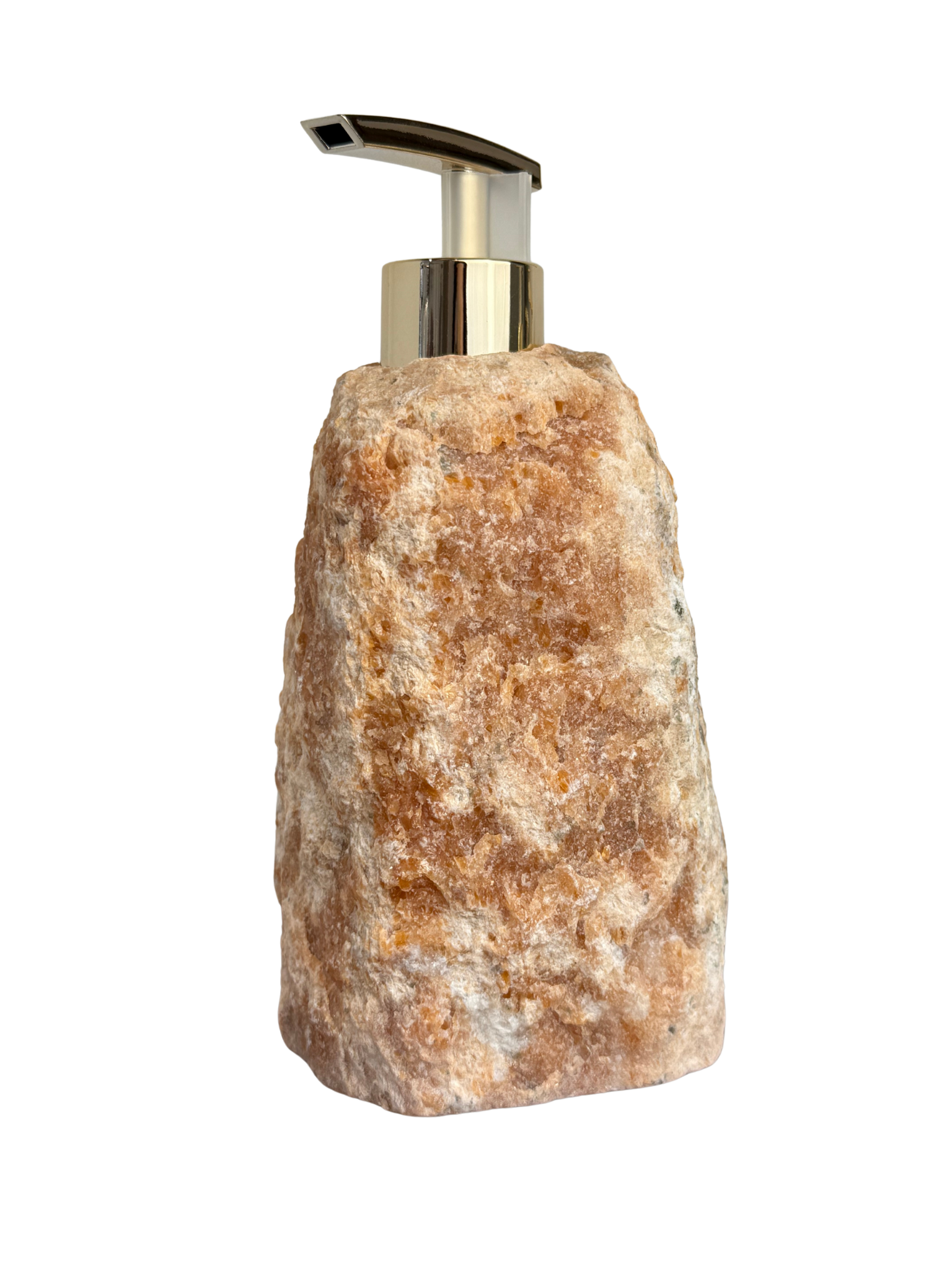 Deze prachtige zeeppomp van Oranje Calciet maakt jouw badkamer of keuken helemaal af.