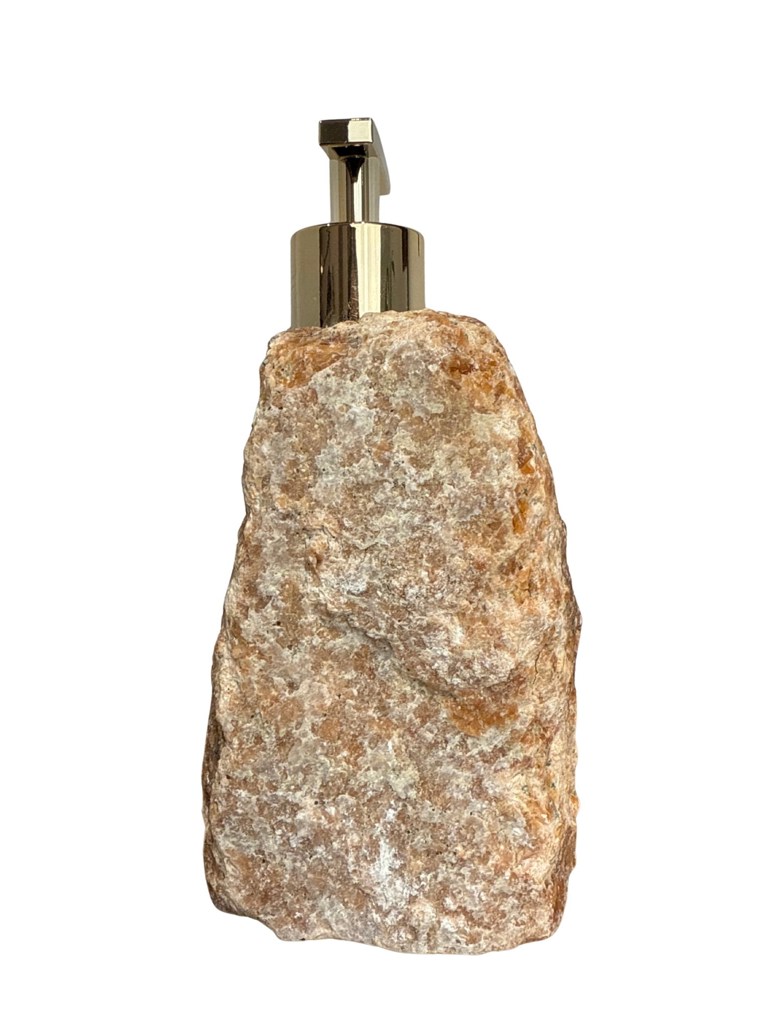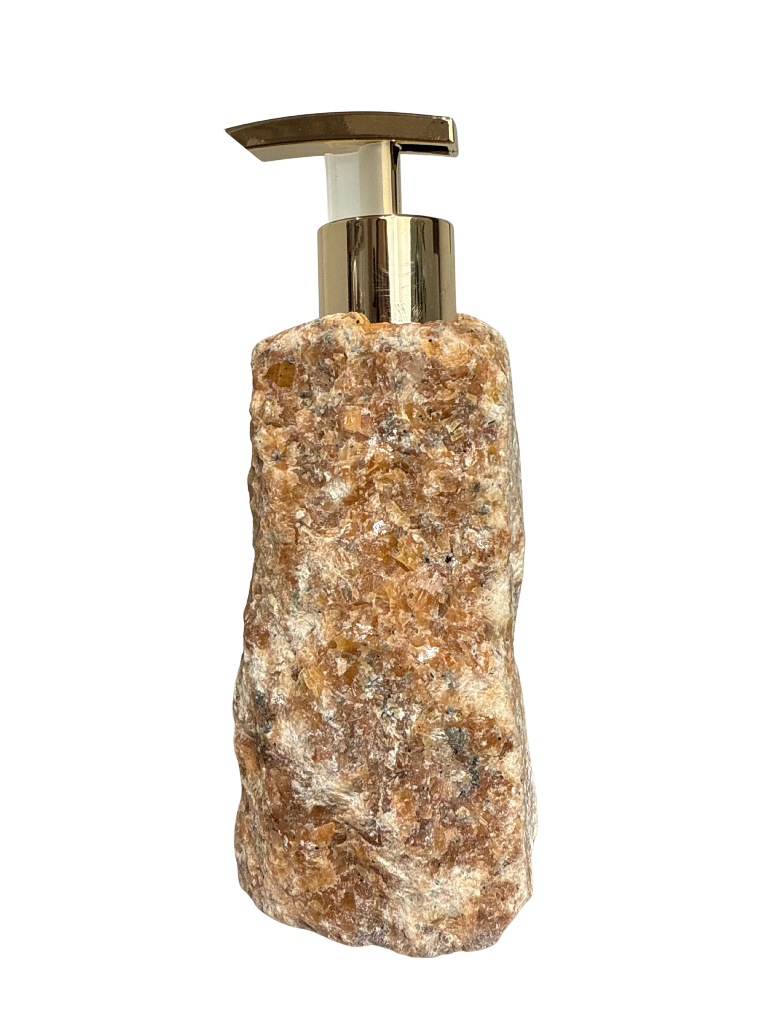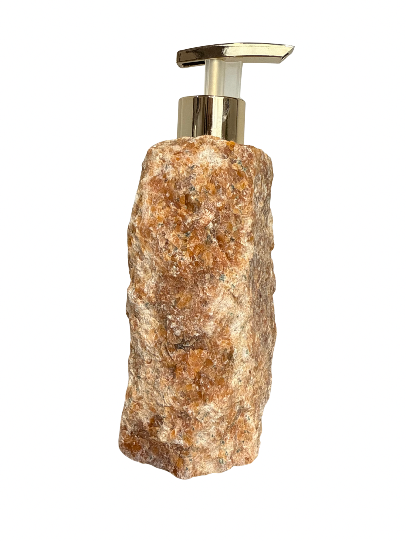 Deze prachtige zeeppomp van Oranje Calciet maakt jouw badkamer of keuken helemaal af.Â