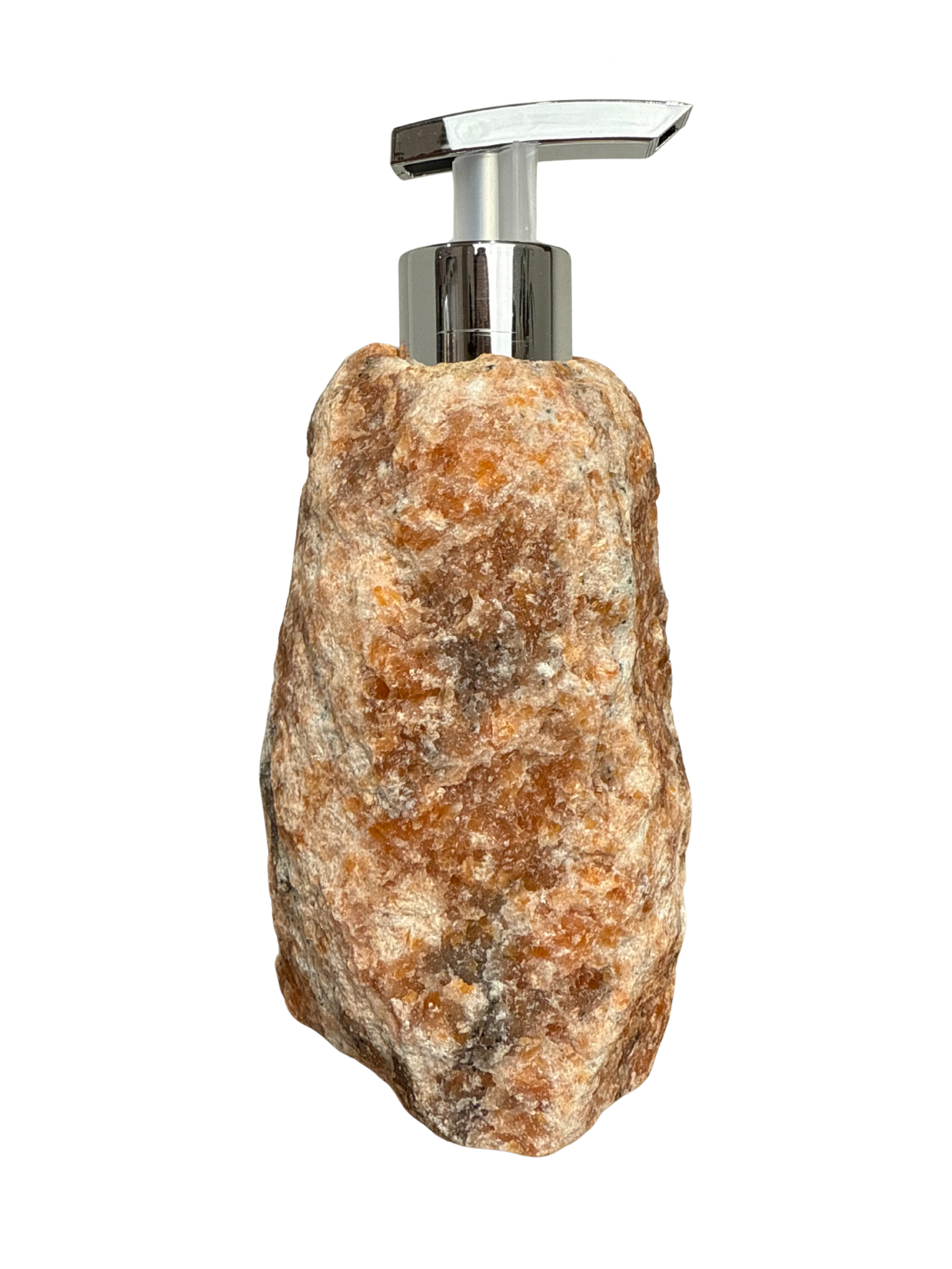 Deze prachtige zeeppomp van Oranje Calciet maakt jouw badkamer of keuken helemaal af.Â