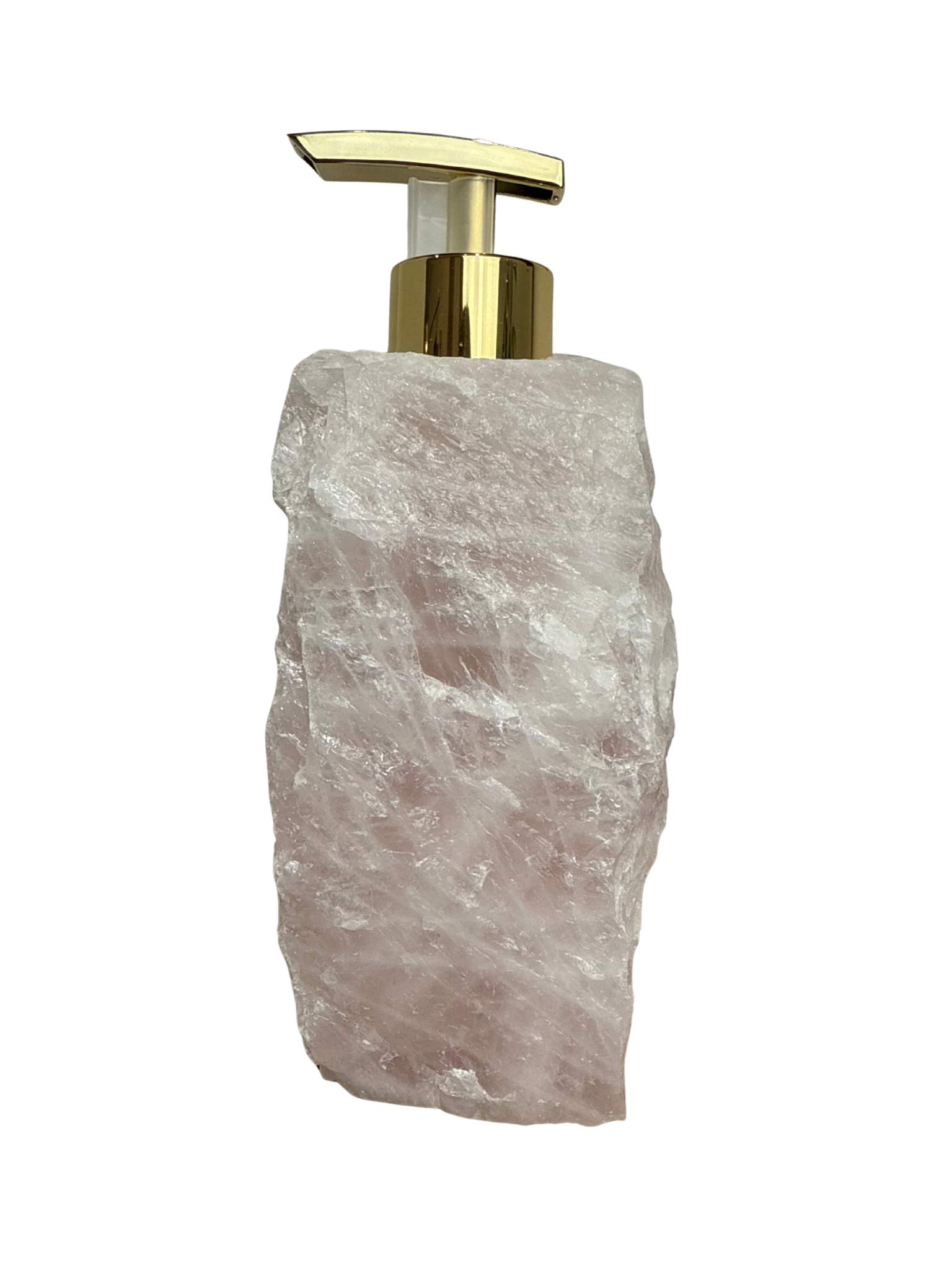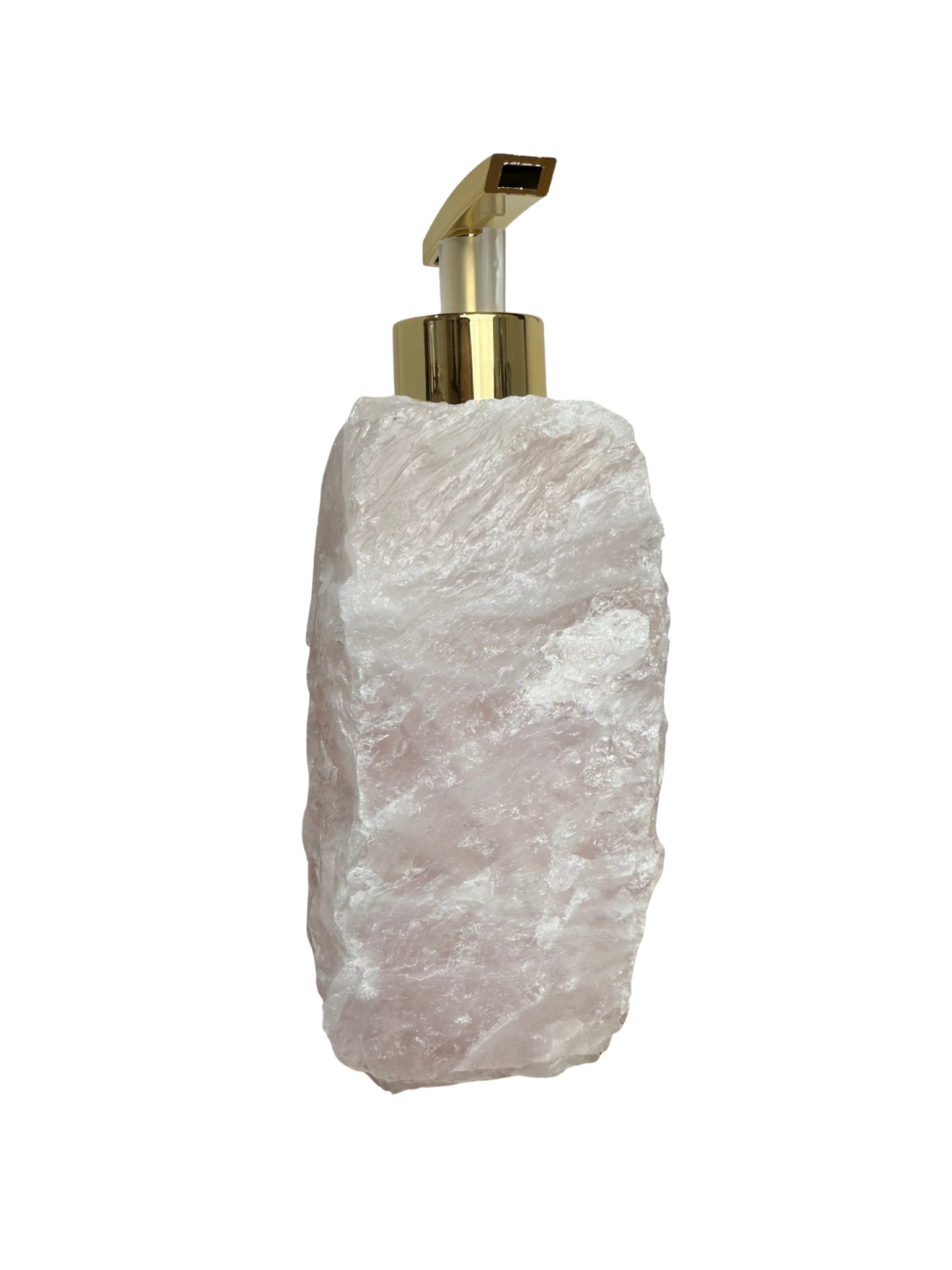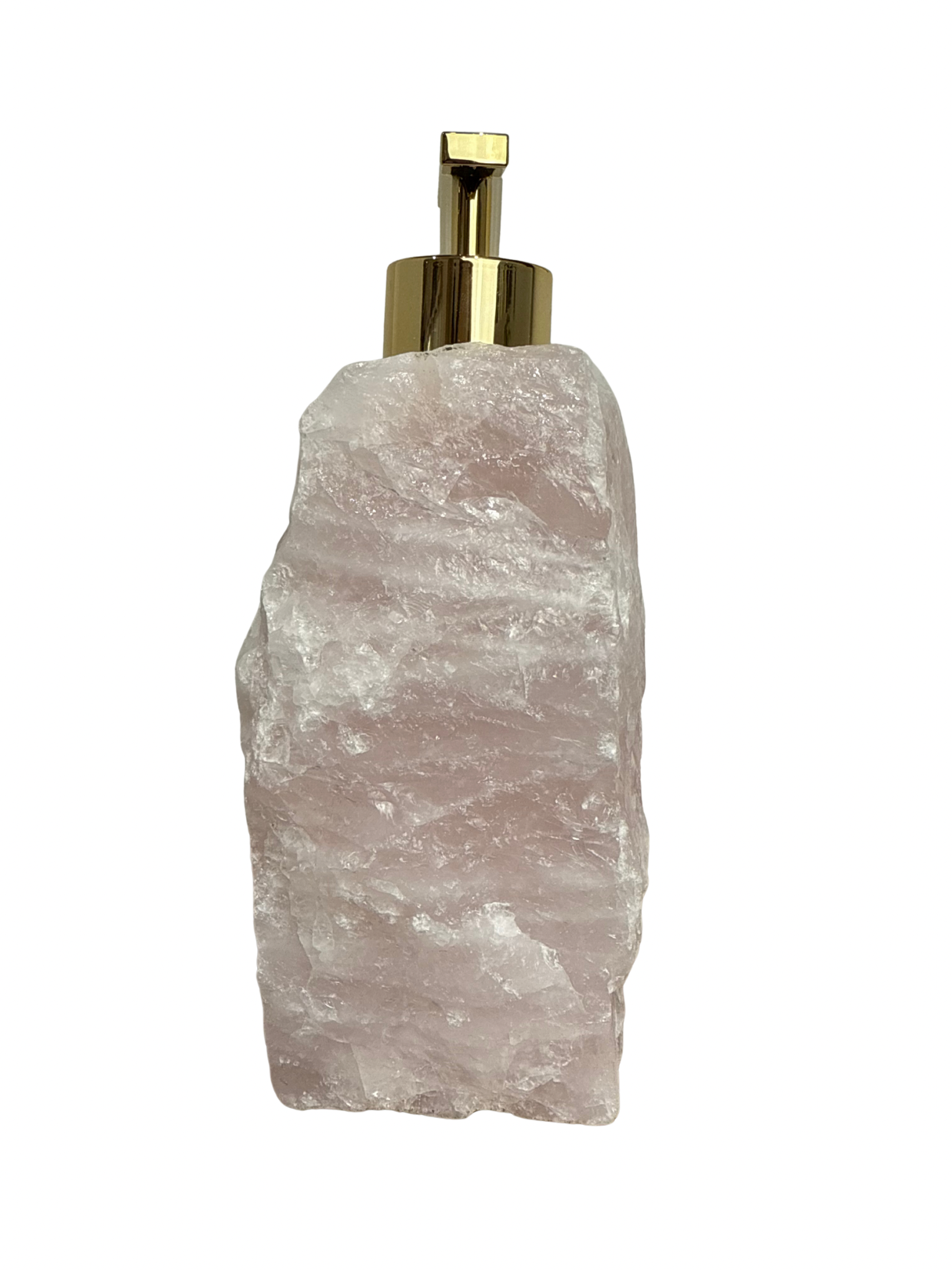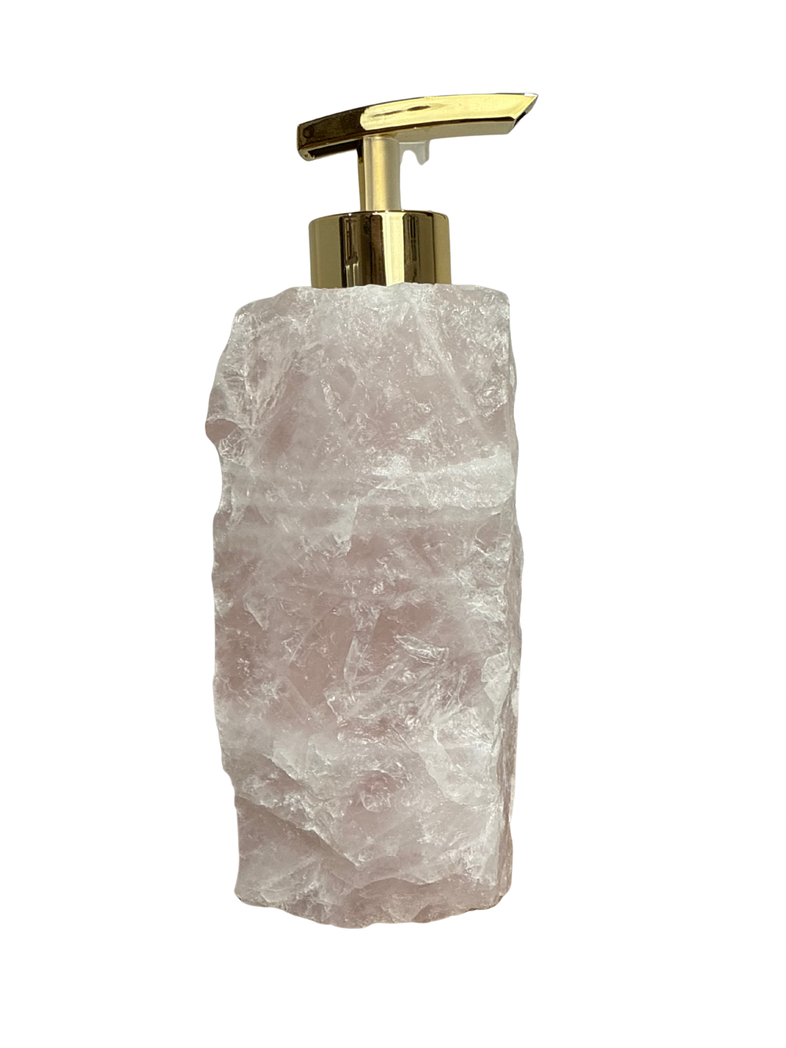 Deze prachtige zeeppomp van Rozenkwarts maakt jouw badkamer of keuken helemaal af.