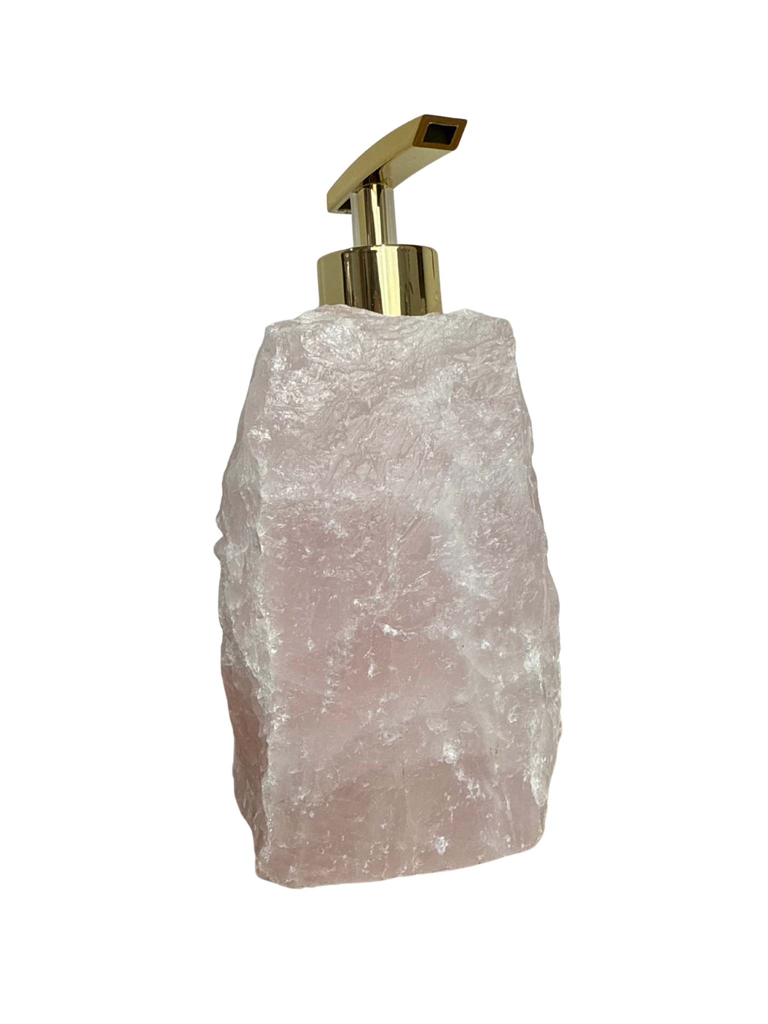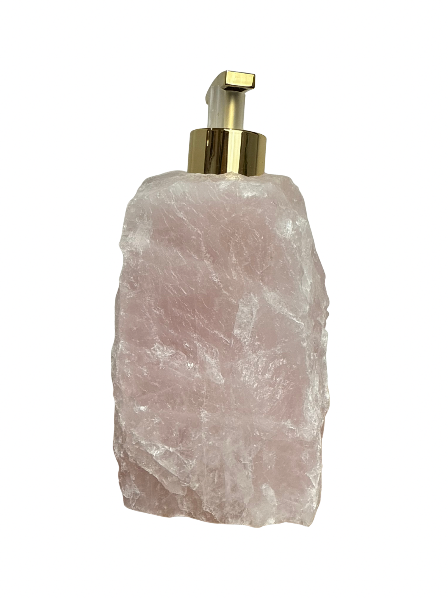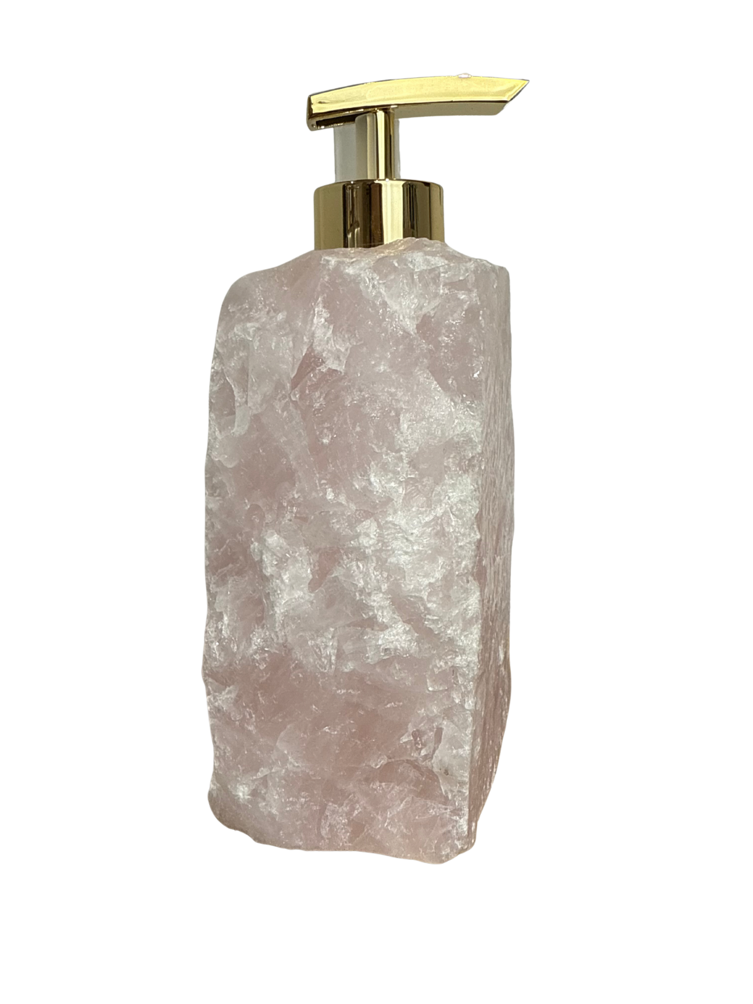 Deze prachtige zeeppomp van Rozenkwarts maakt jouw badkamer of keuken helemaal af.