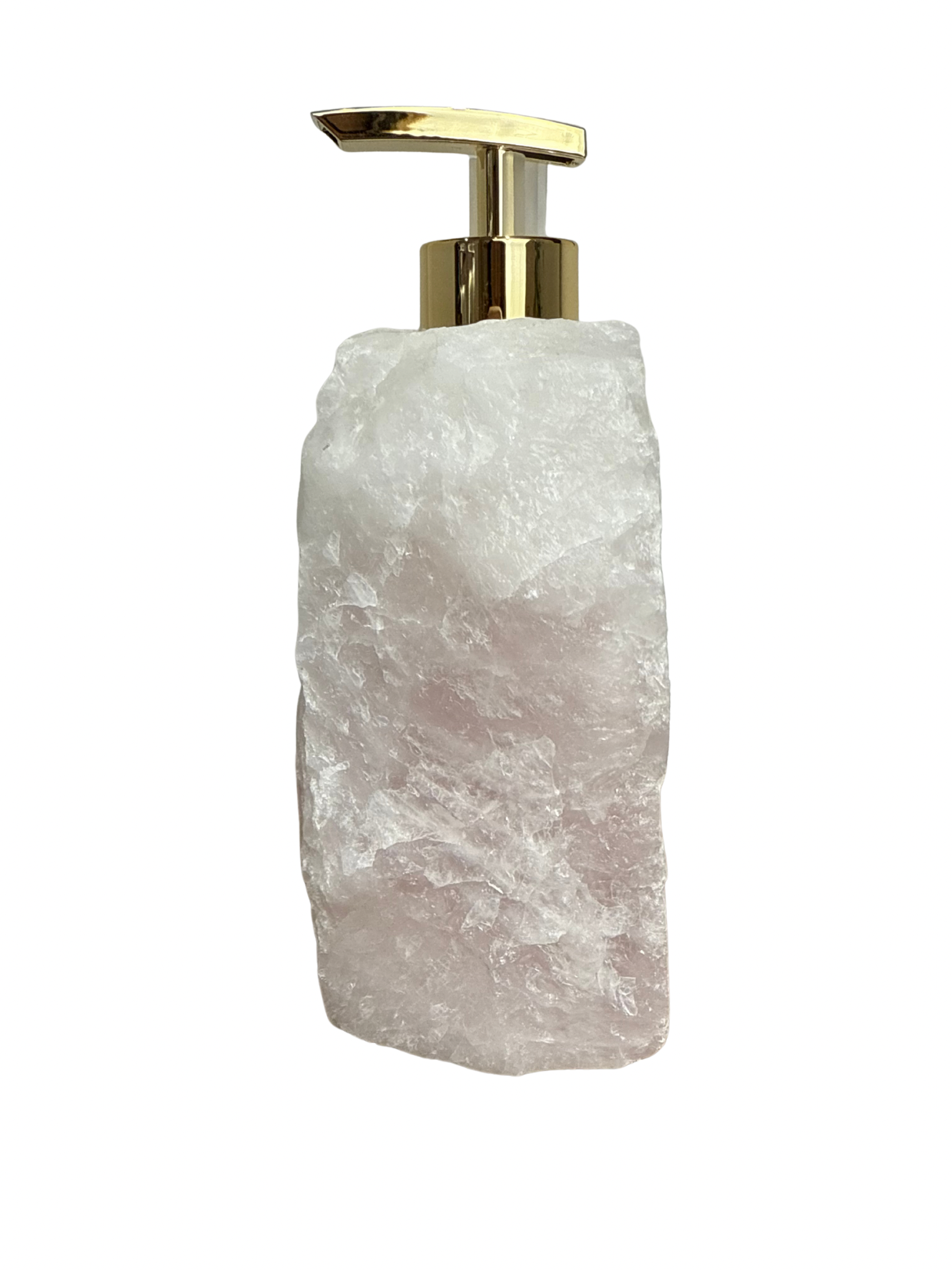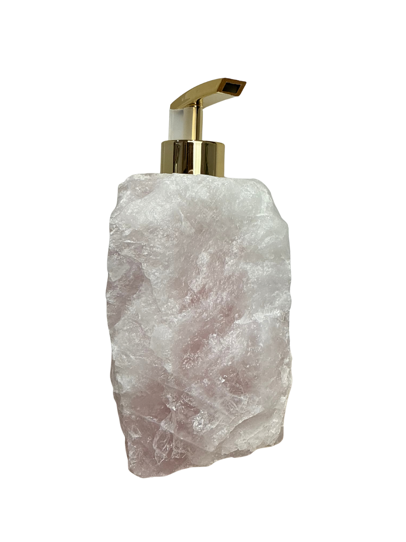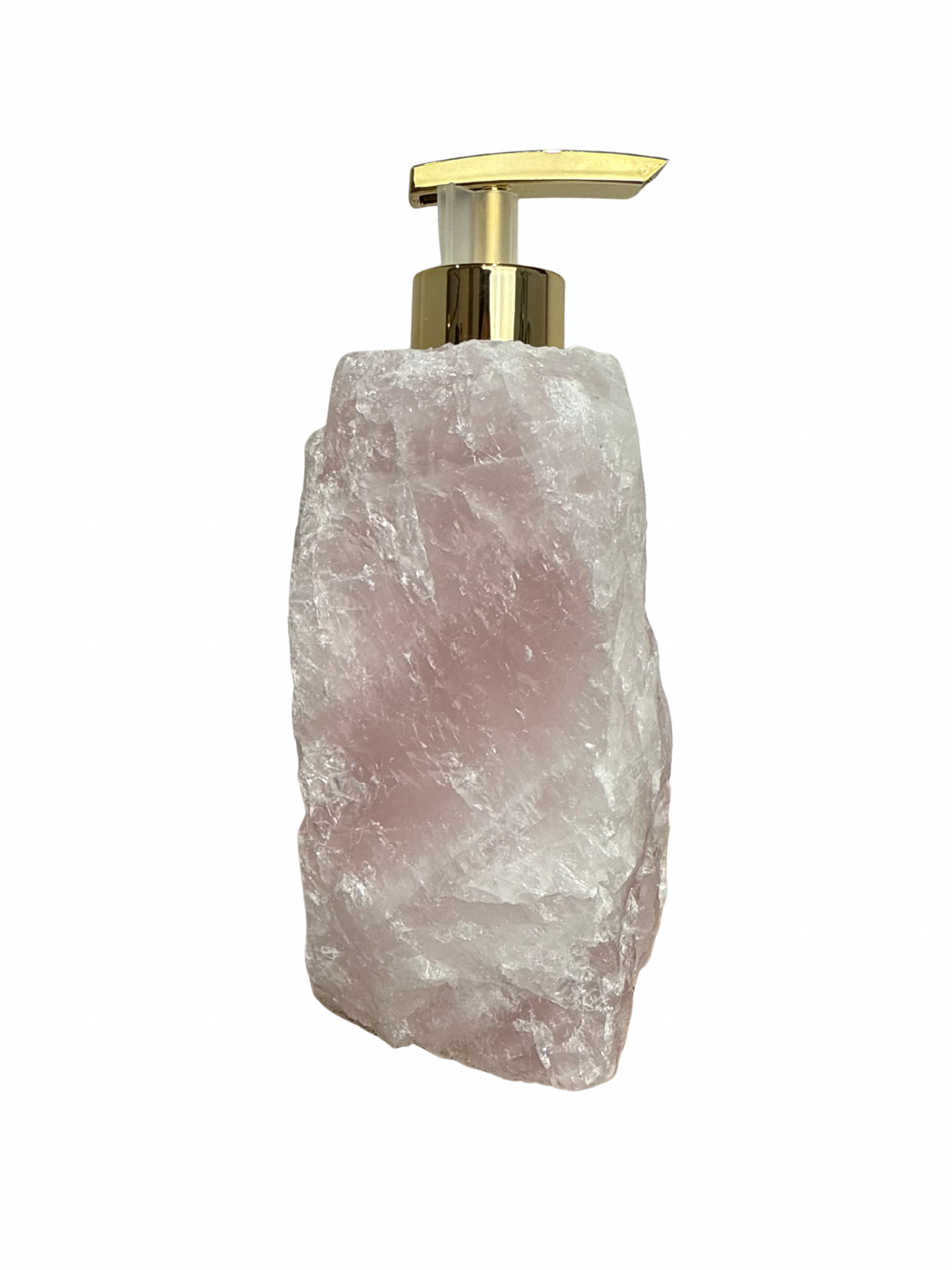 Deze prachtige zeeppomp van Rozenkwarts maakt jouw badkamer of keuken helemaal af.