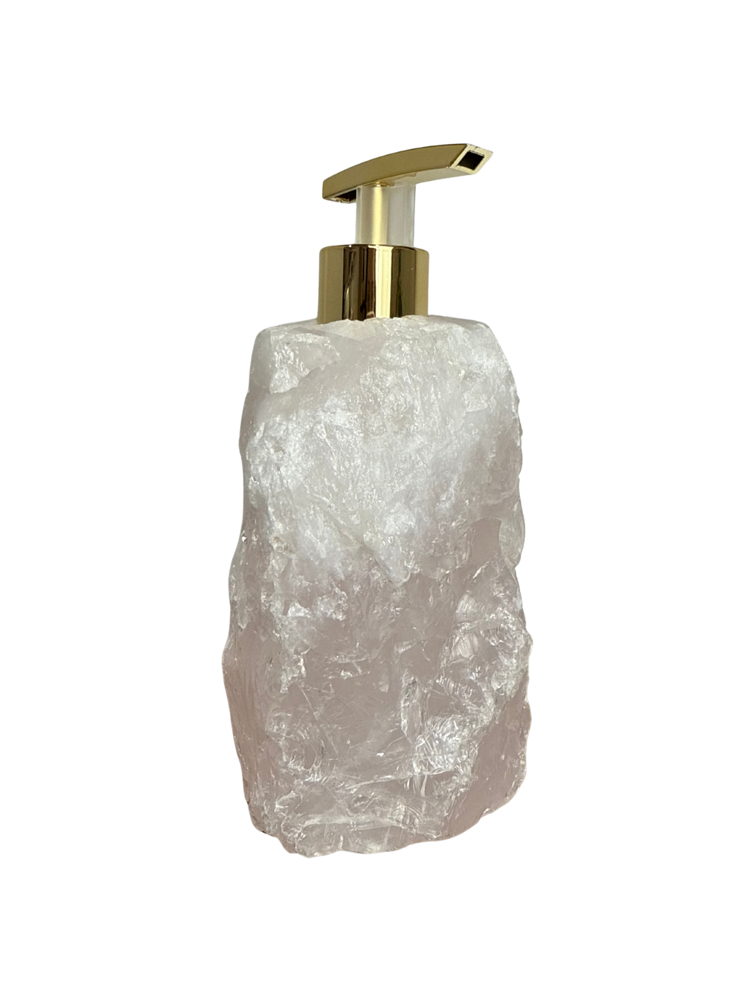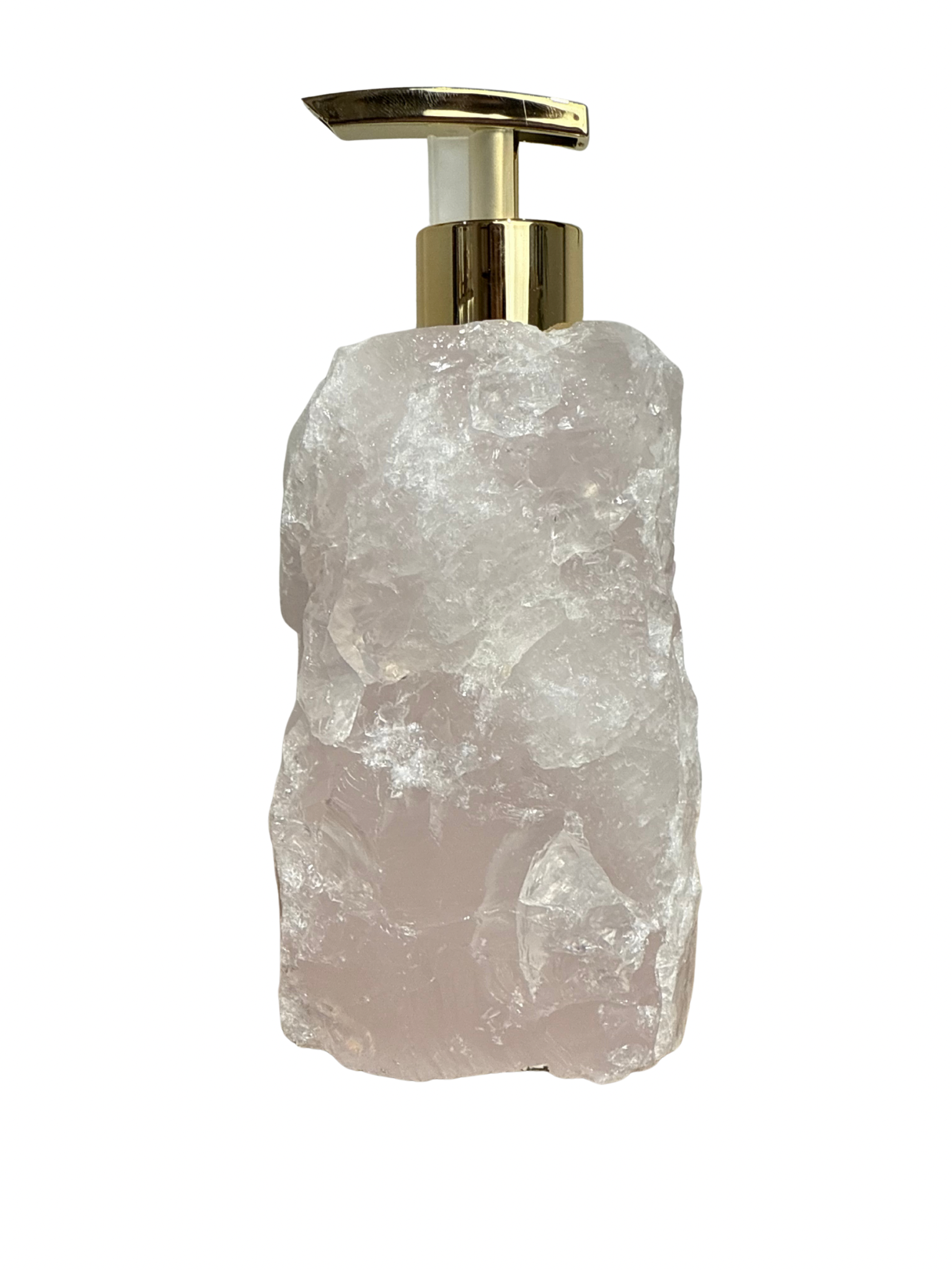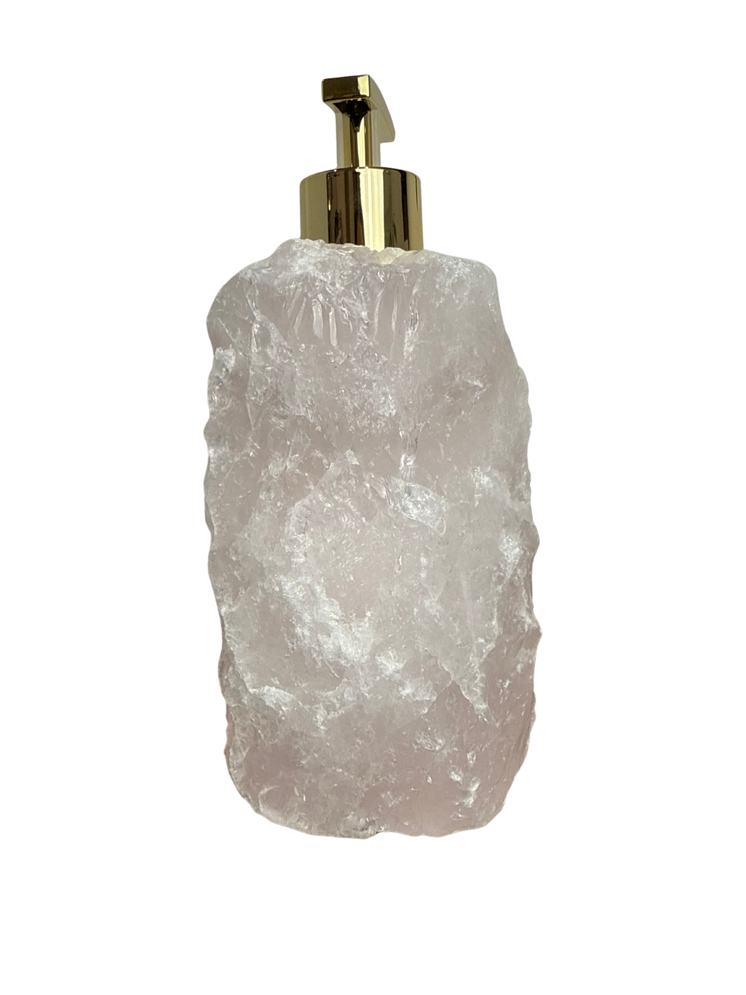 Deze prachtige zeeppomp van Rozenkwarts maakt jouw badkamer of keuken helemaal af.