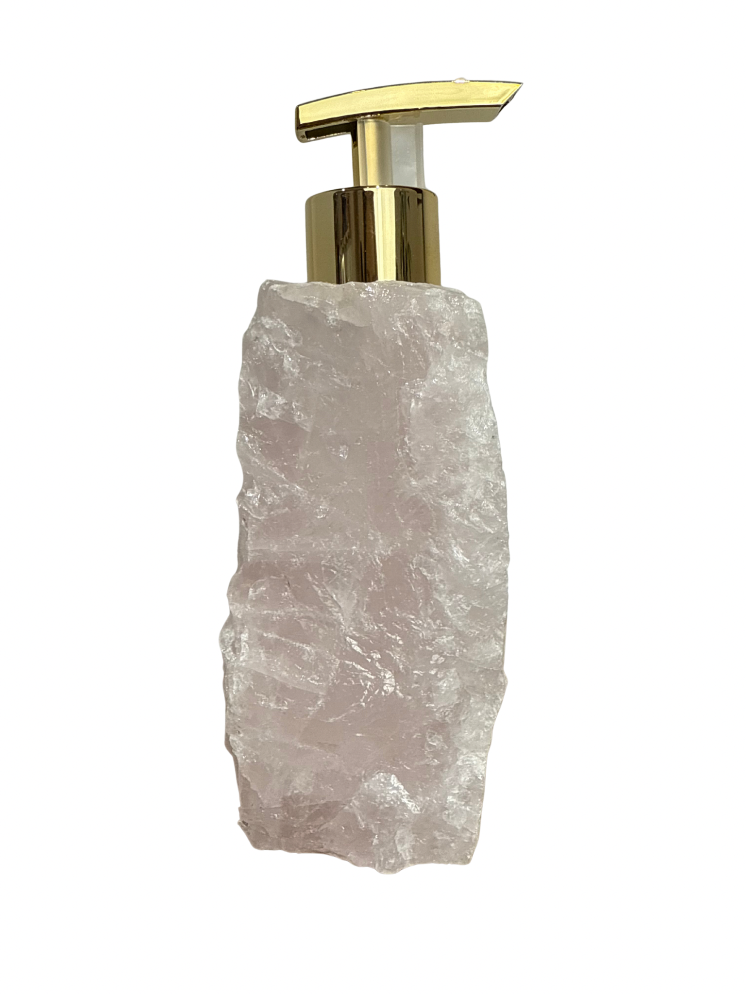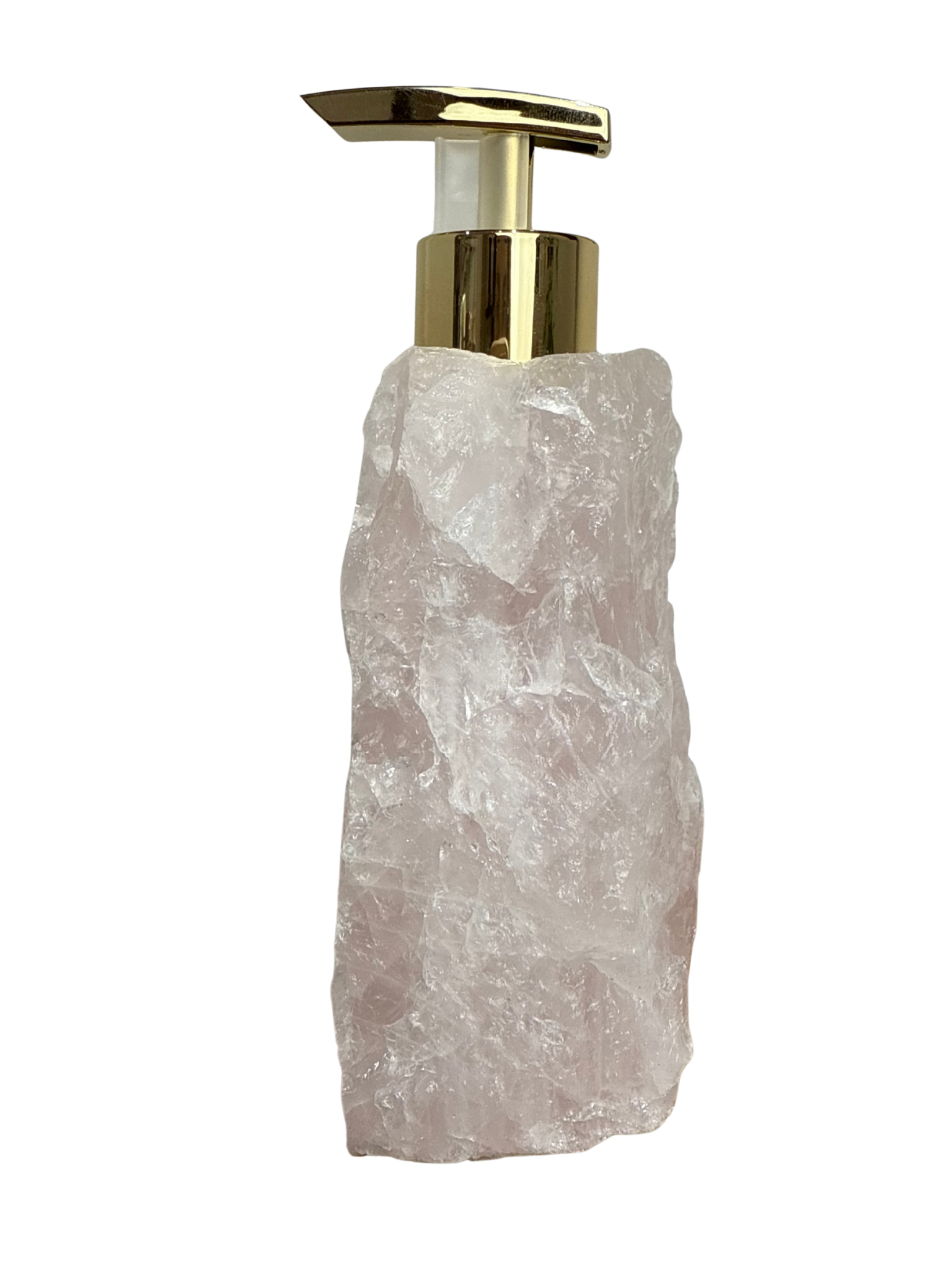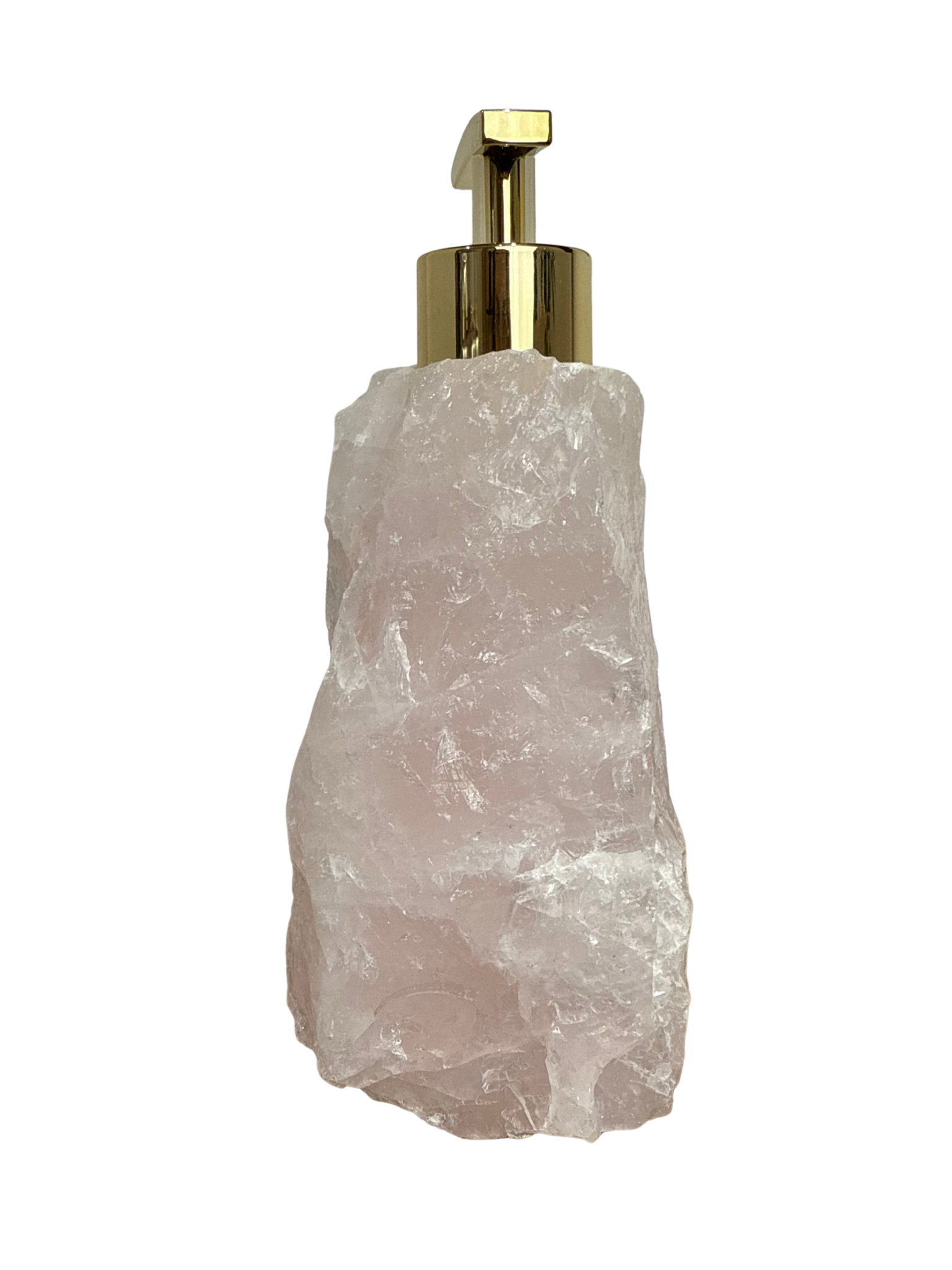 Deze prachtige zeeppomp van Rozenkwarts maakt jouw badkamer of keuken helemaal af.
