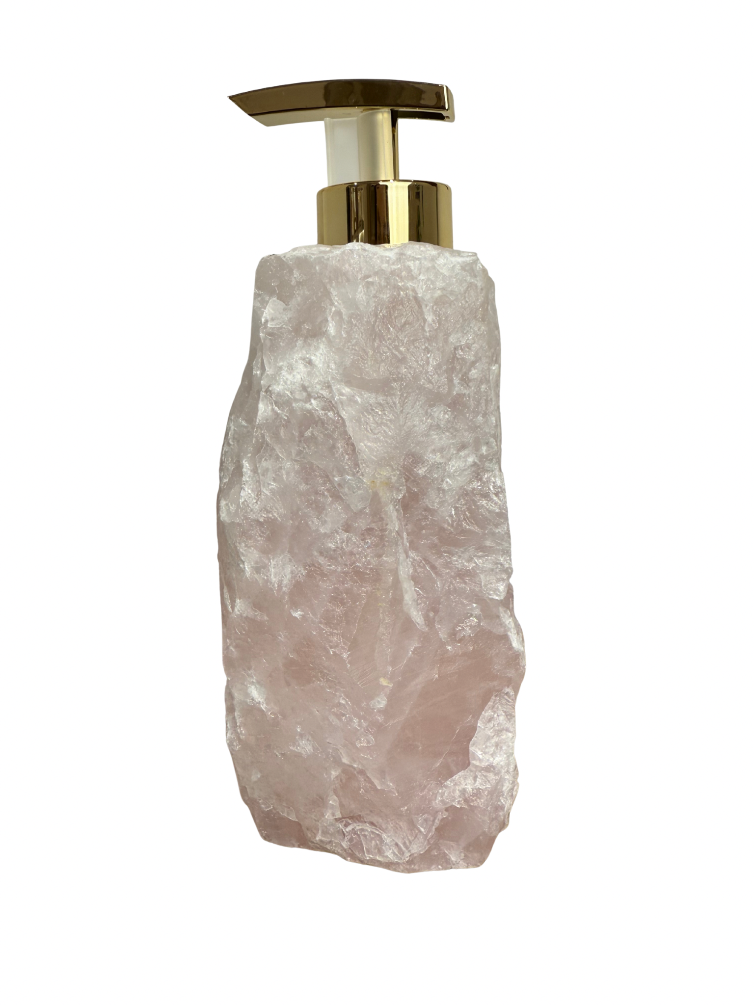 Deze prachtige zeeppomp van Rozenkwarts maakt jouw badkamer of keuken helemaal af.