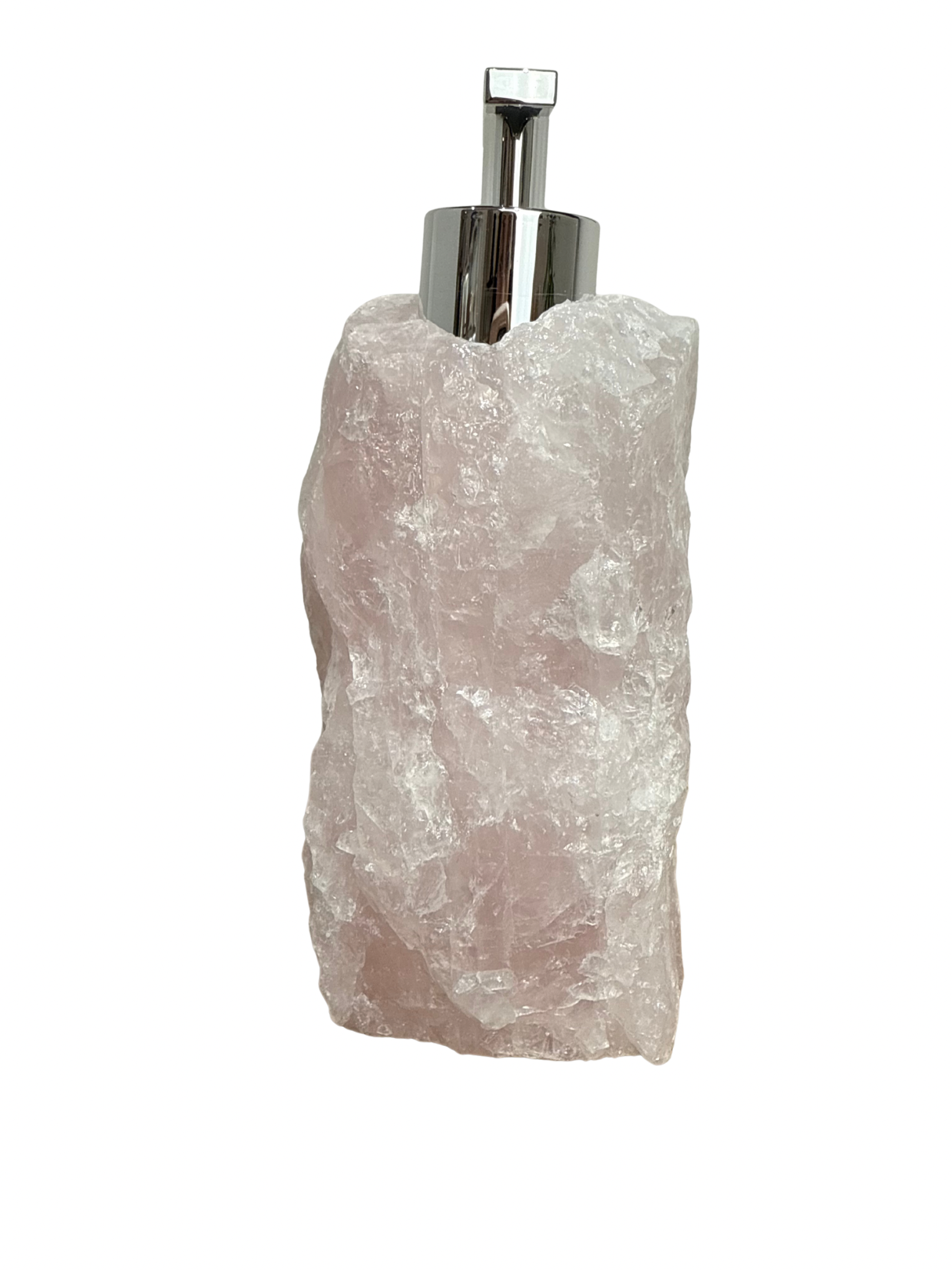 Deze prachtige zeeppomp van Rozenkwarts maakt jouw badkamer of keuken helemaal af.Â